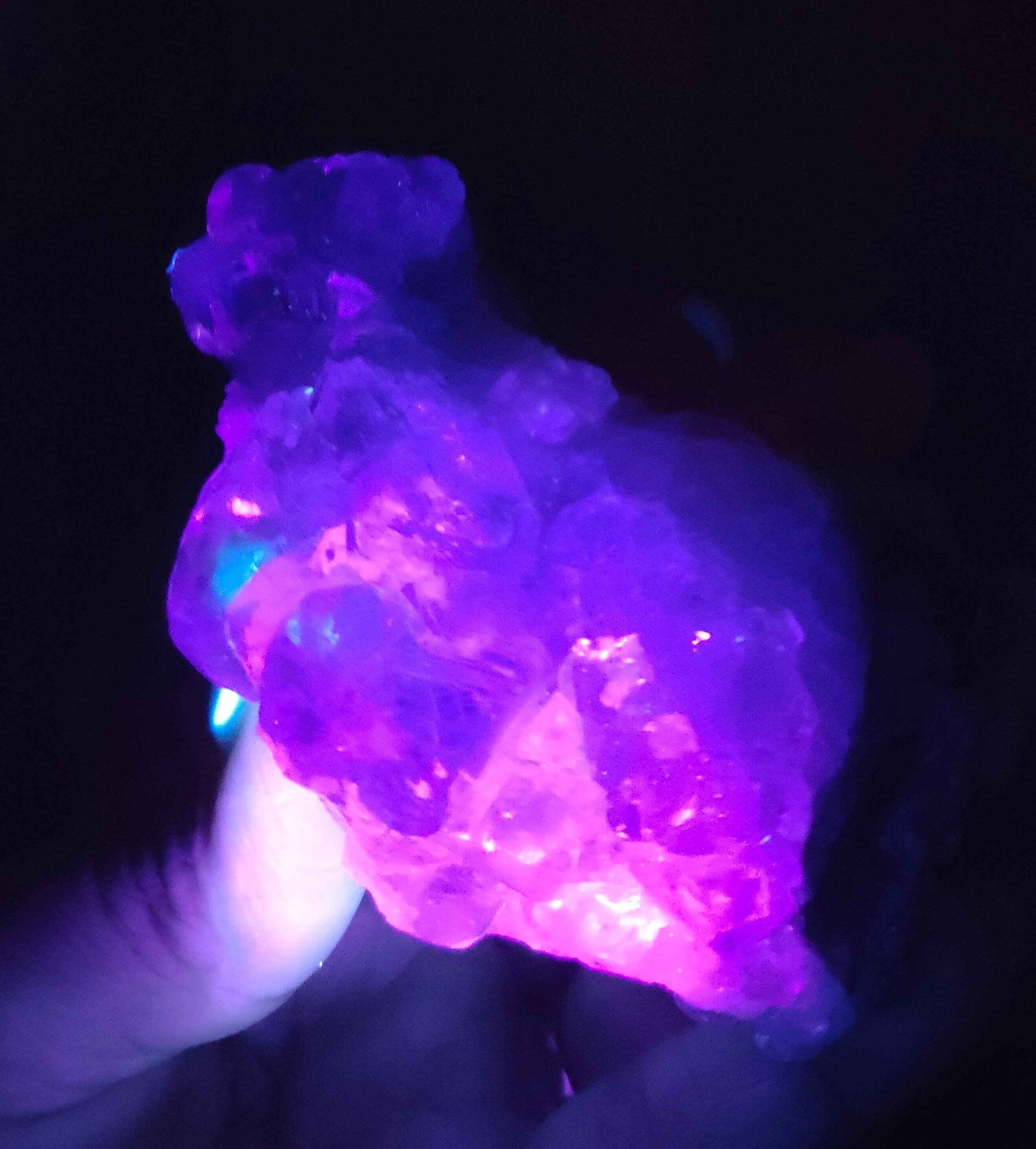 UVライトにあてるときれいなピンク紫色になります。母岩に見える裏側もほぼピンク紫に!母岩がフローライトにほぼ覆われといるということです!