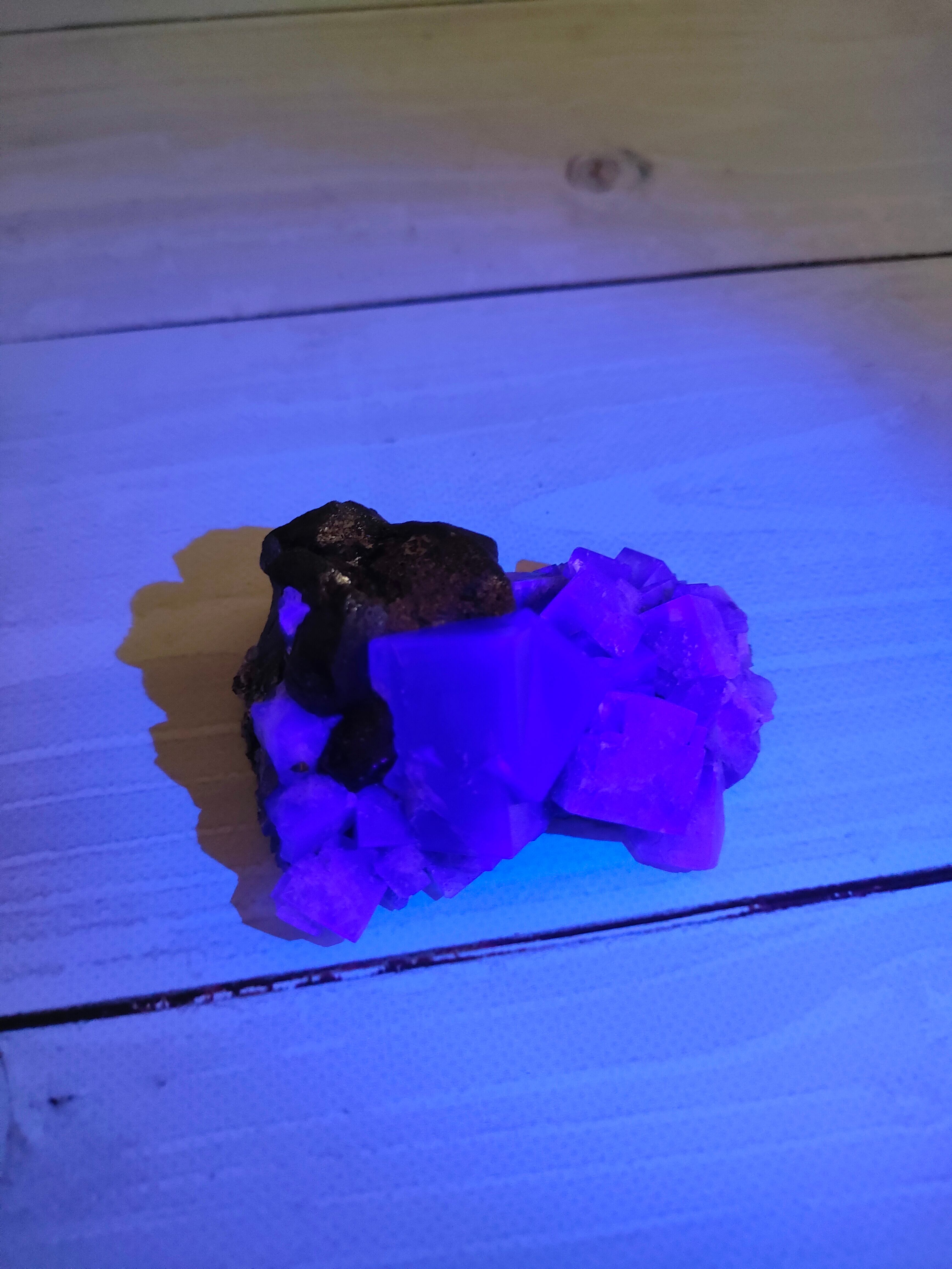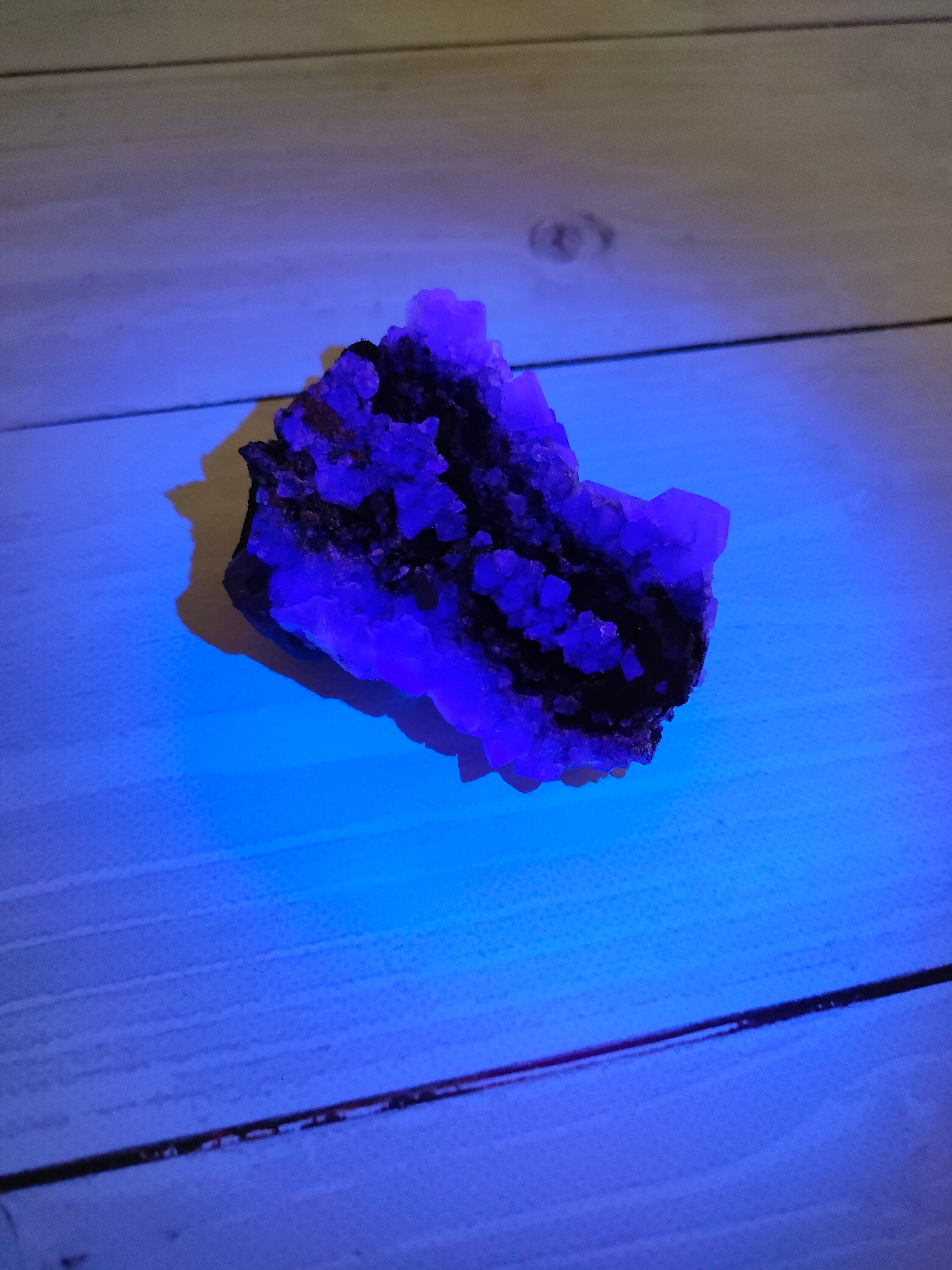 UVライト照射の写真4枚目の通りGALENAにフローライトがほとんど覆われています。底面のフローライトの脈がなんともいえません!!