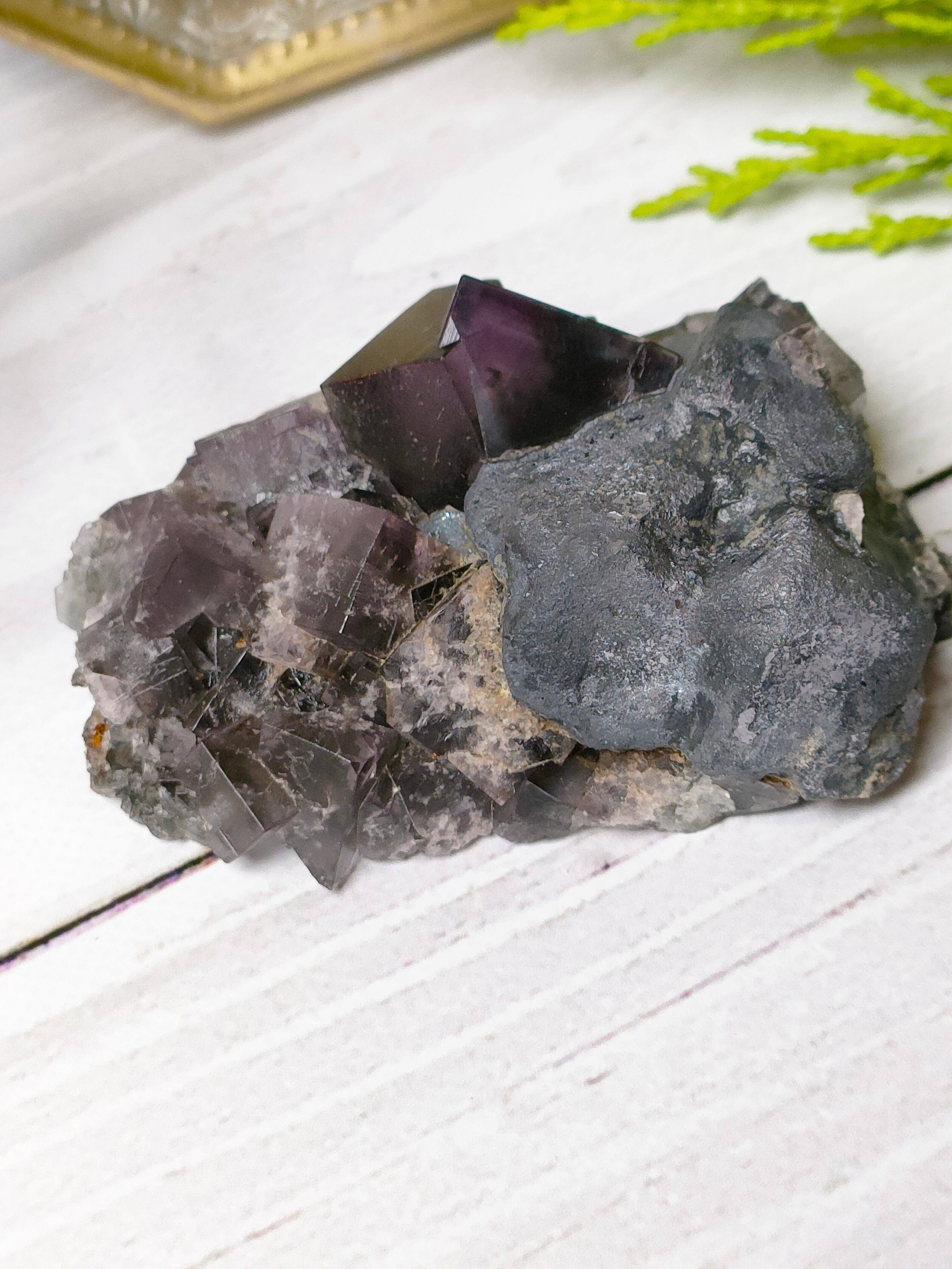 イングランド・レディアナベラ鉱山のPurple Rain Pocketから採掘されたフローライト(和名:蛍石)withGALENAです!