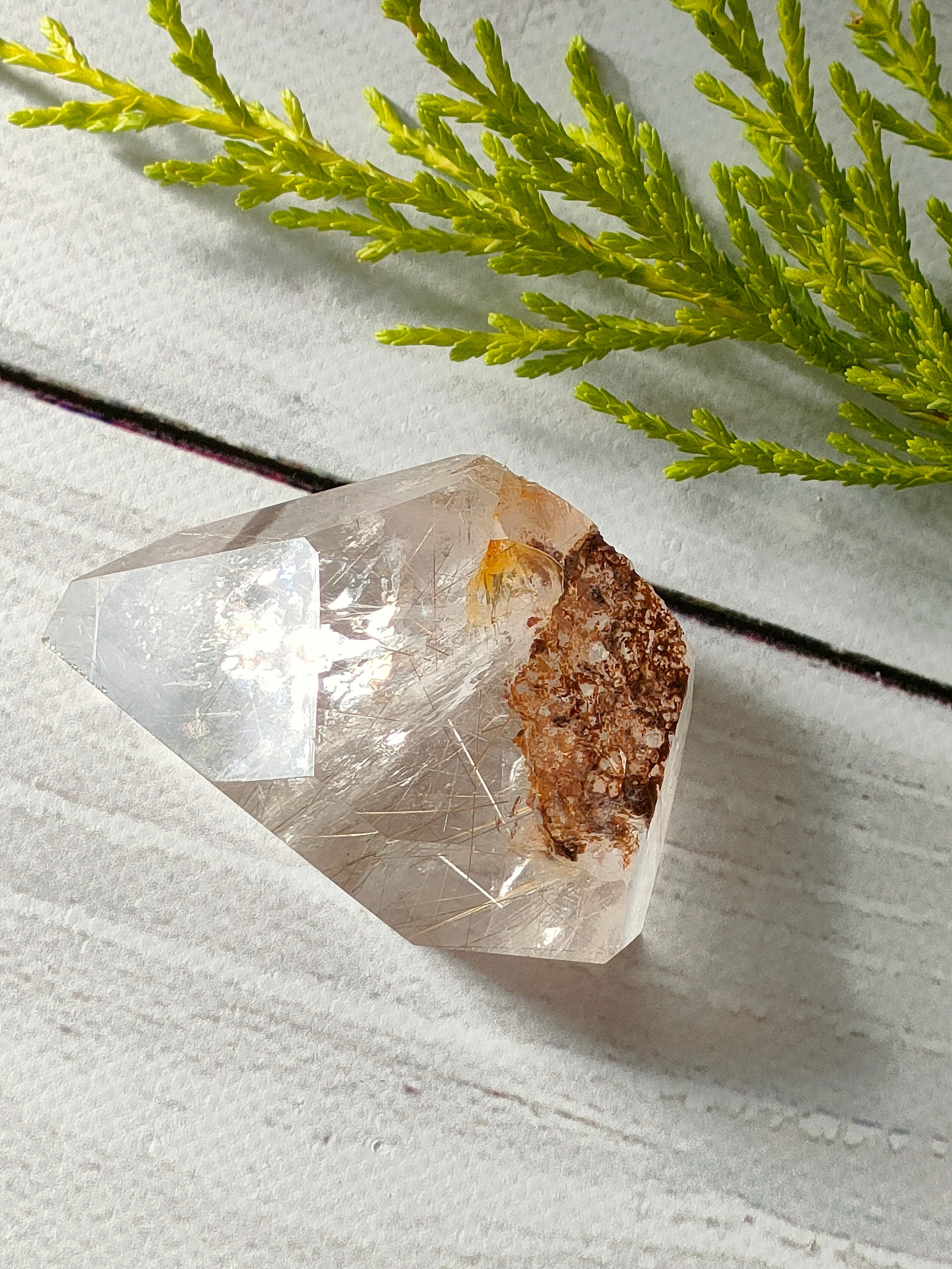 庭園を思わせるガーデンクォーツにルチルが内包されている珍しい石です。