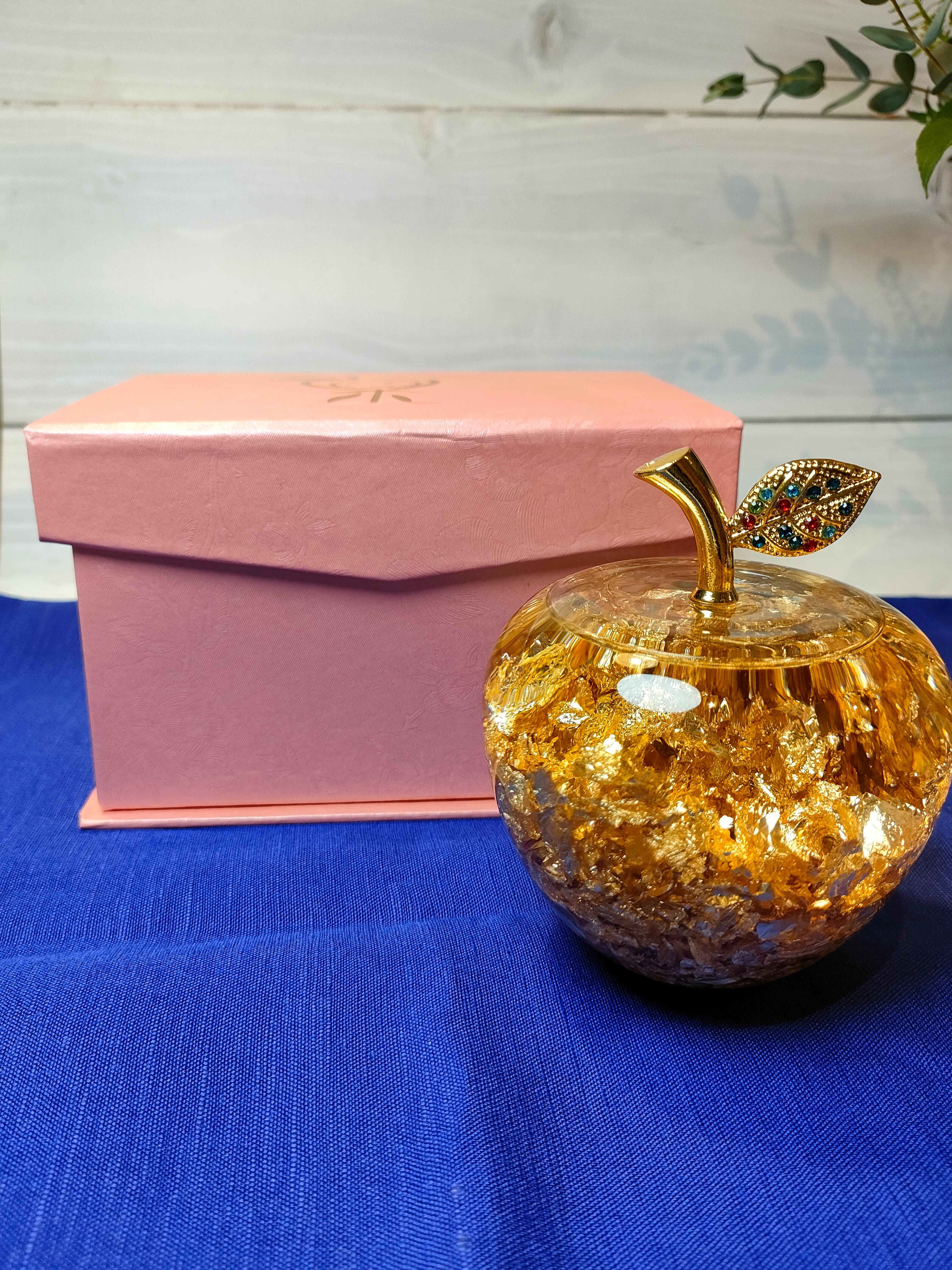 金箔入りのゴールドに輝くりんごの置物です。傾けると金箔が揺らめき、きらめきます!