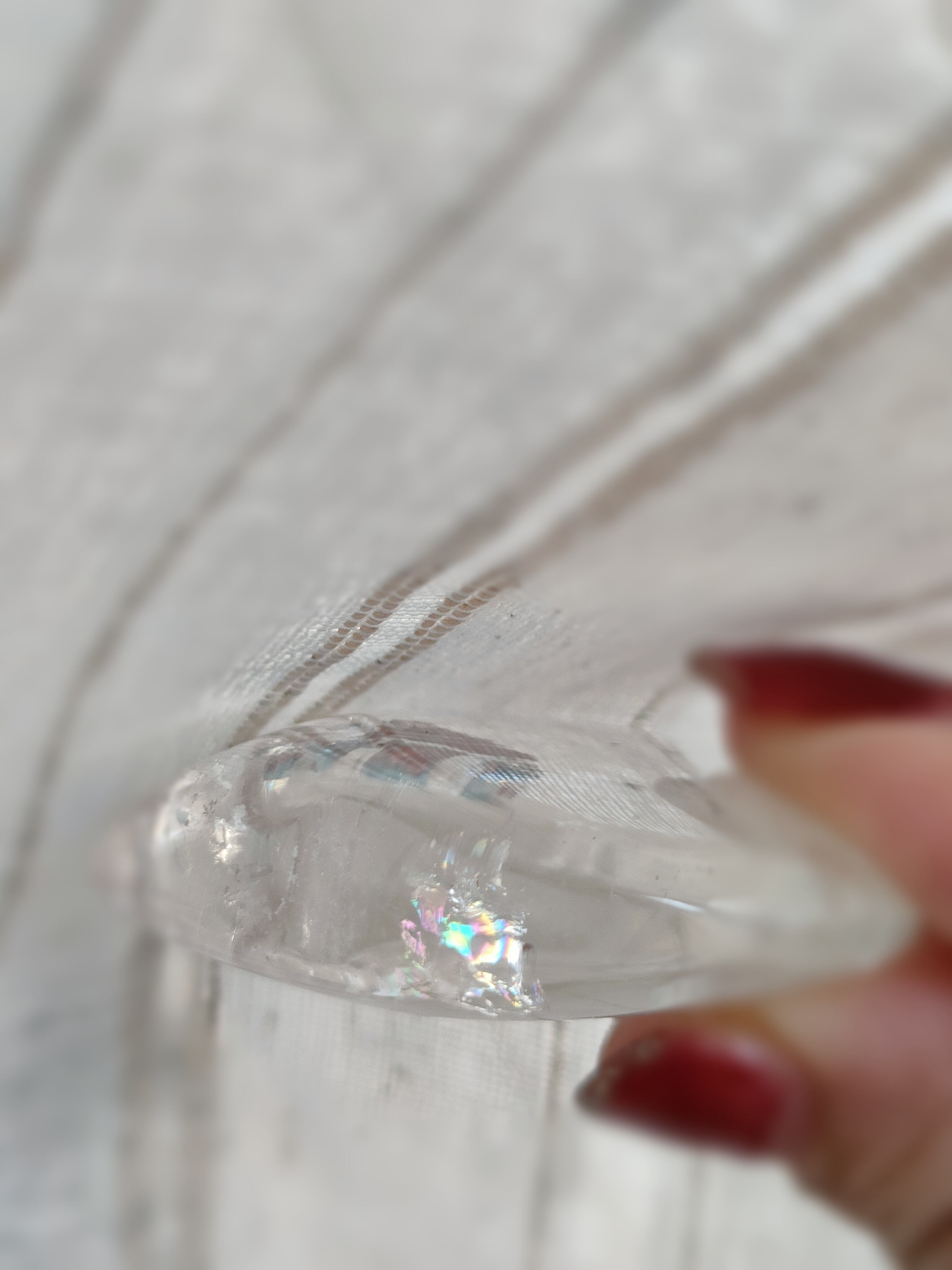 ネコの型が可愛らしく、クラックからの輝きと虹もみられます。