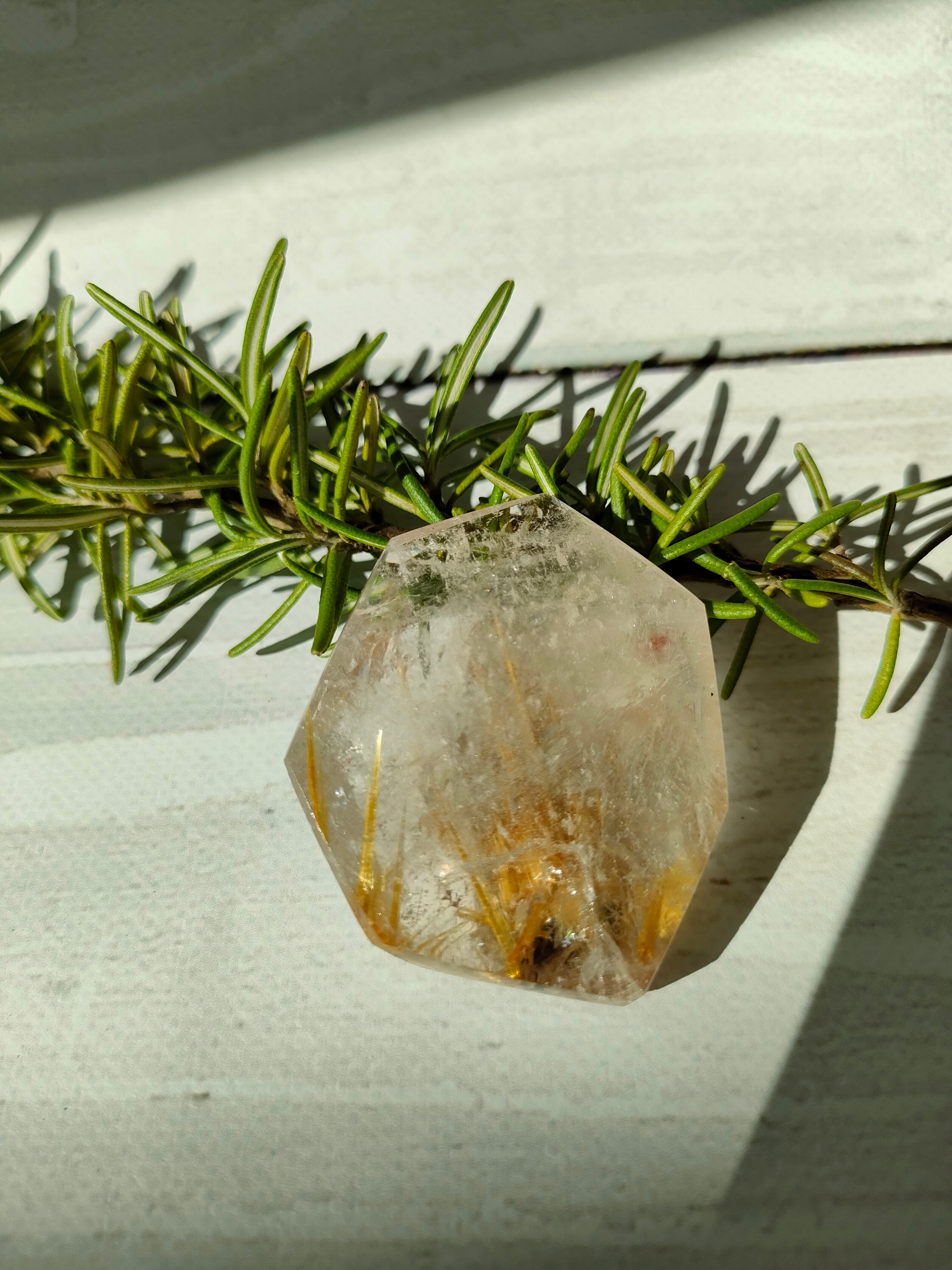 水晶の中にルチルと呼ばれる鉱物を内包している天然石です。