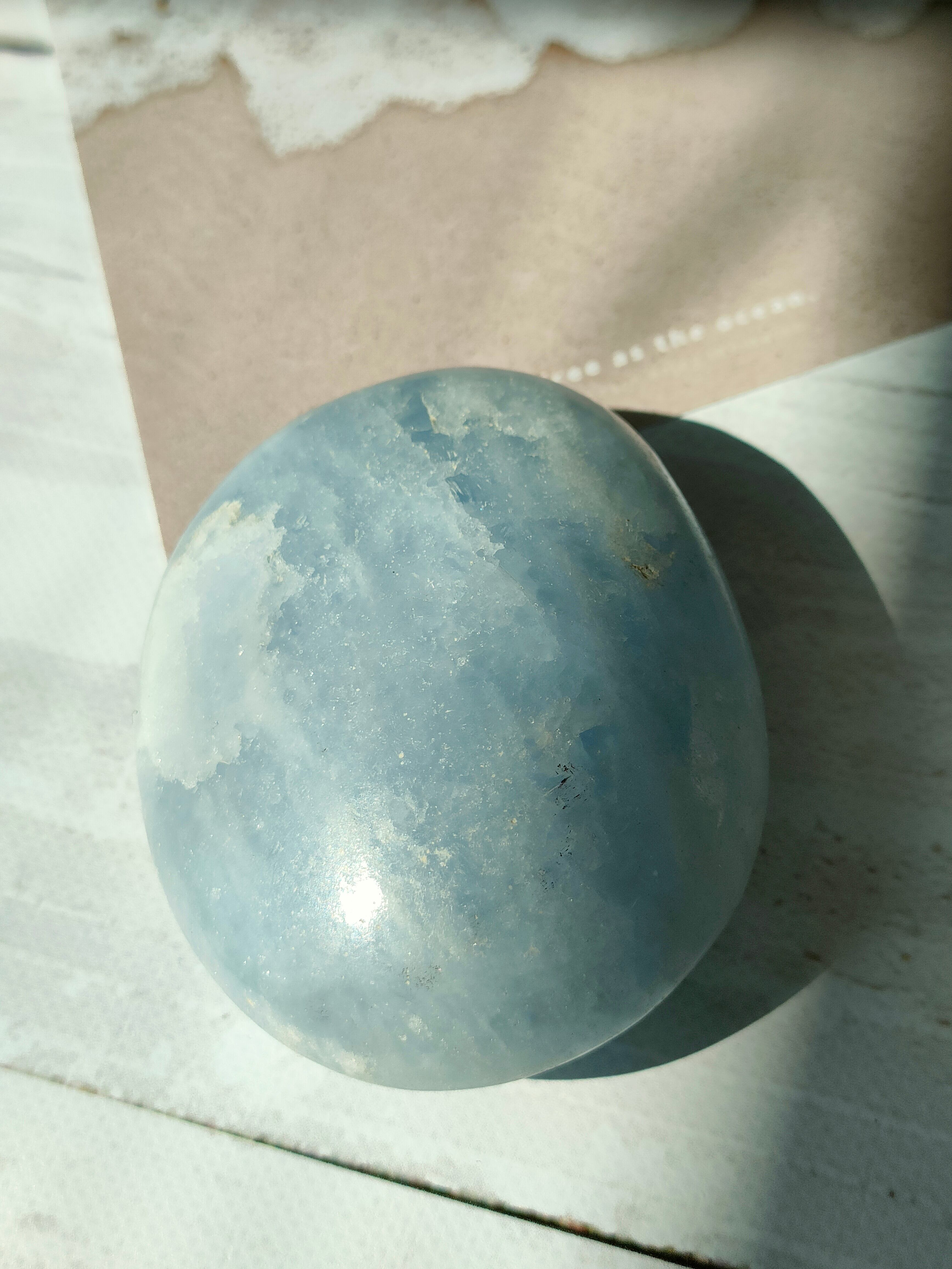 セレスタイトは紫外線に弱いので直射日光はお避けください。また、衝撃にも弱くお取り扱いには十分にご注意ください。