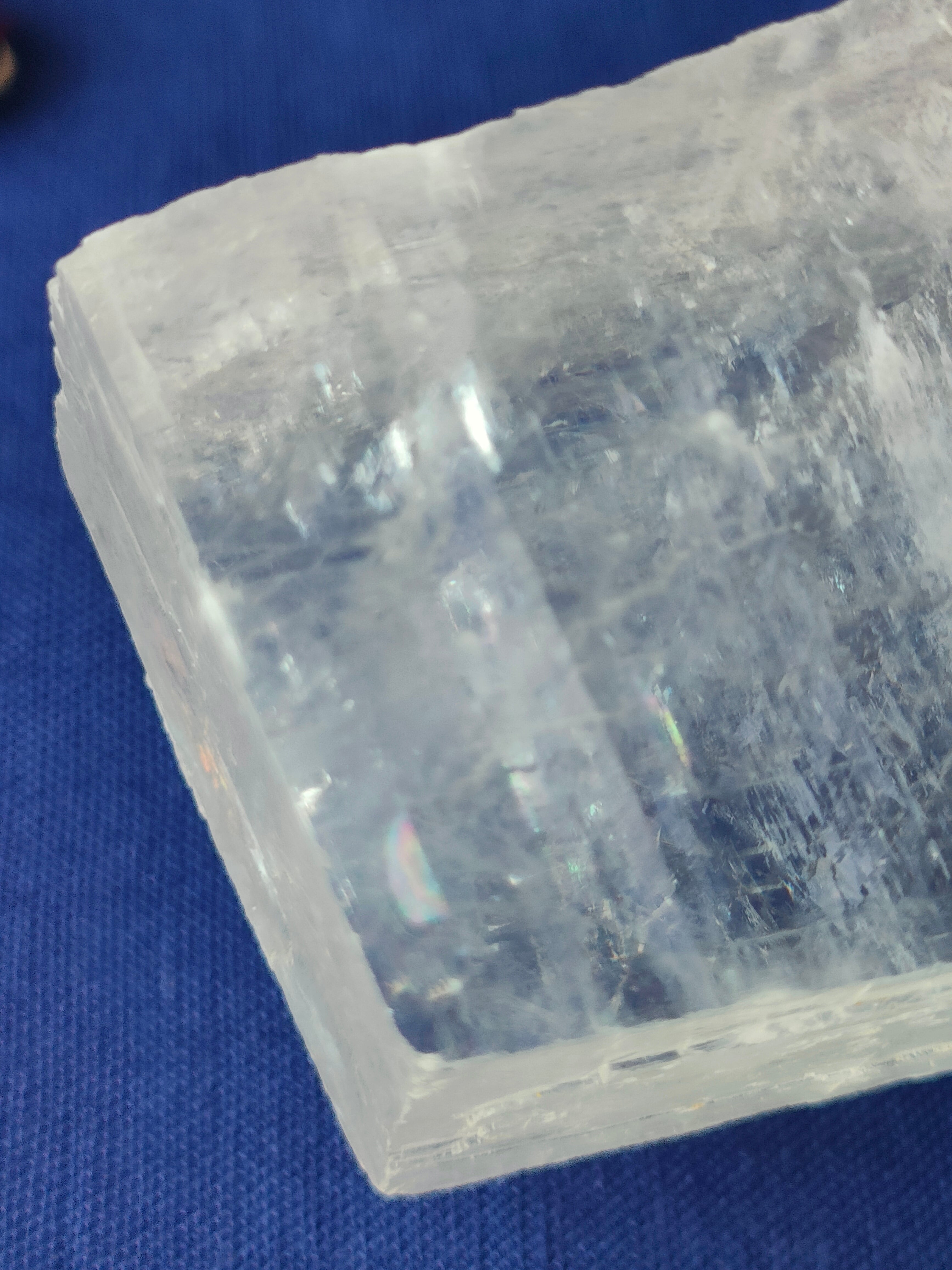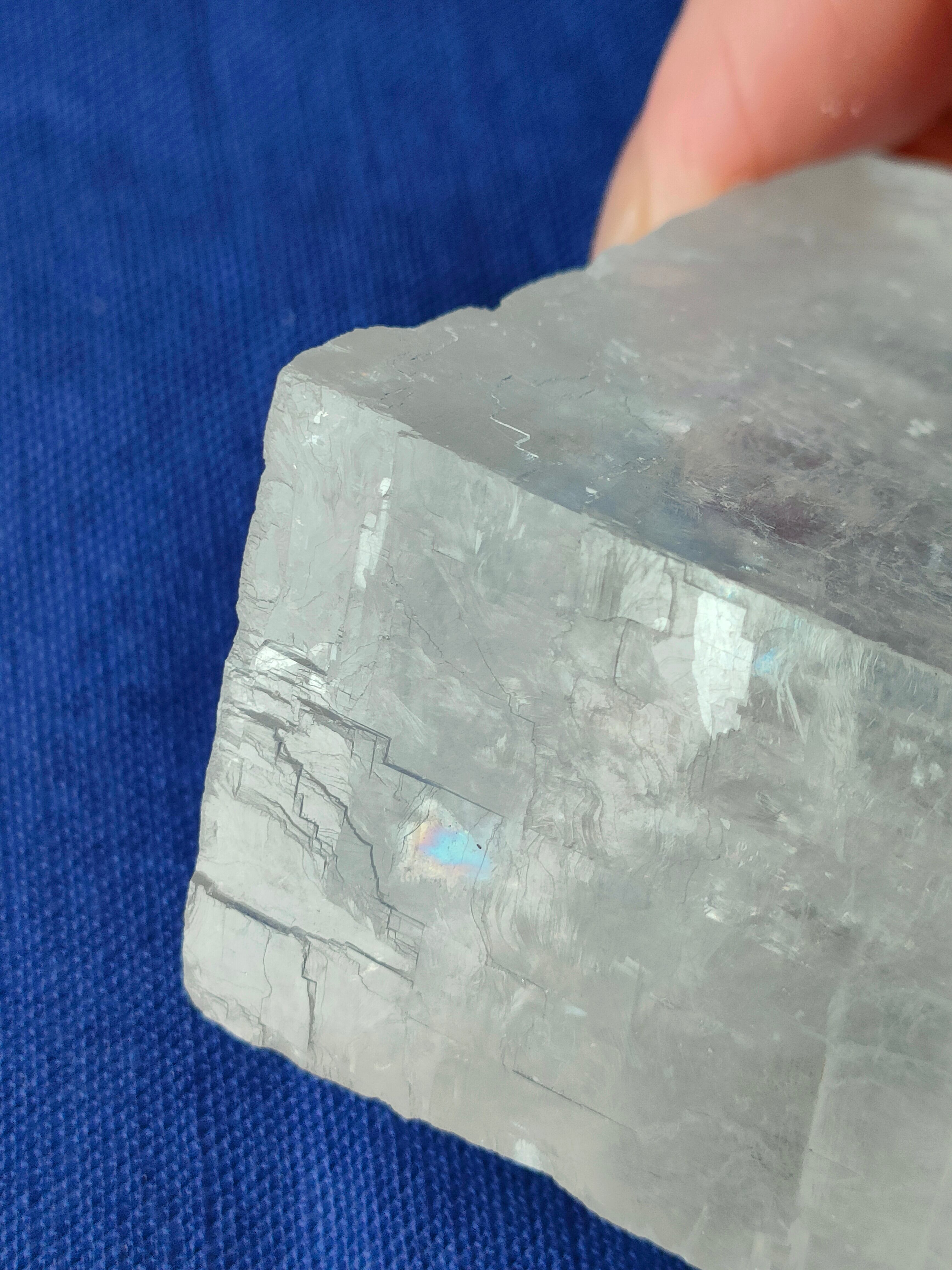 光の屈折が独特で、この石を通して文字を見ると二重に見えます。これは、まっすぐに進む光と曲がる光の2方向へ屈折する『複屈折』によるものです。