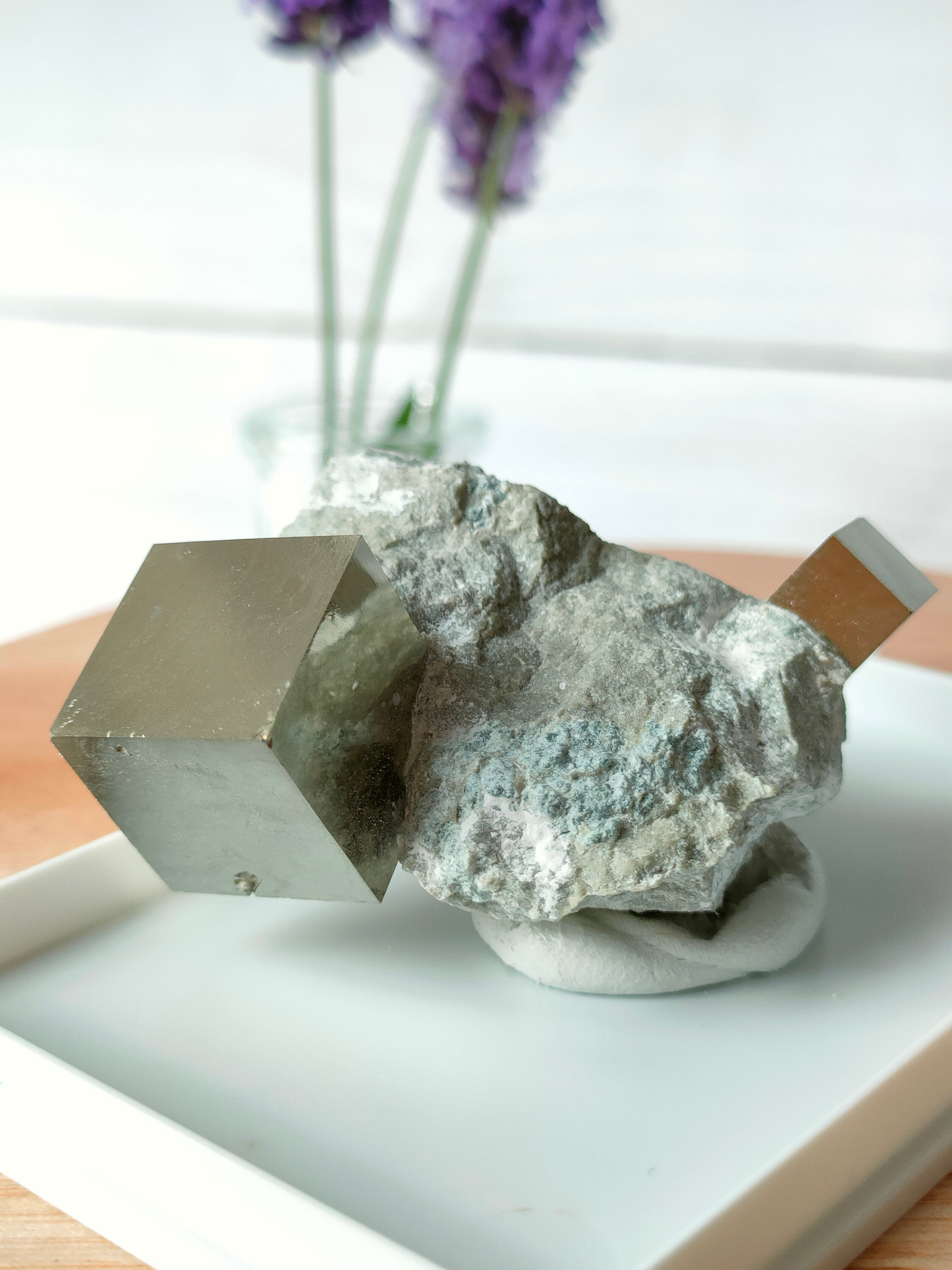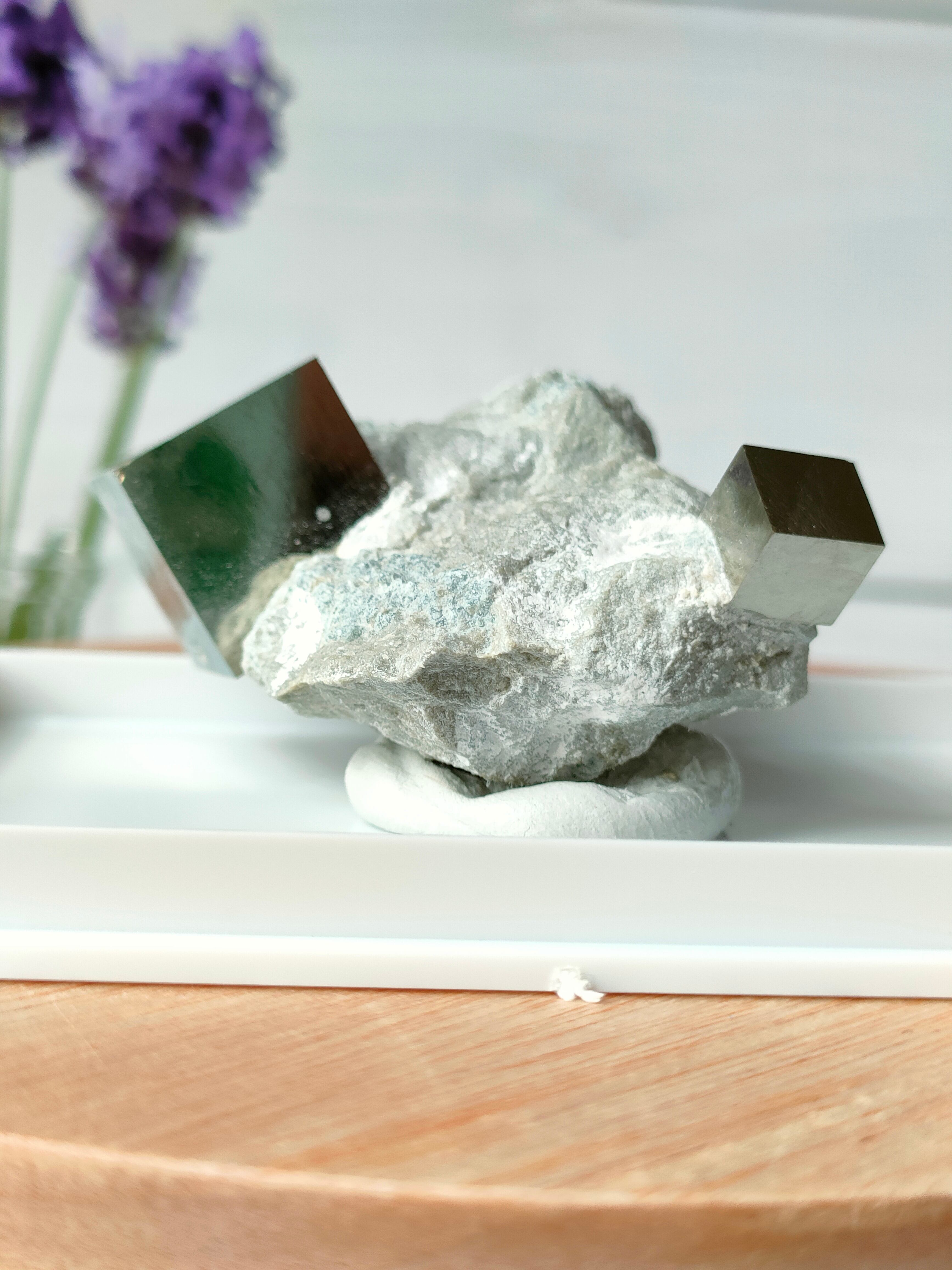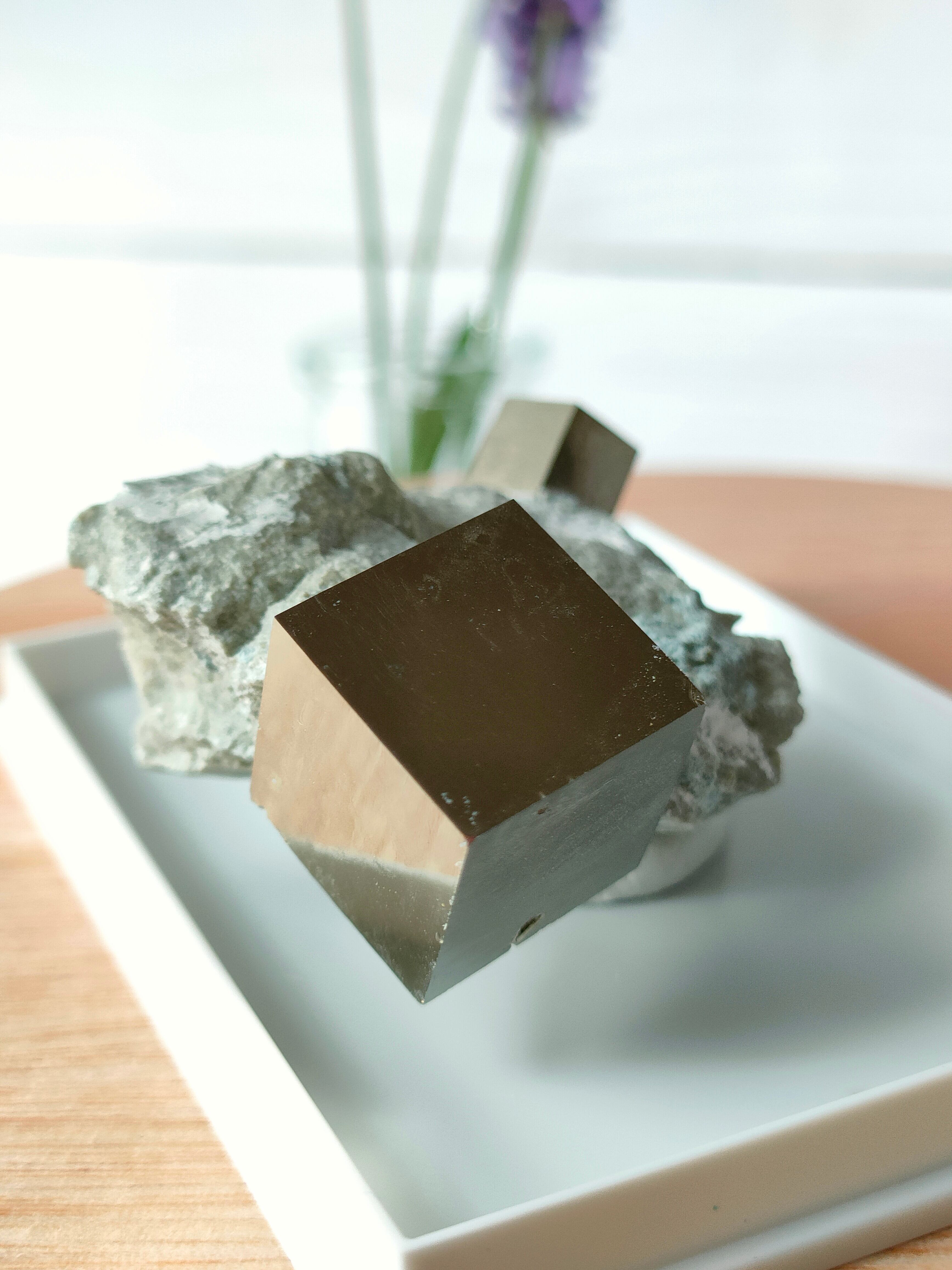 硫黄と鉄が結合してできた硫化鉱物の一種で、金と見間違う程、黄金色に輝きます。硫黄が豊富で火山活動が活発だった所に多く産出します。