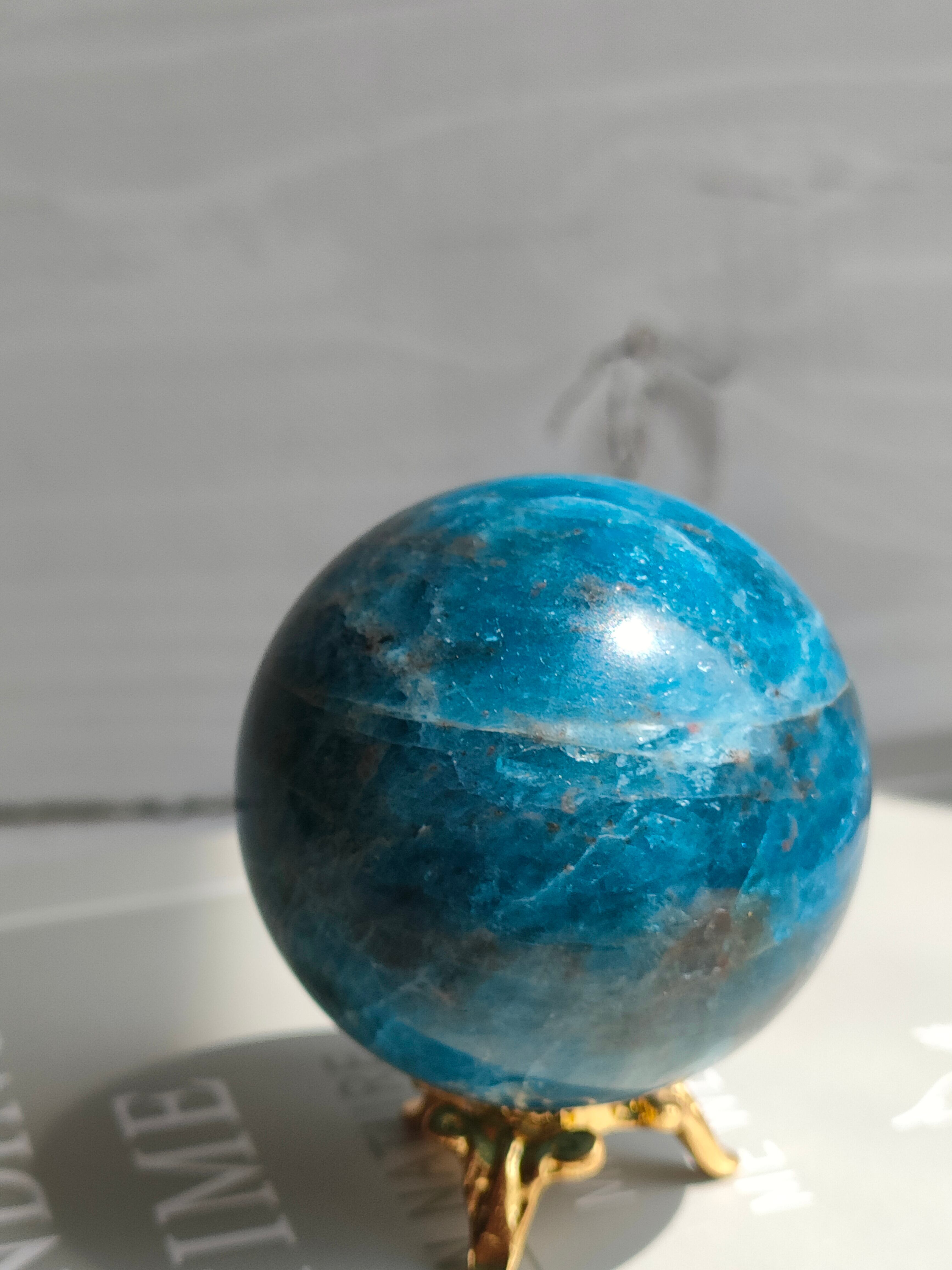 まるでひとつの惑星のような、AAAのブルーアパタイトです。