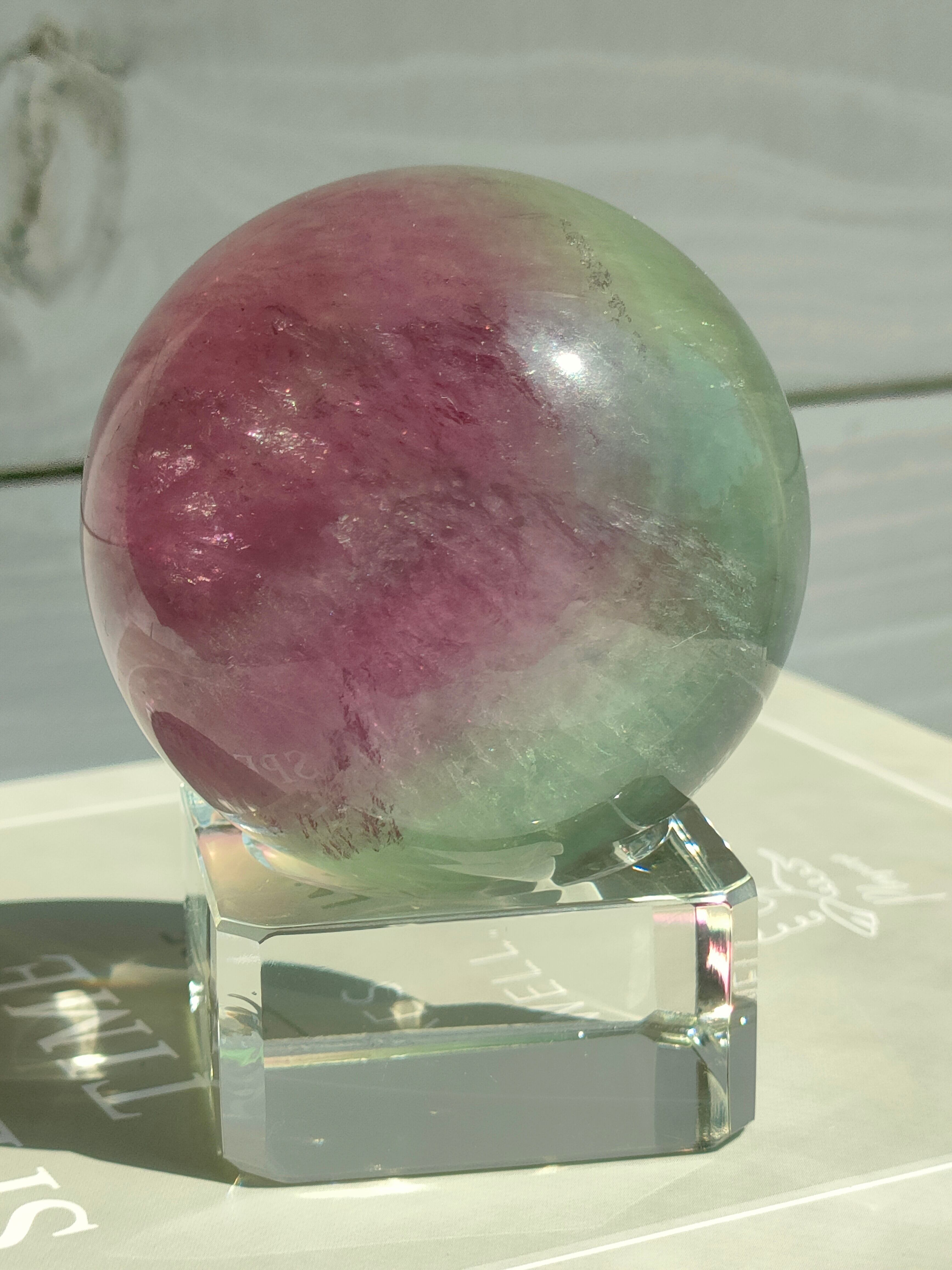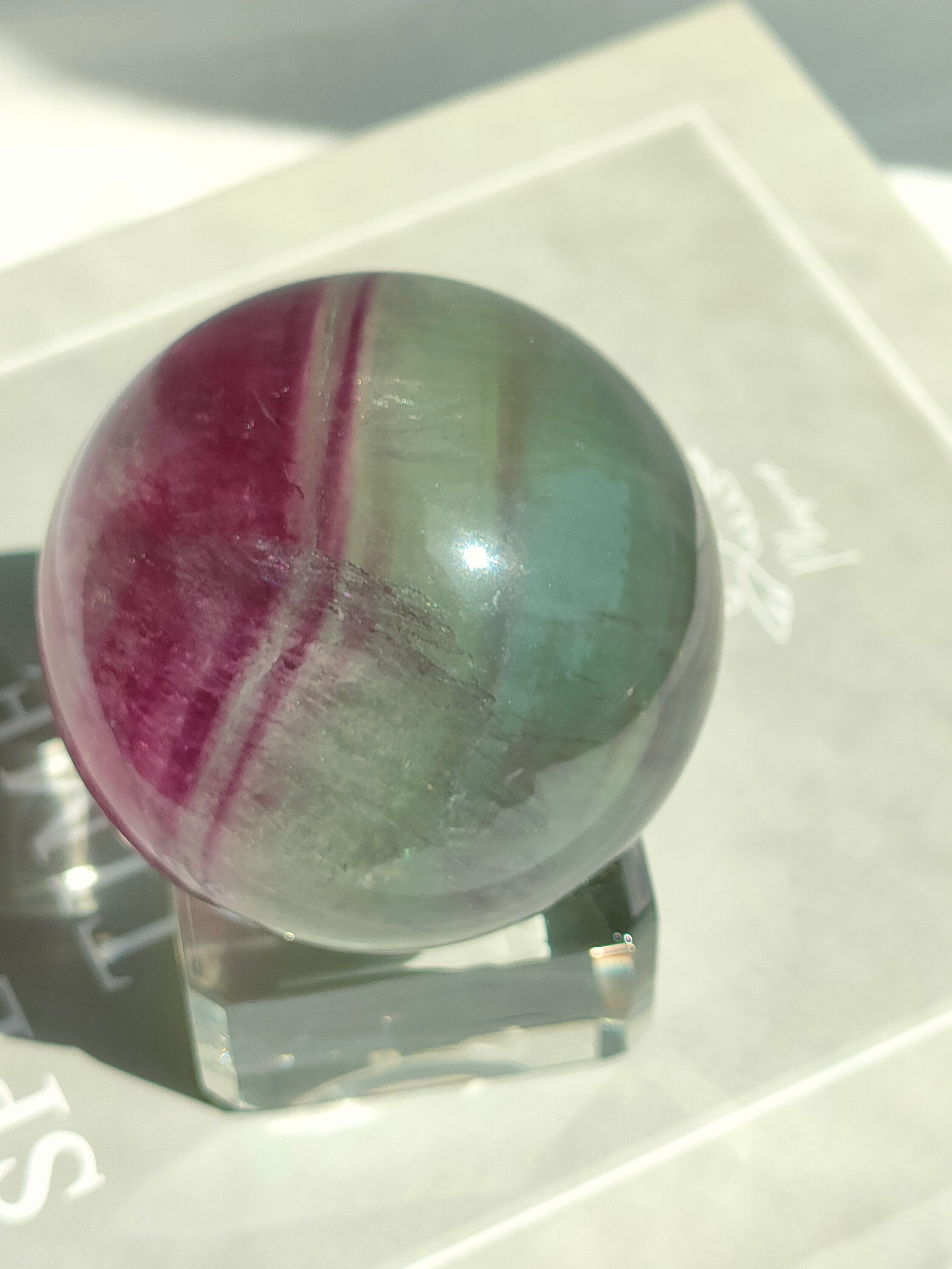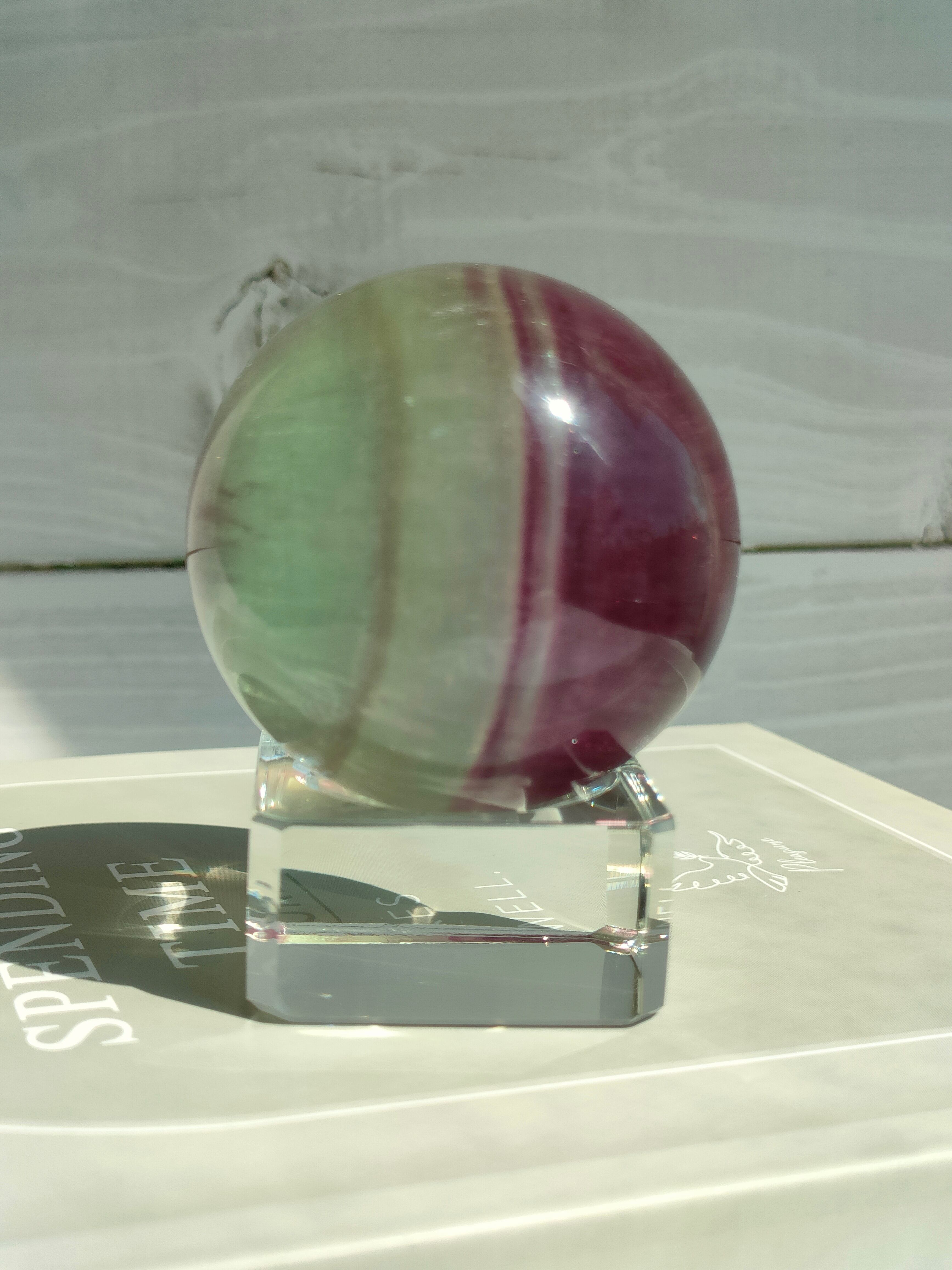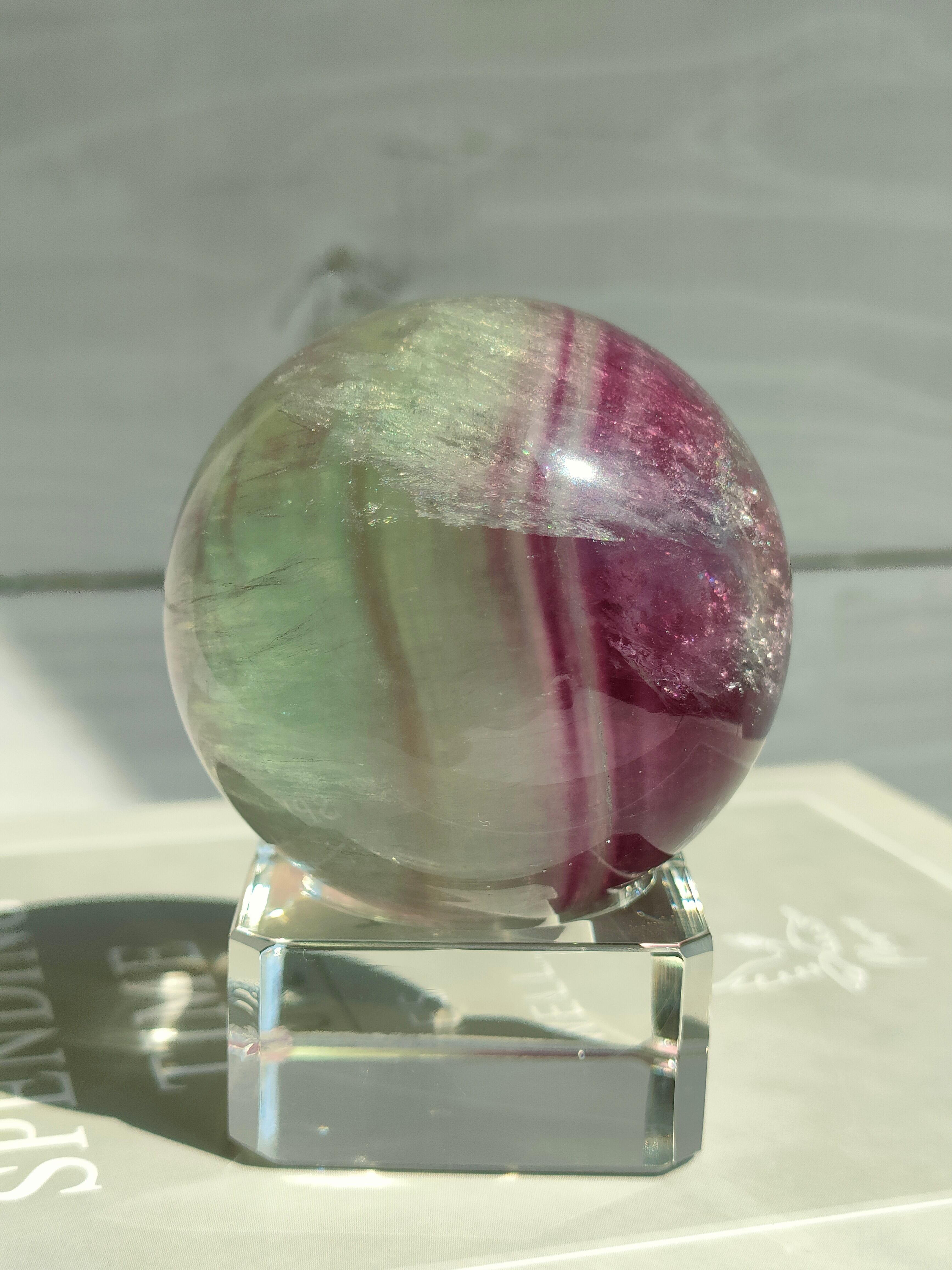 傾きによって透明度があったり、輝きがパァッと浮かび上がったり、層がくっきりと見えたり。とても見応えがあるフローライトです。