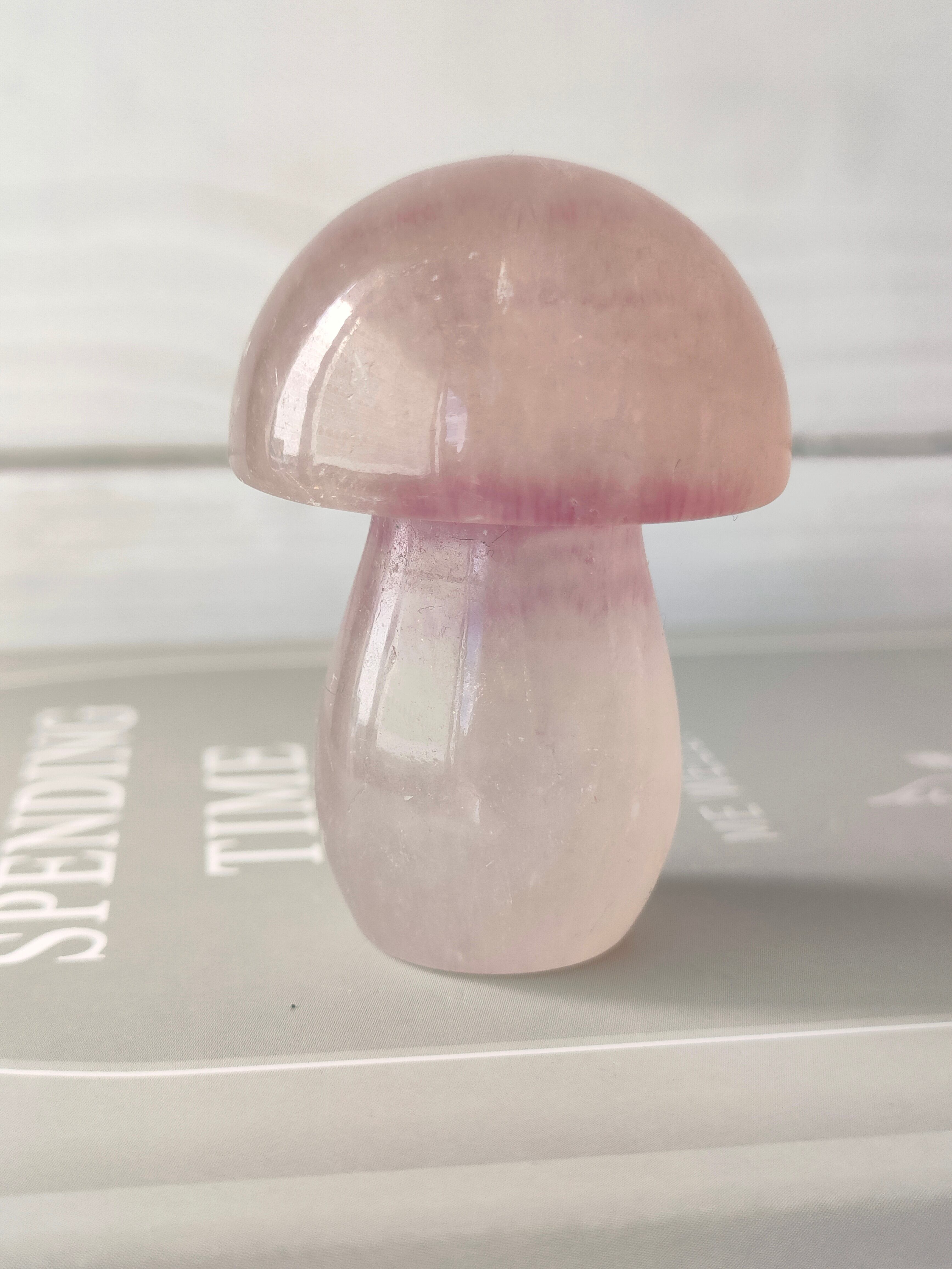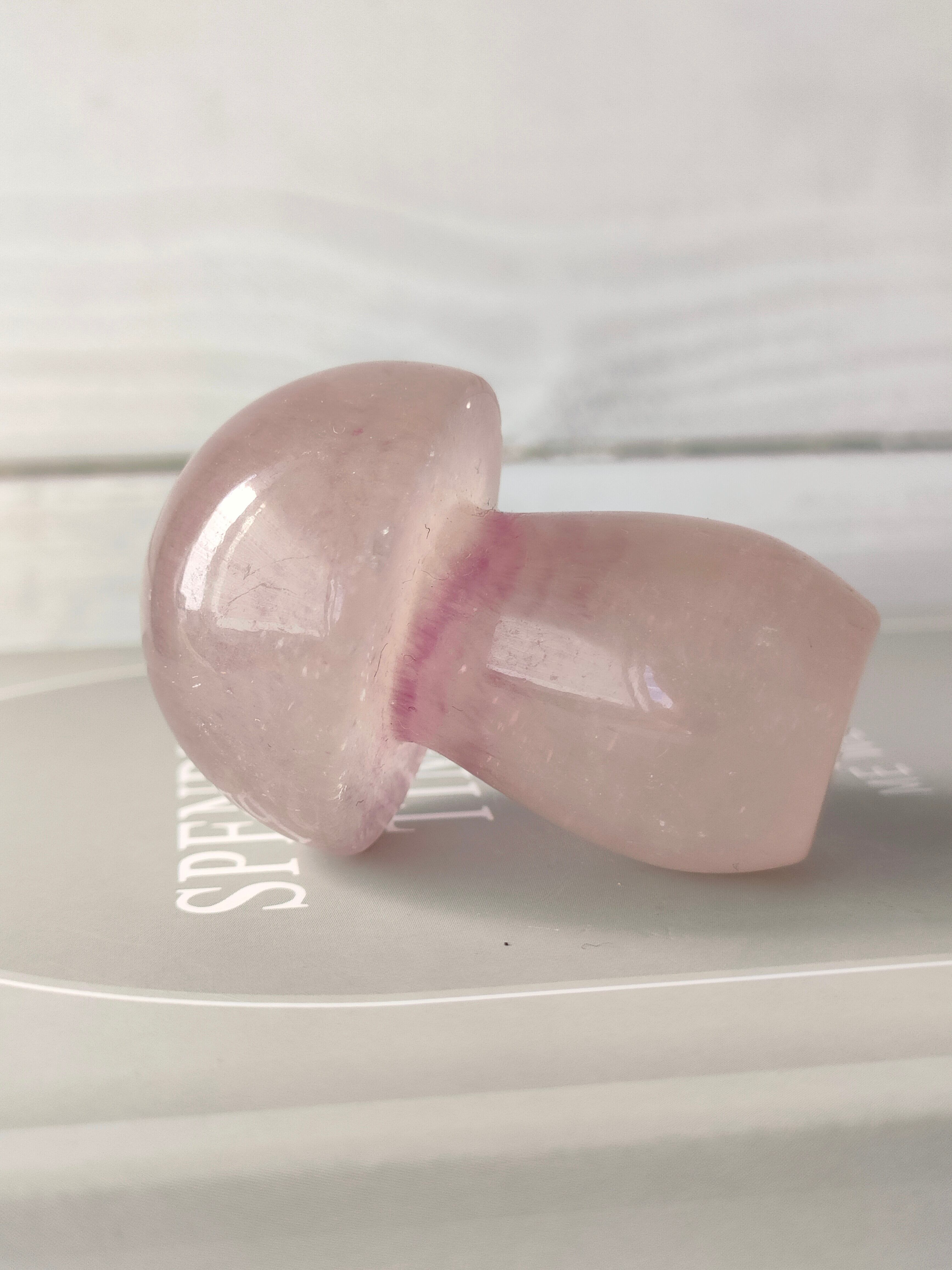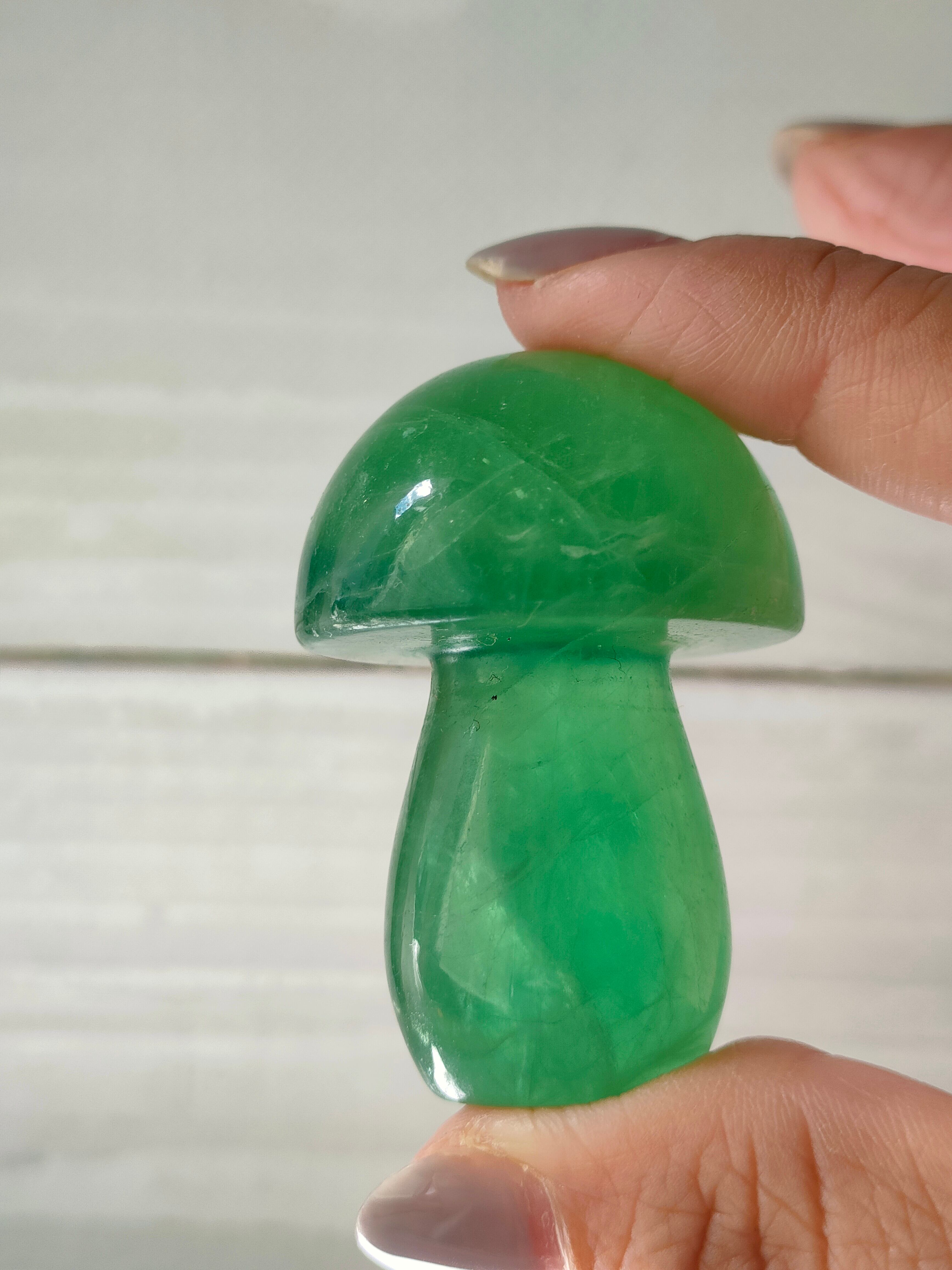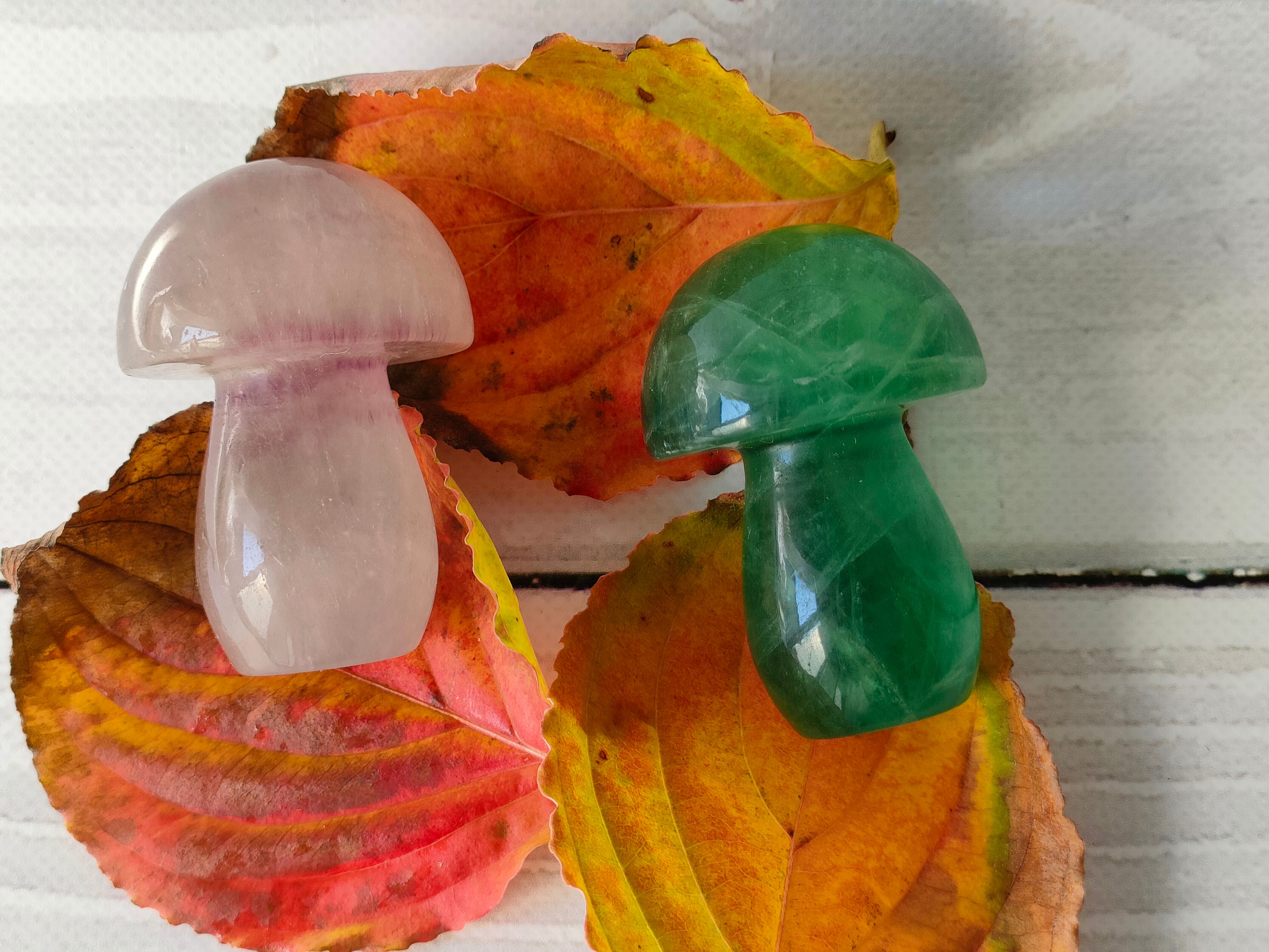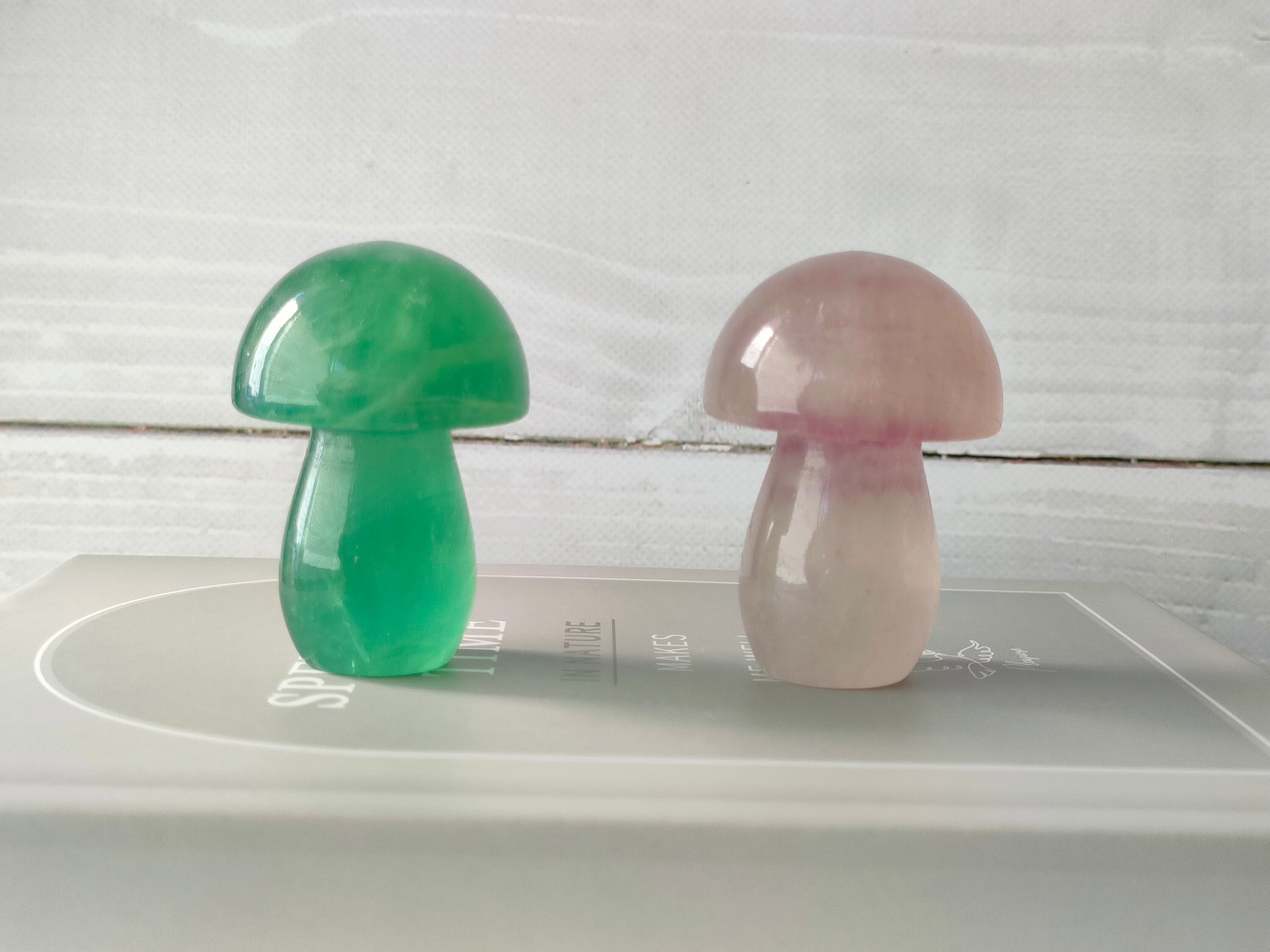 透明感ある優しいグリーンと薄いパープルでキラキラな可愛らしいきのこです。