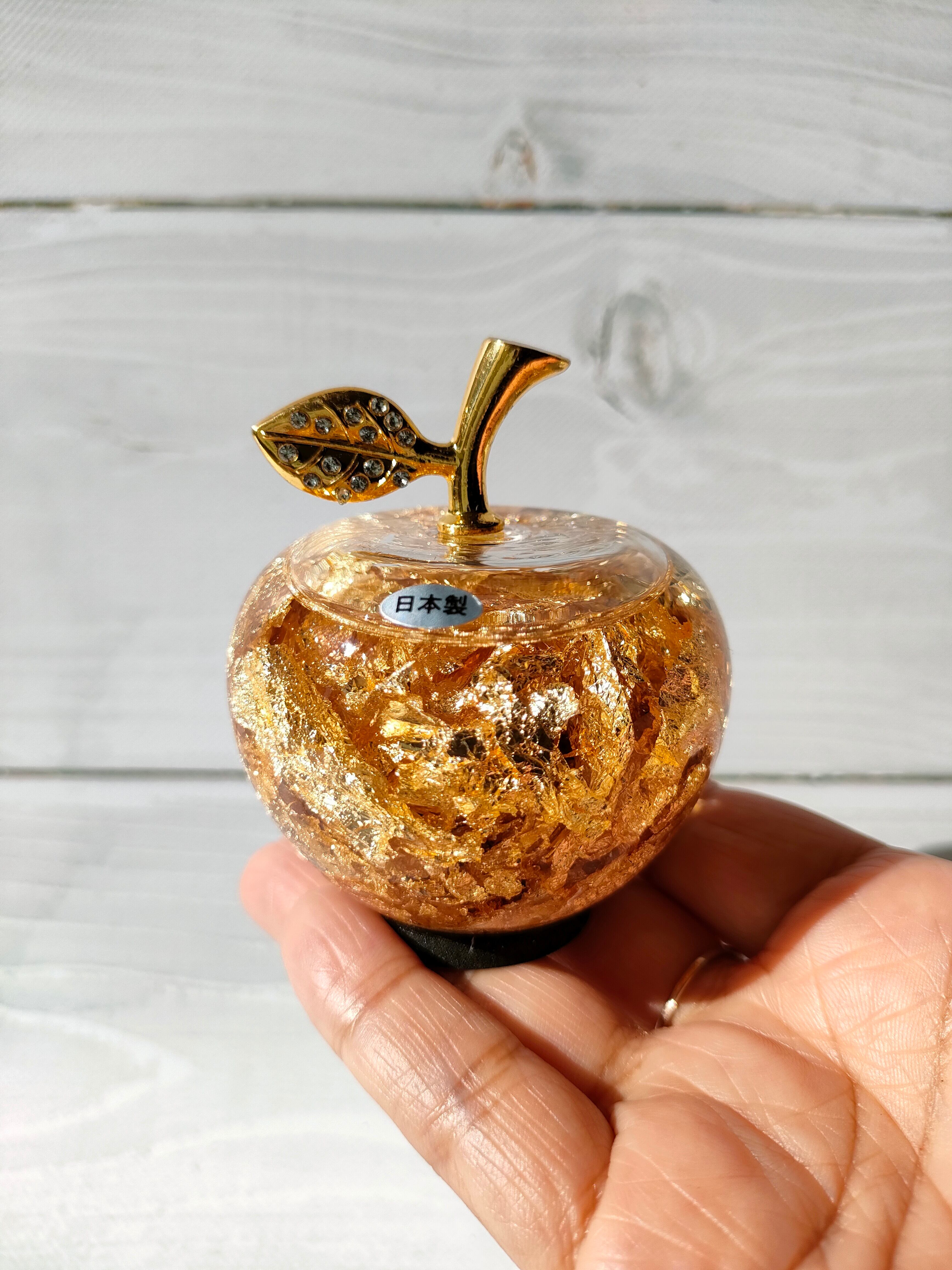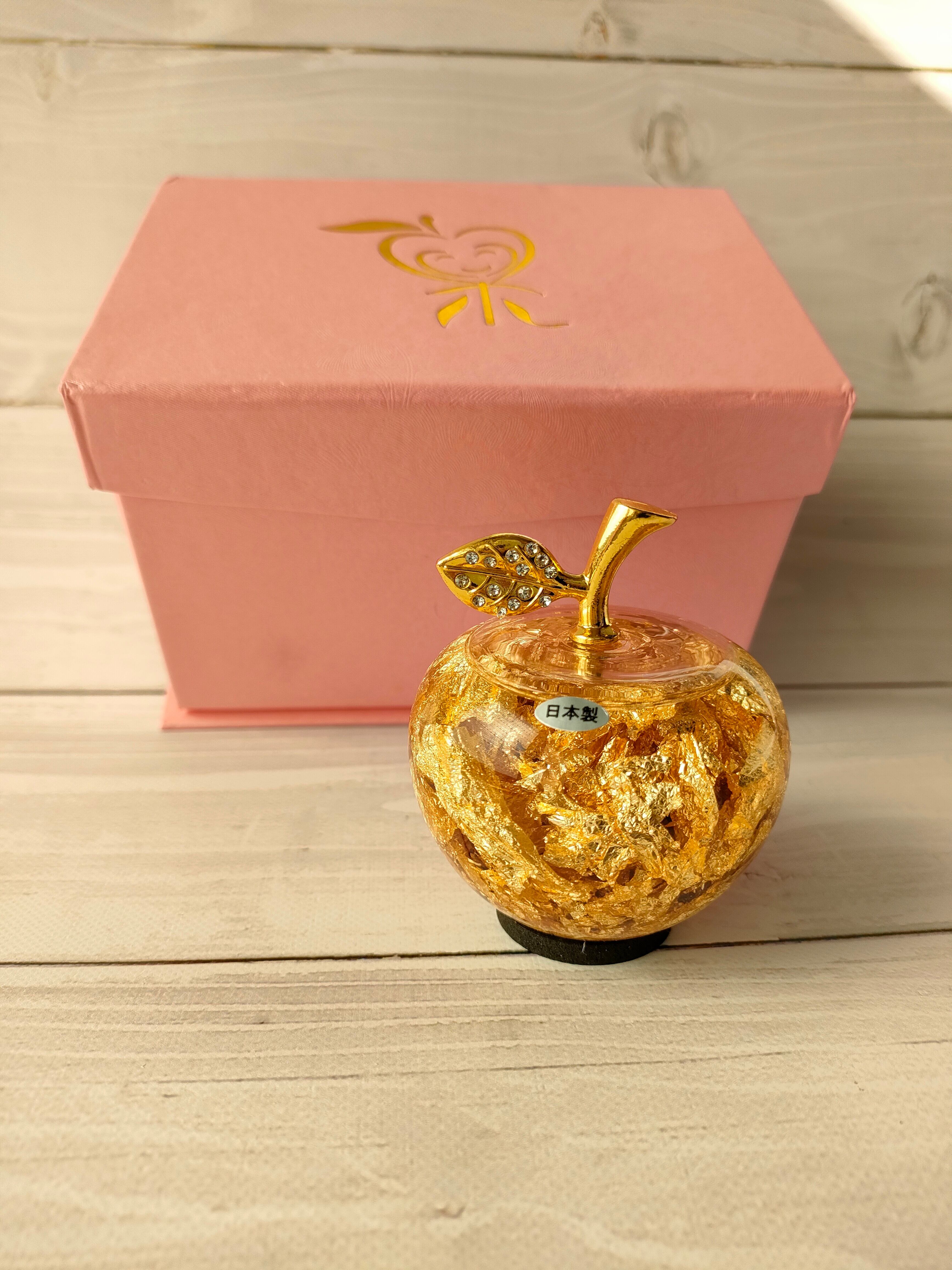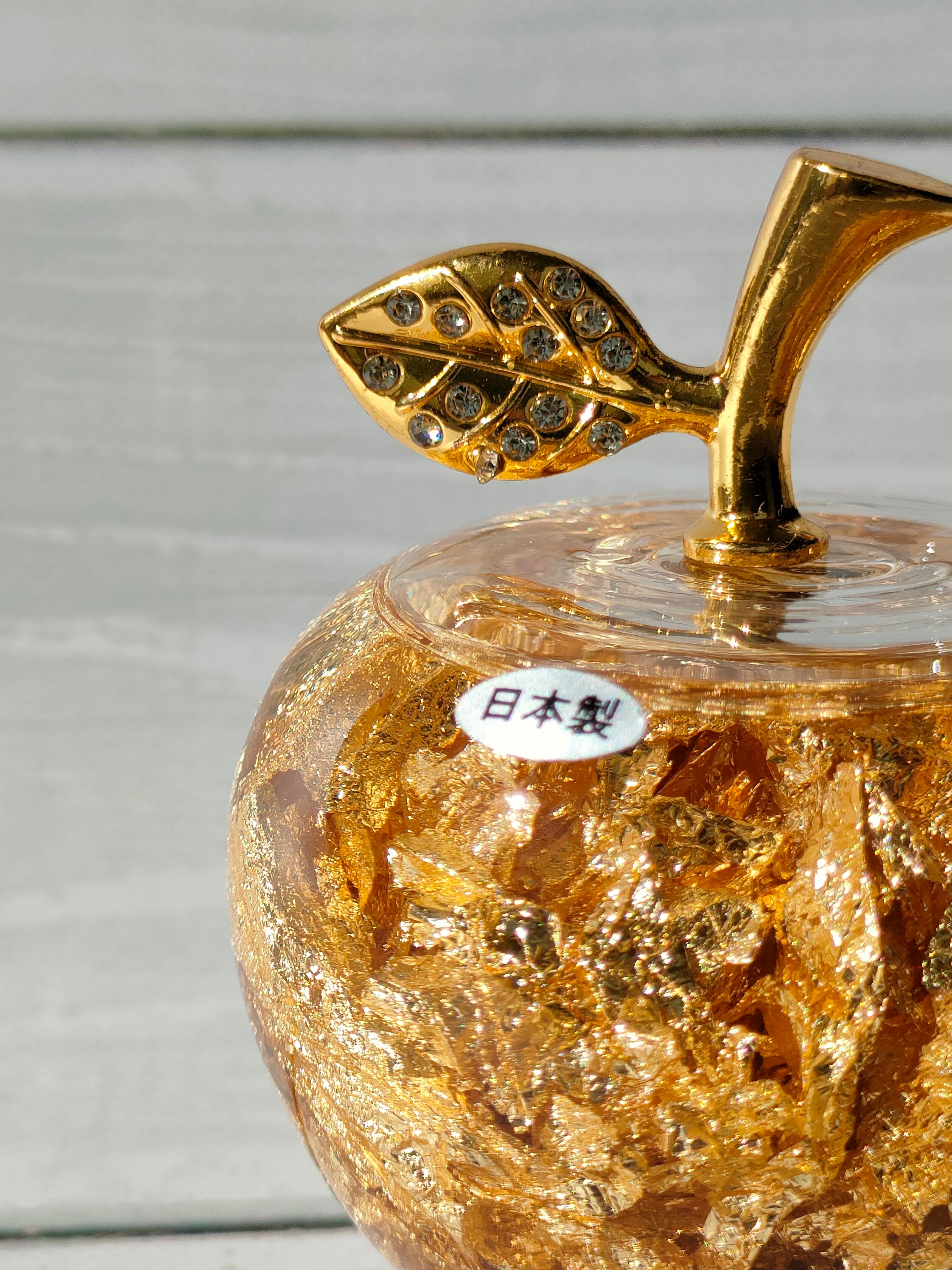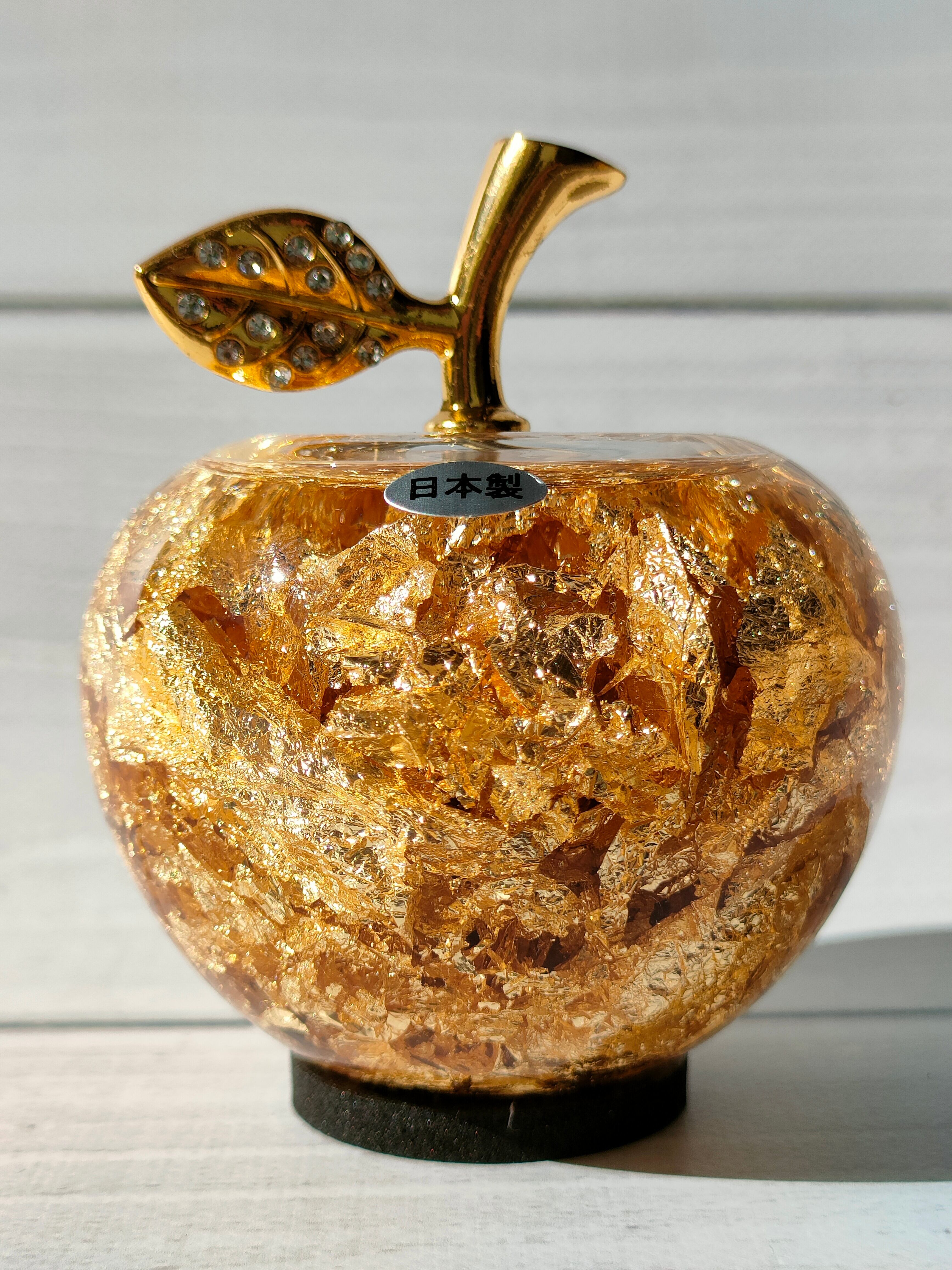 金箔入りのゴールドに輝くりんごの置物です。初回のりんごより小さめサイズになります。