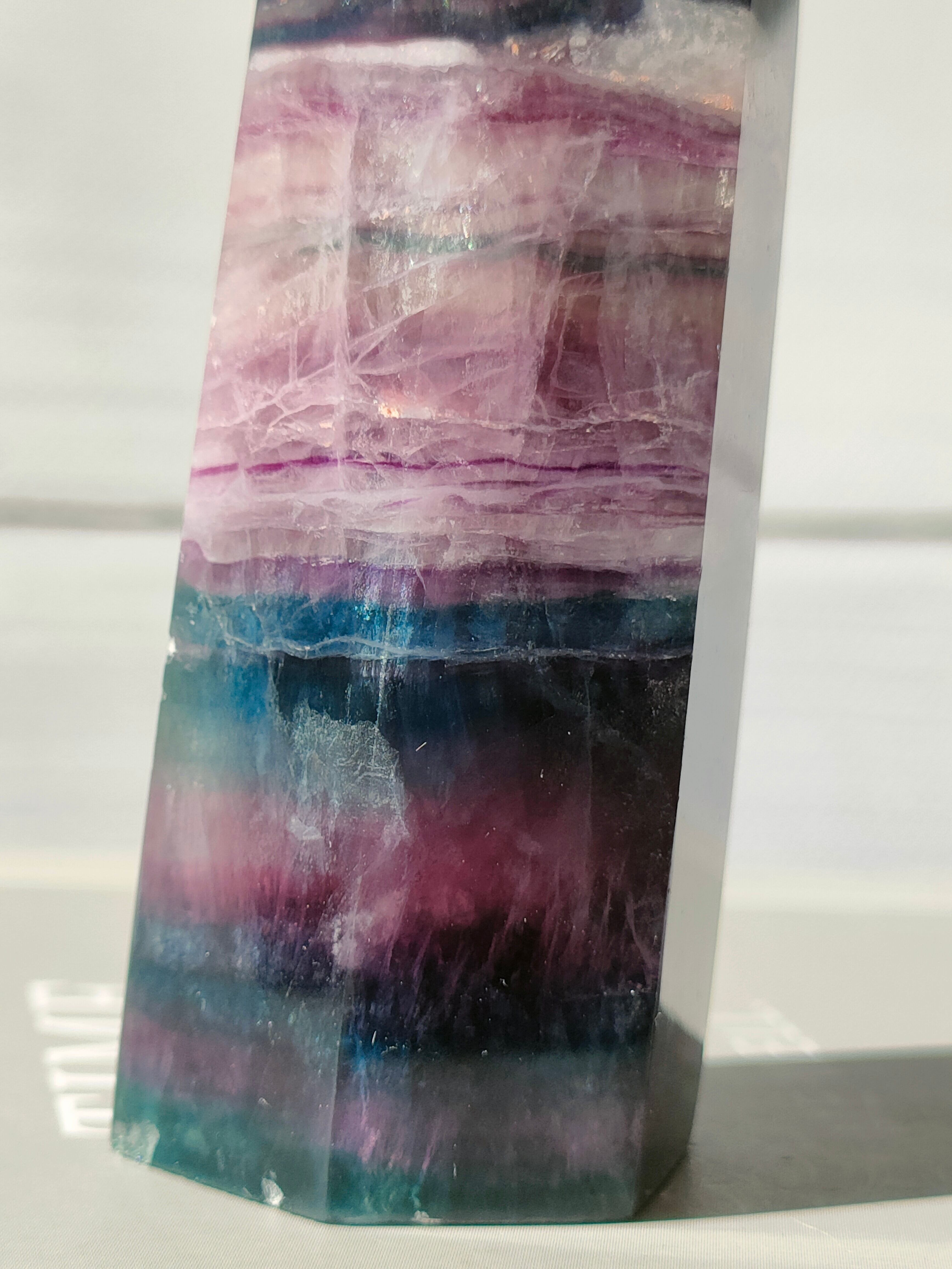 フローライトはラテン語の『fluere(流れるという意味)』が名前の由来になっています。また、2色以上が層状に混じり合ったフローライトをバイカラー、レインボーフローライトとも呼ばれます。