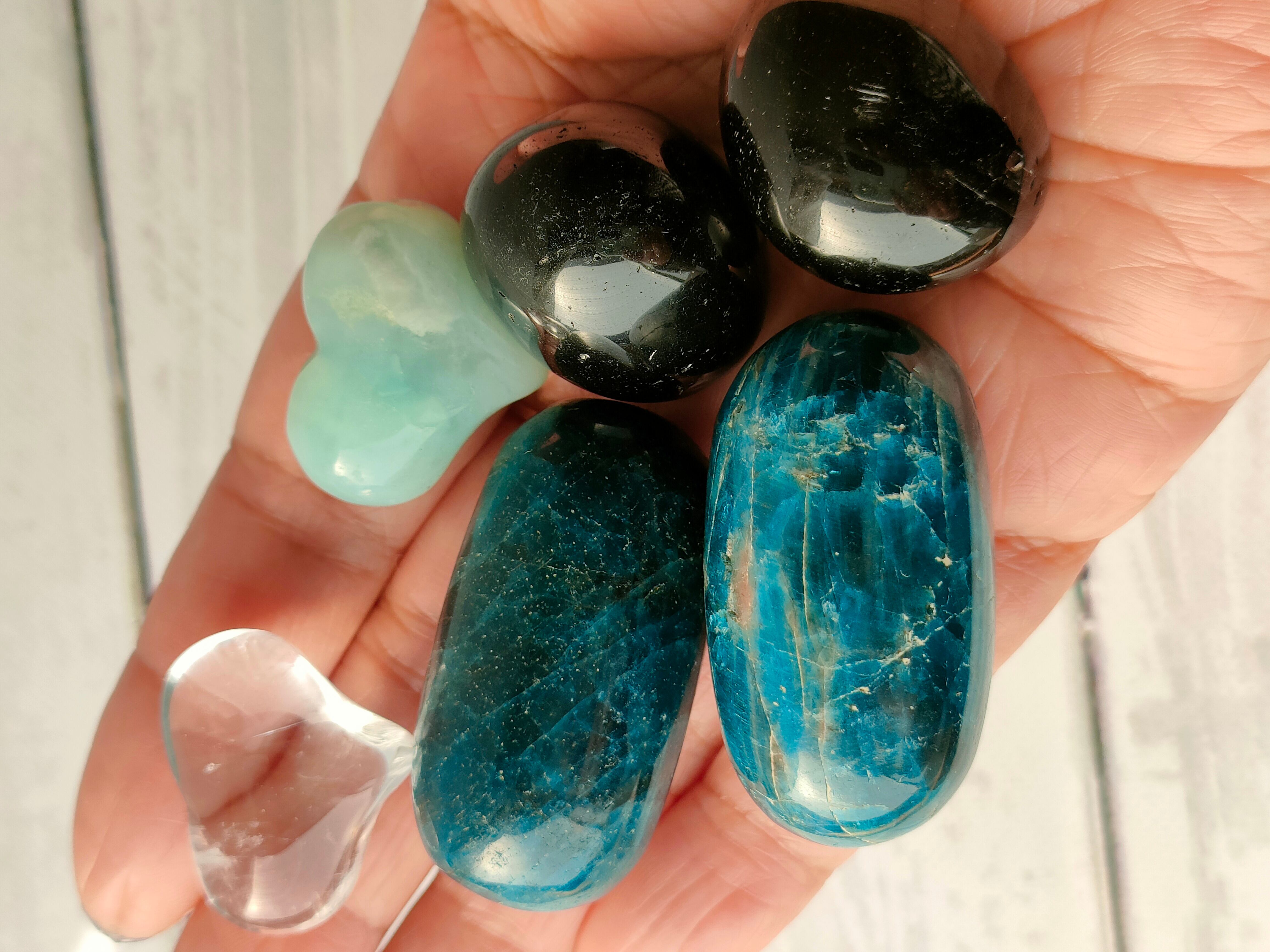 アパタイト・モリオン・ハートアマゾナイトorハートクォーツポーチつき