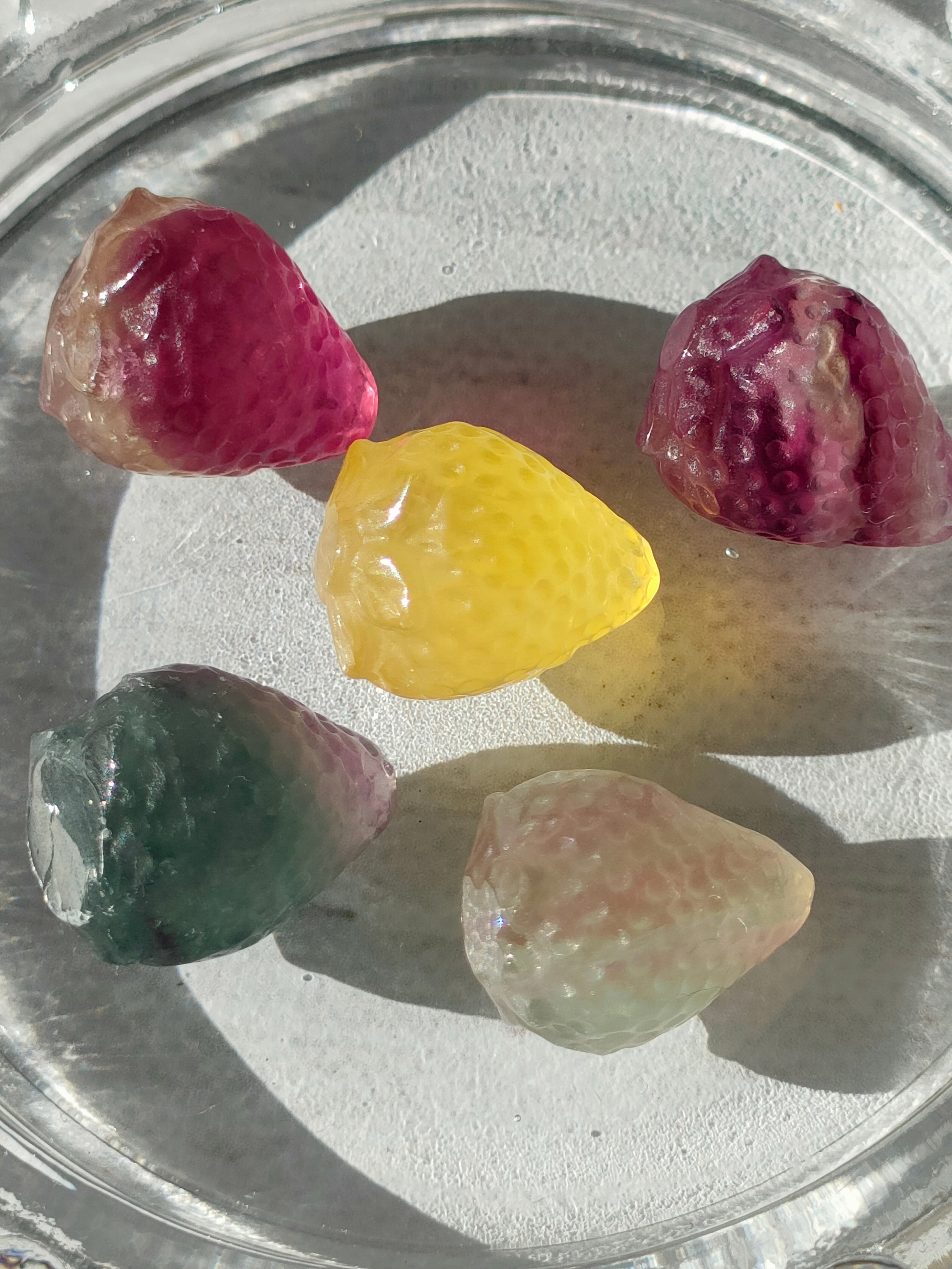パープル、イエロー、ホワイト、グリーンのフローライトが華やかです。