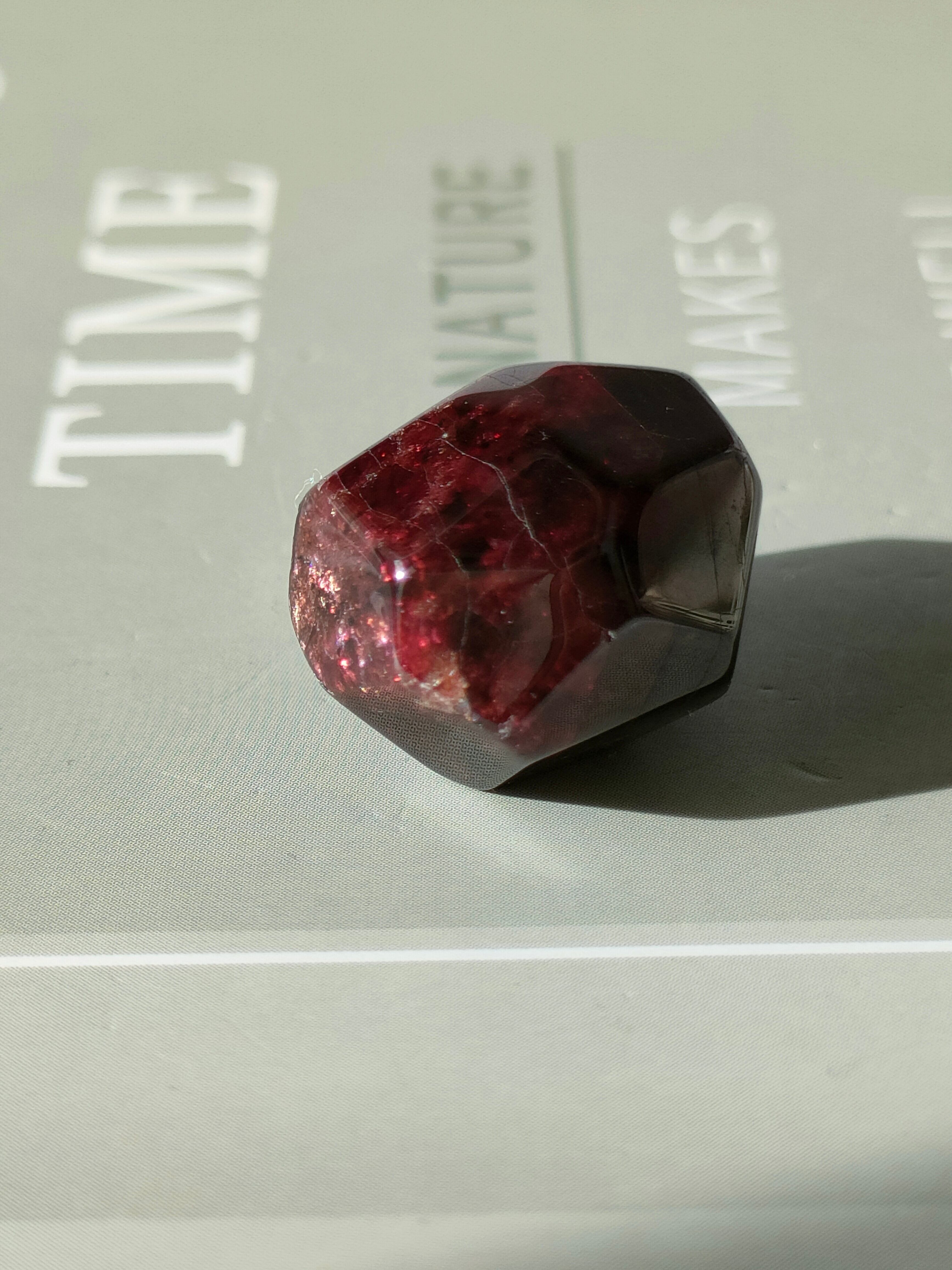 赤いざくろの実が集まっているような原石の姿から『実り』を象徴します。