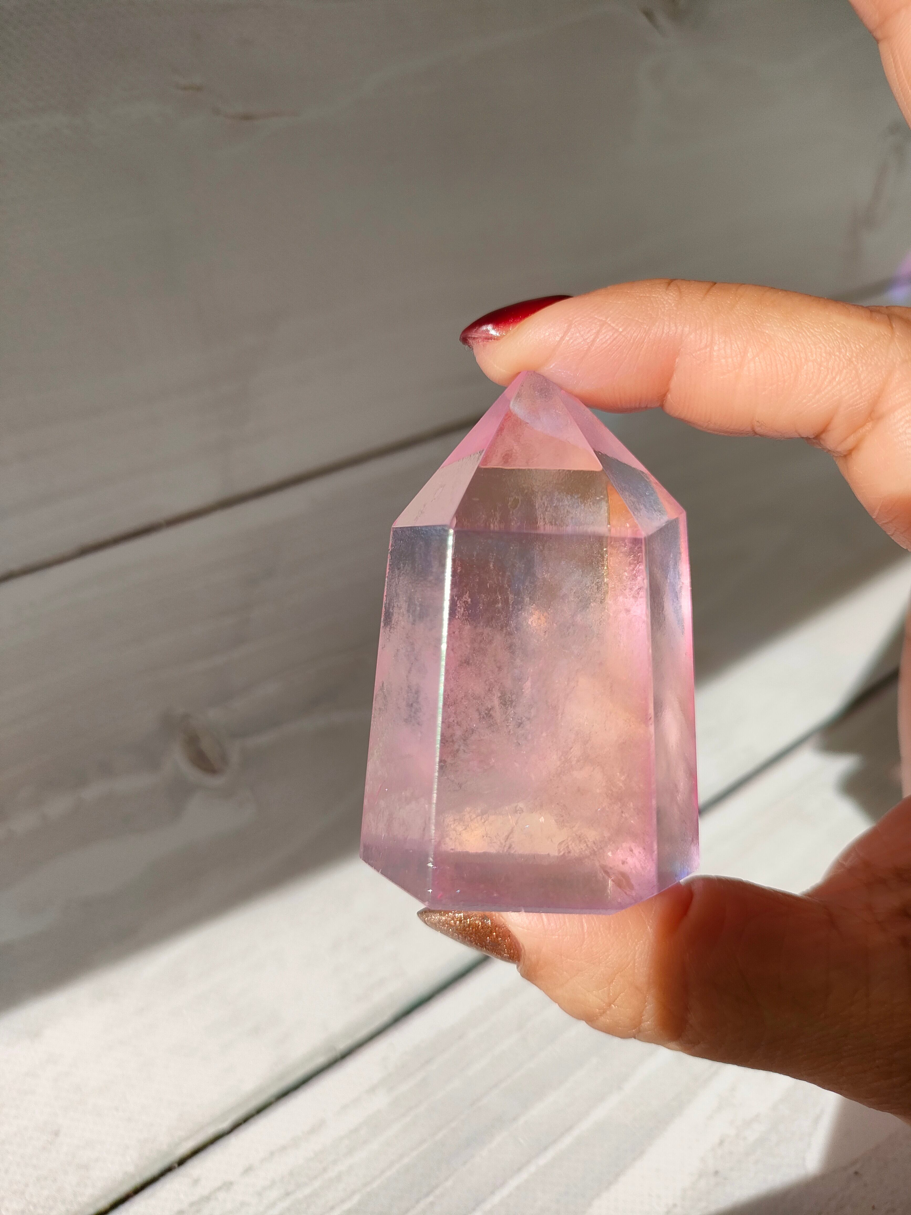 オーラクリスタルは、天然水晶のエネルギーに光の波動をまとうことで、よりパワフルなエネルギーを放ちます。