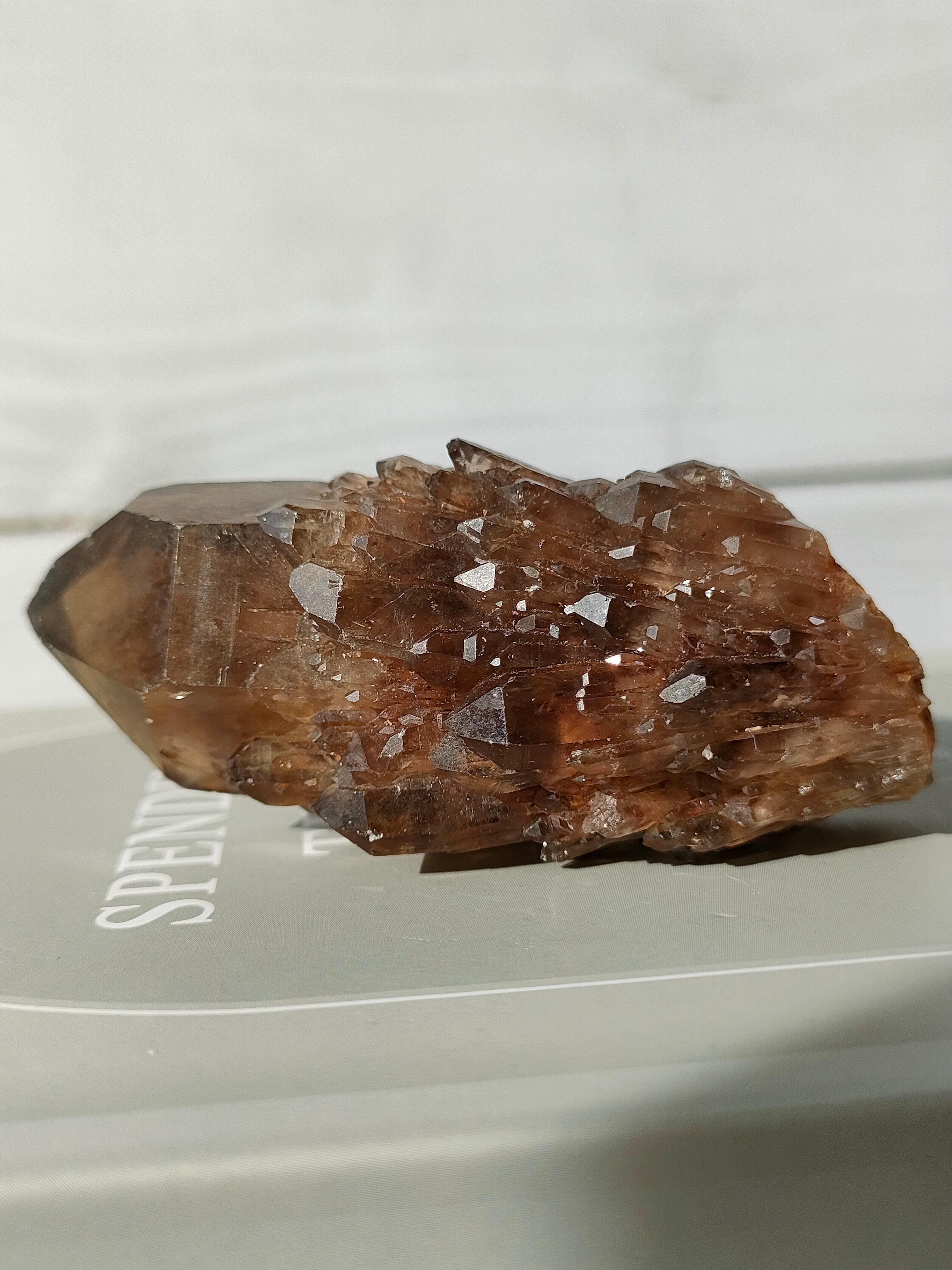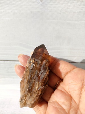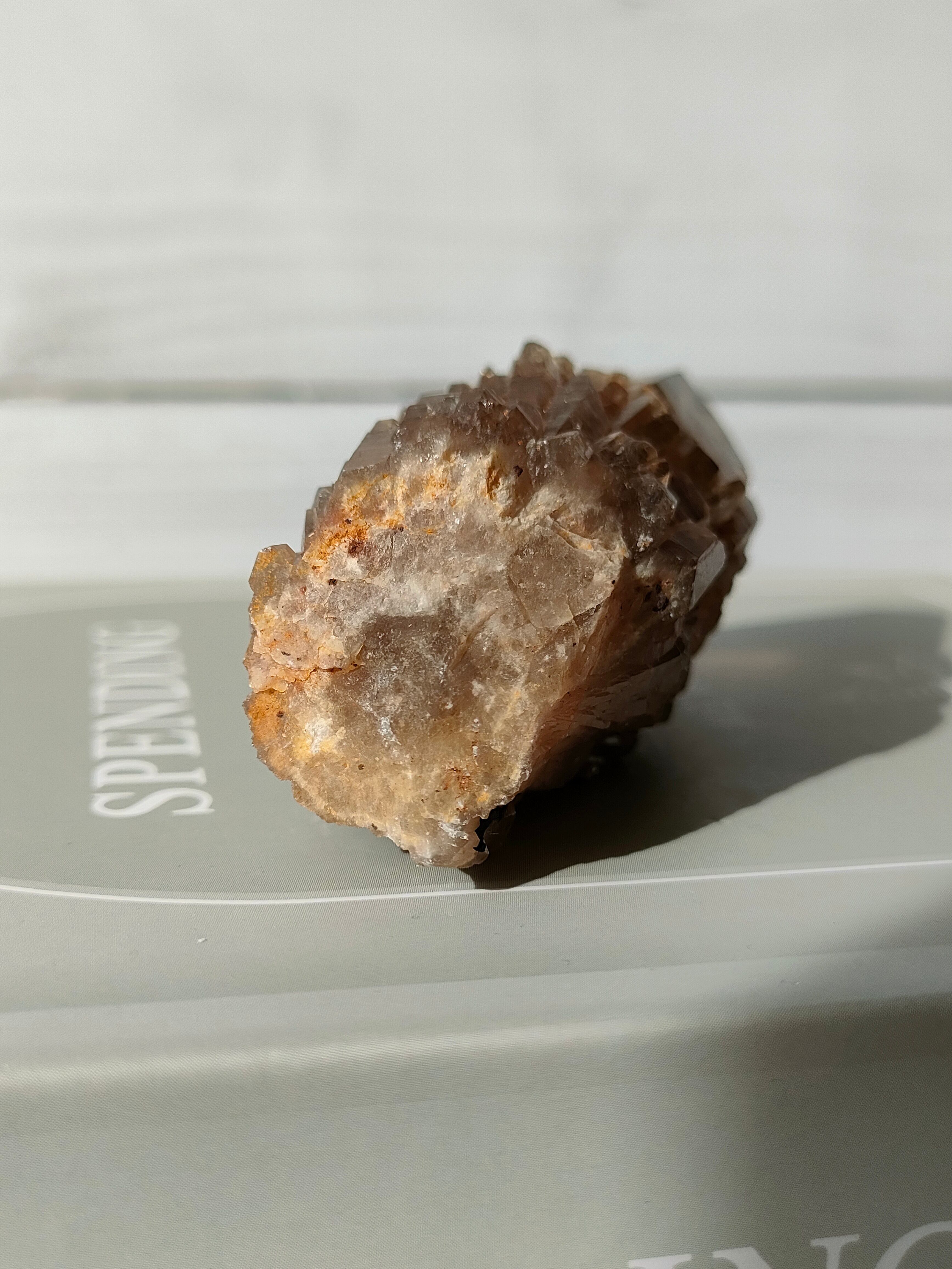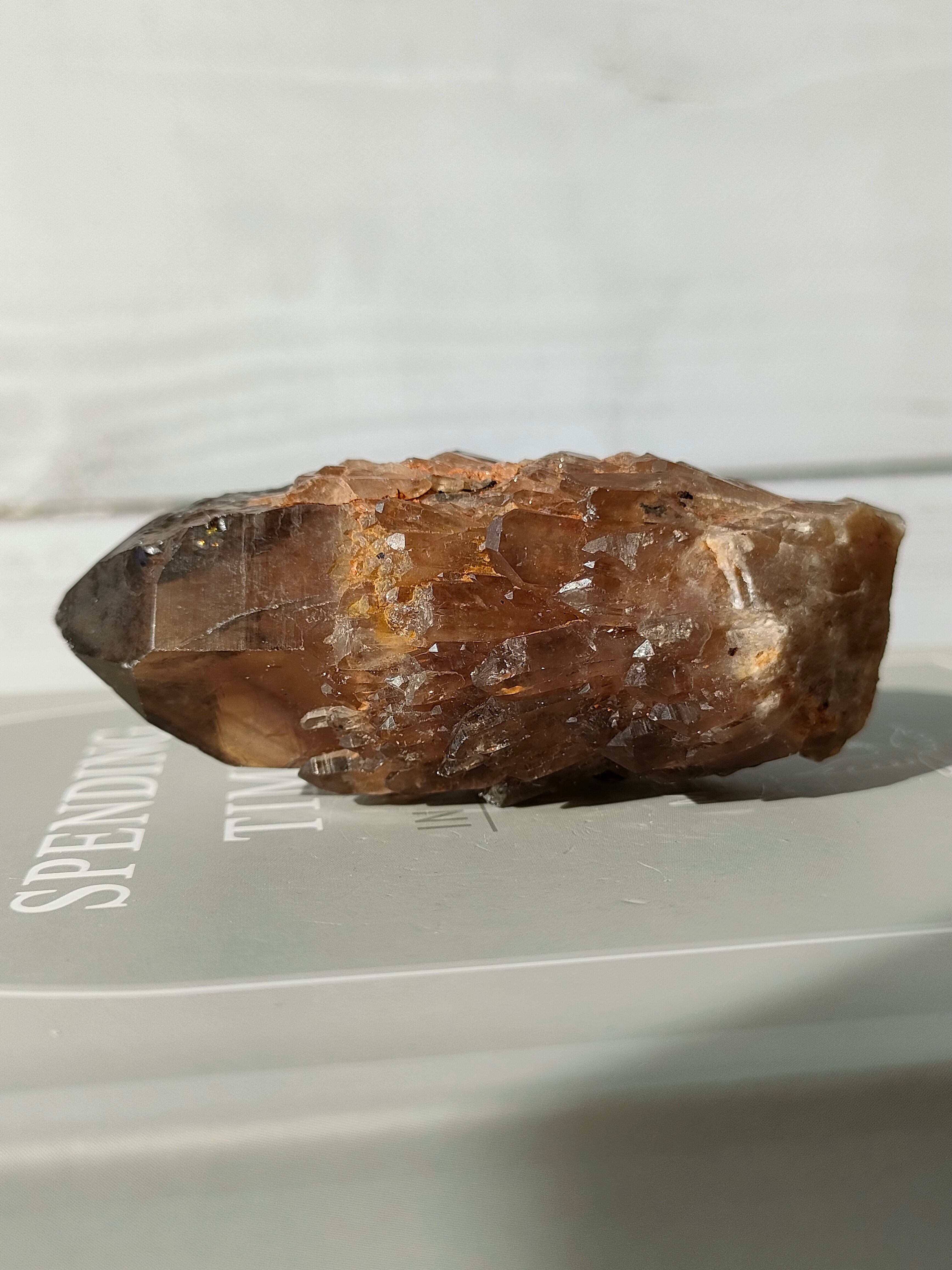 熱処理がされていないシトリンはブラウンカラーに近く、スモーキークオーツにも似ています。写真にはありませんが、ポイントに光を当てると虹がみられます!