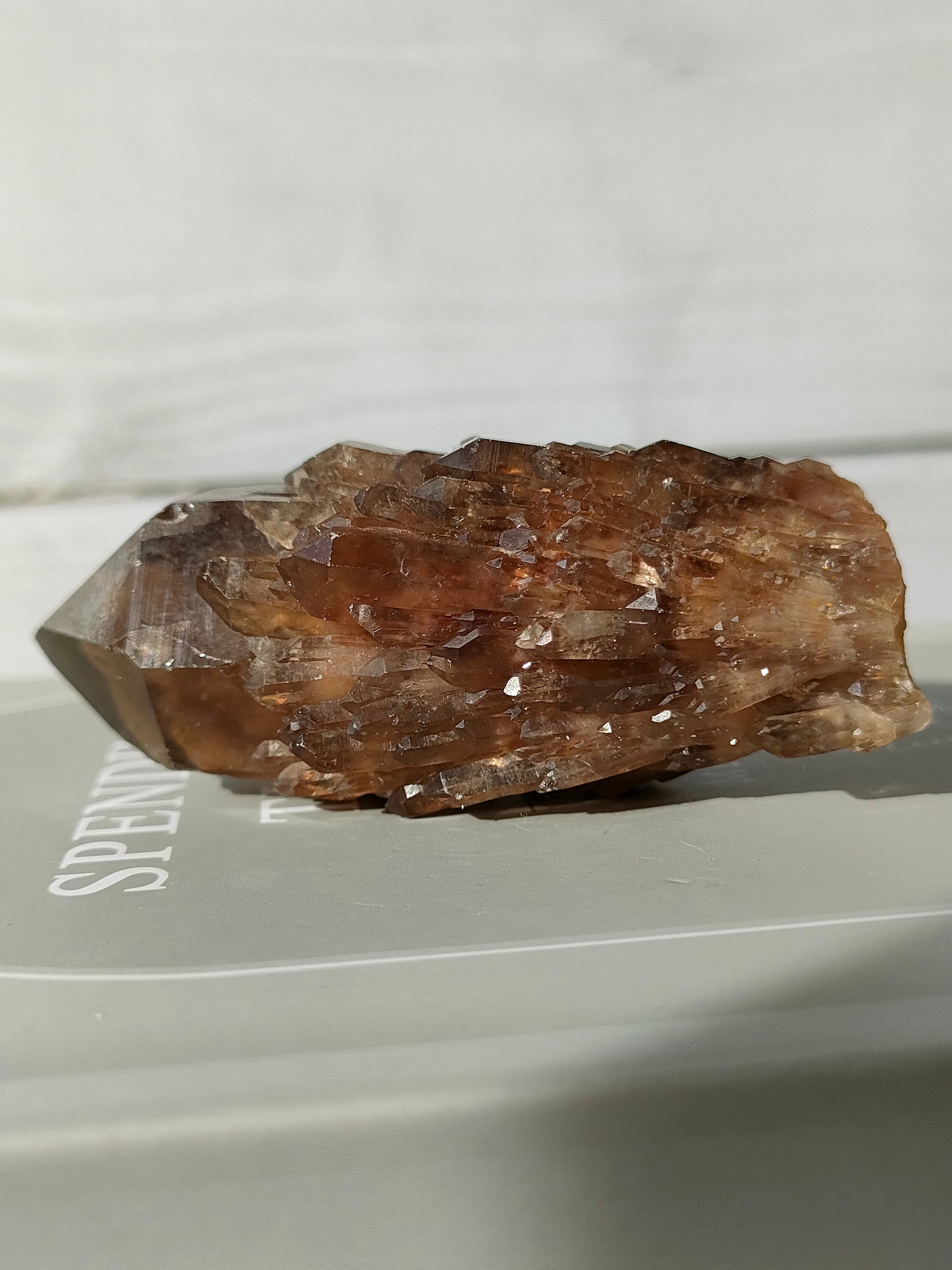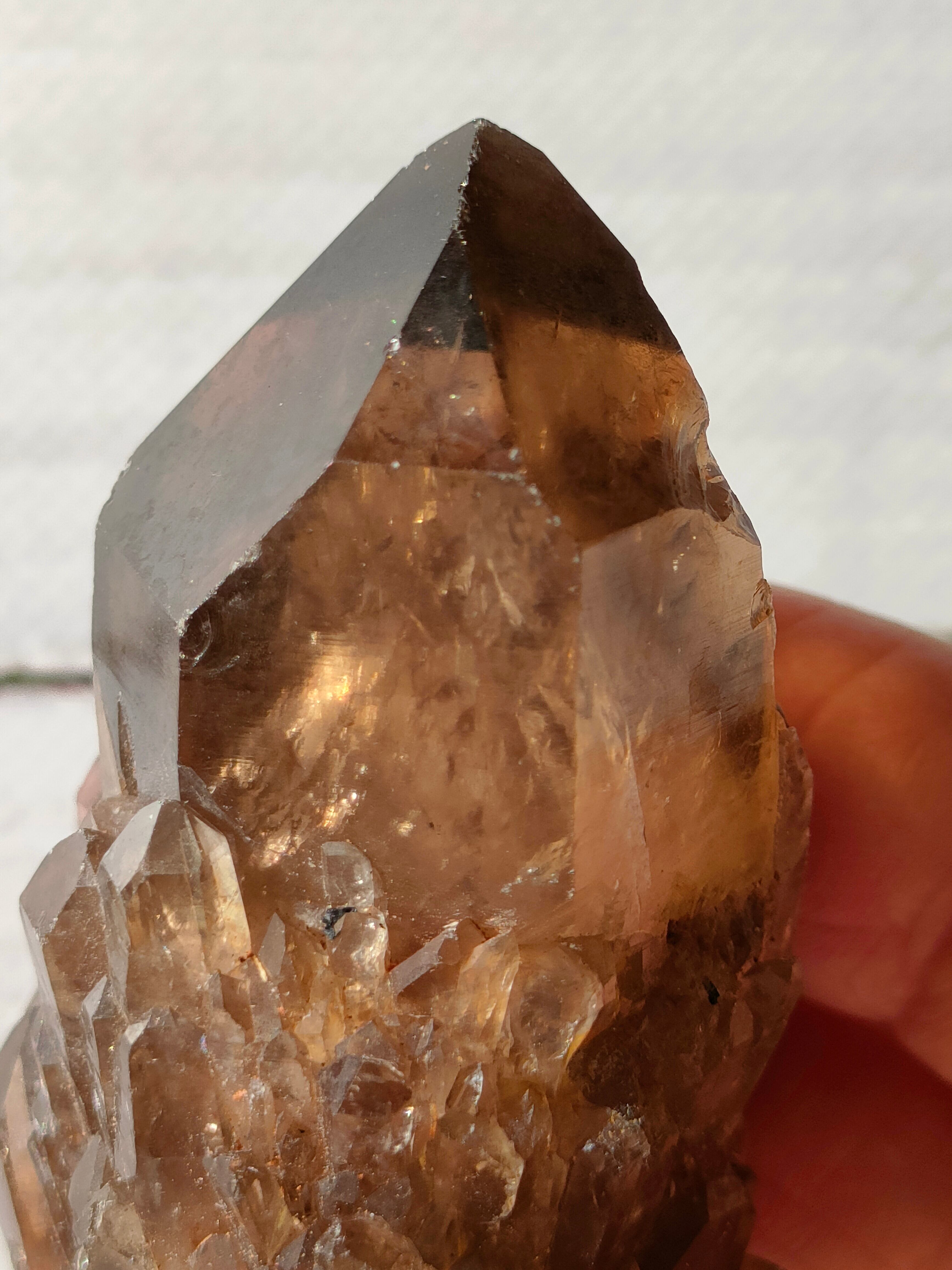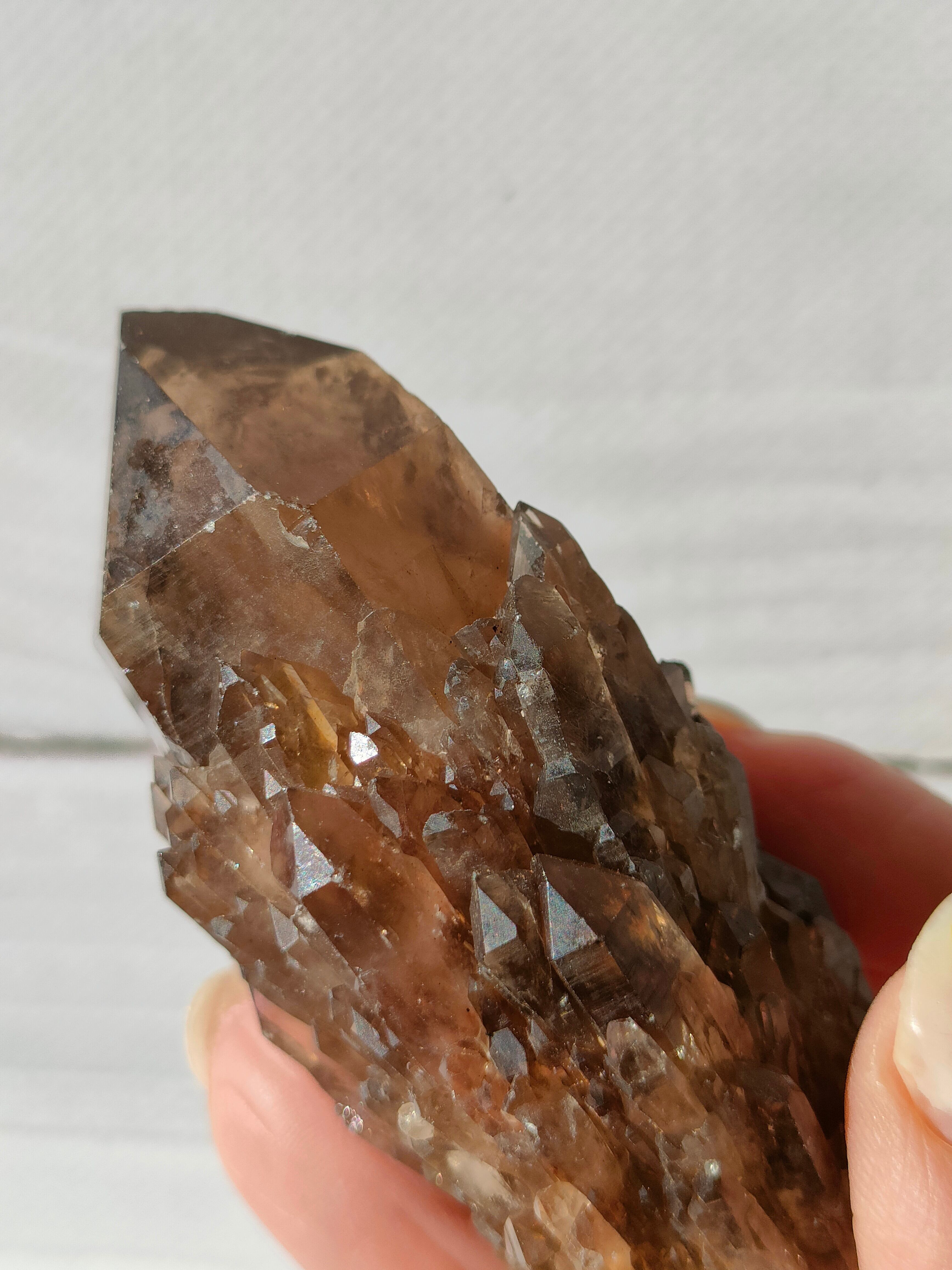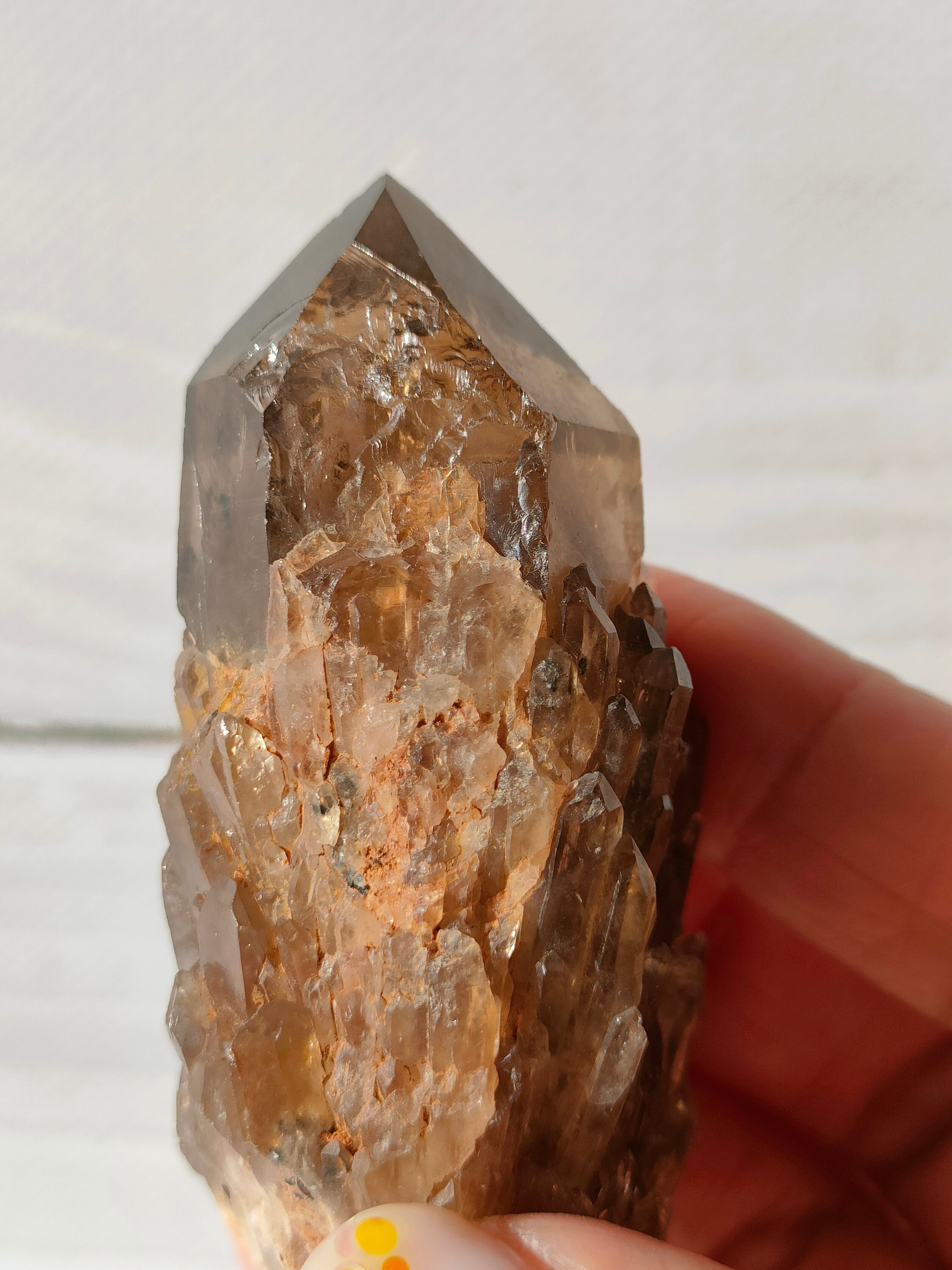 熱処理がされていないシトリンはブラウンカラーに近く、スモーキークオーツにも似ています。写真にはありませんが、ポイントに光を当てると虹がみられます!