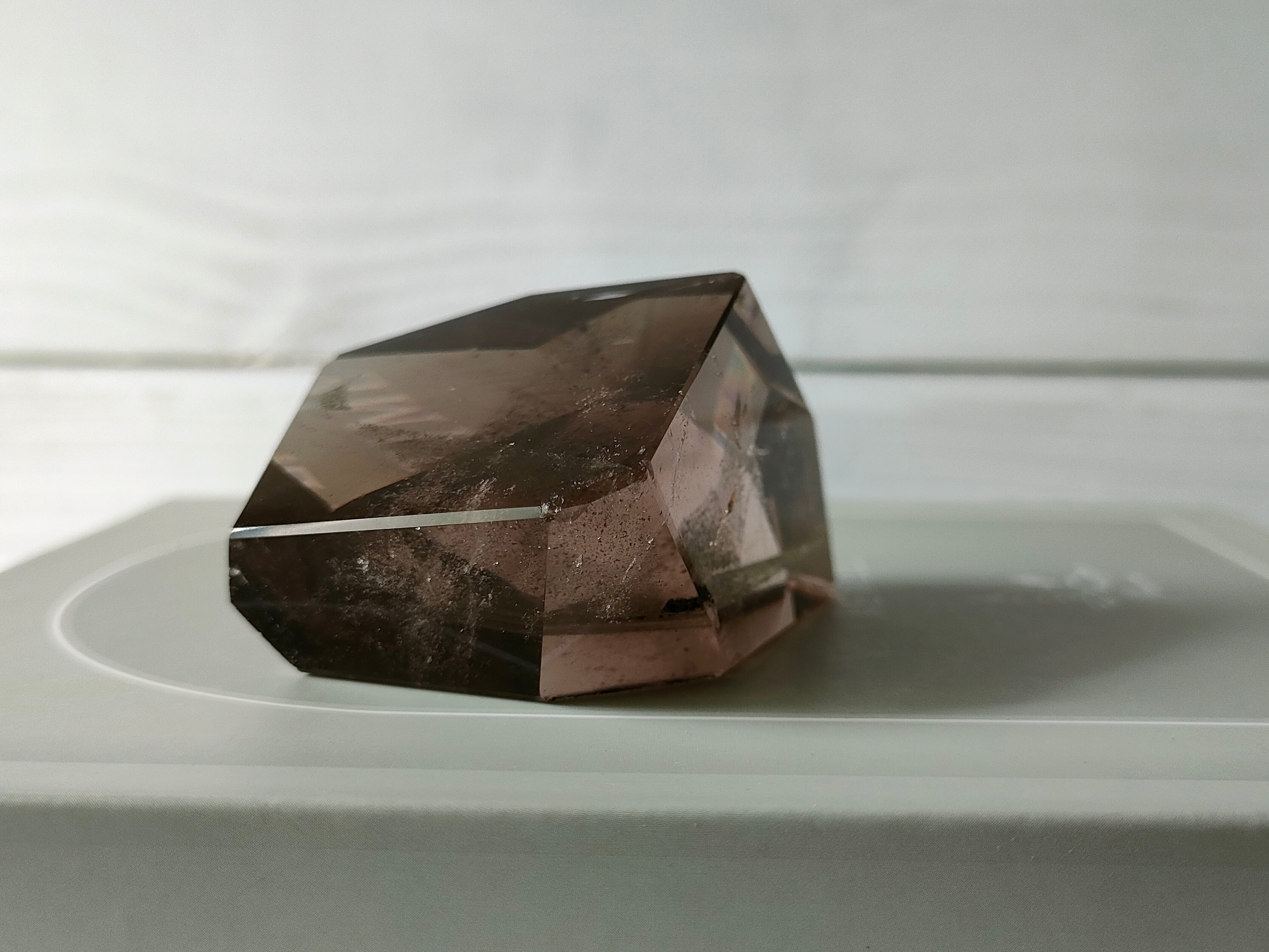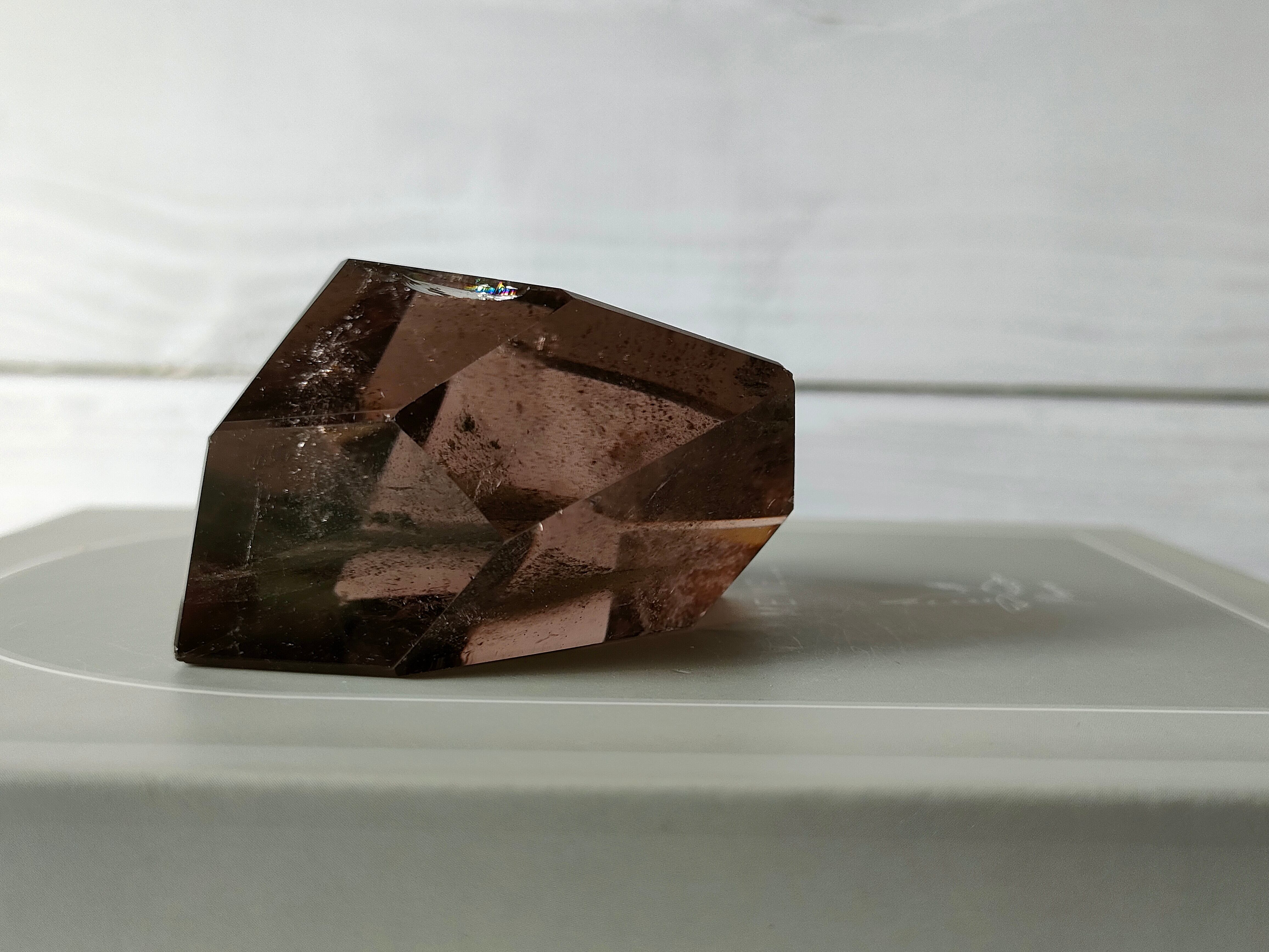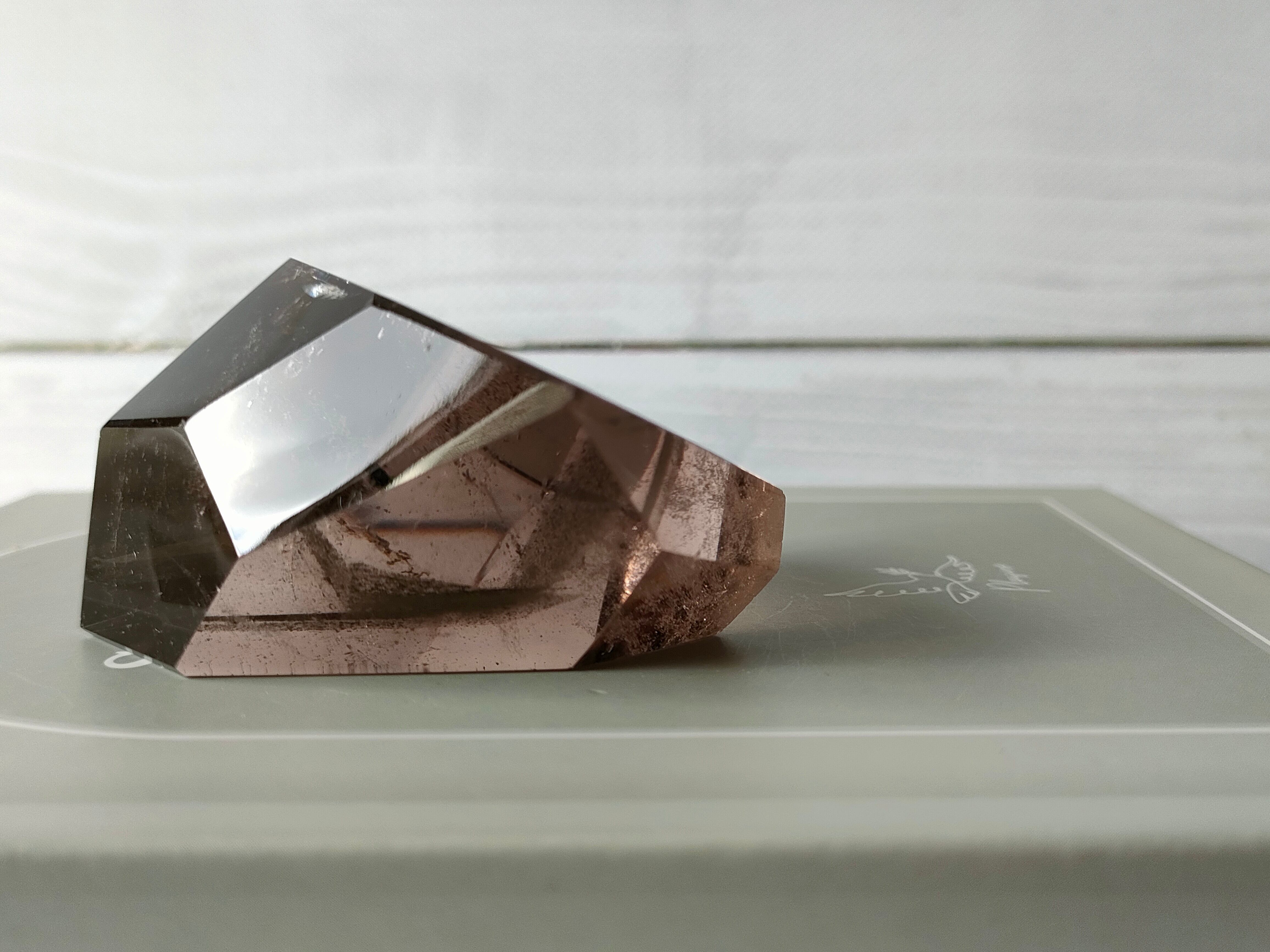 スモーキークォーツは水晶の中にアルミニウムイオンが入り込み、自然界の熱などの影響を受けて長い時間をかけて褐色を帯びていきます。