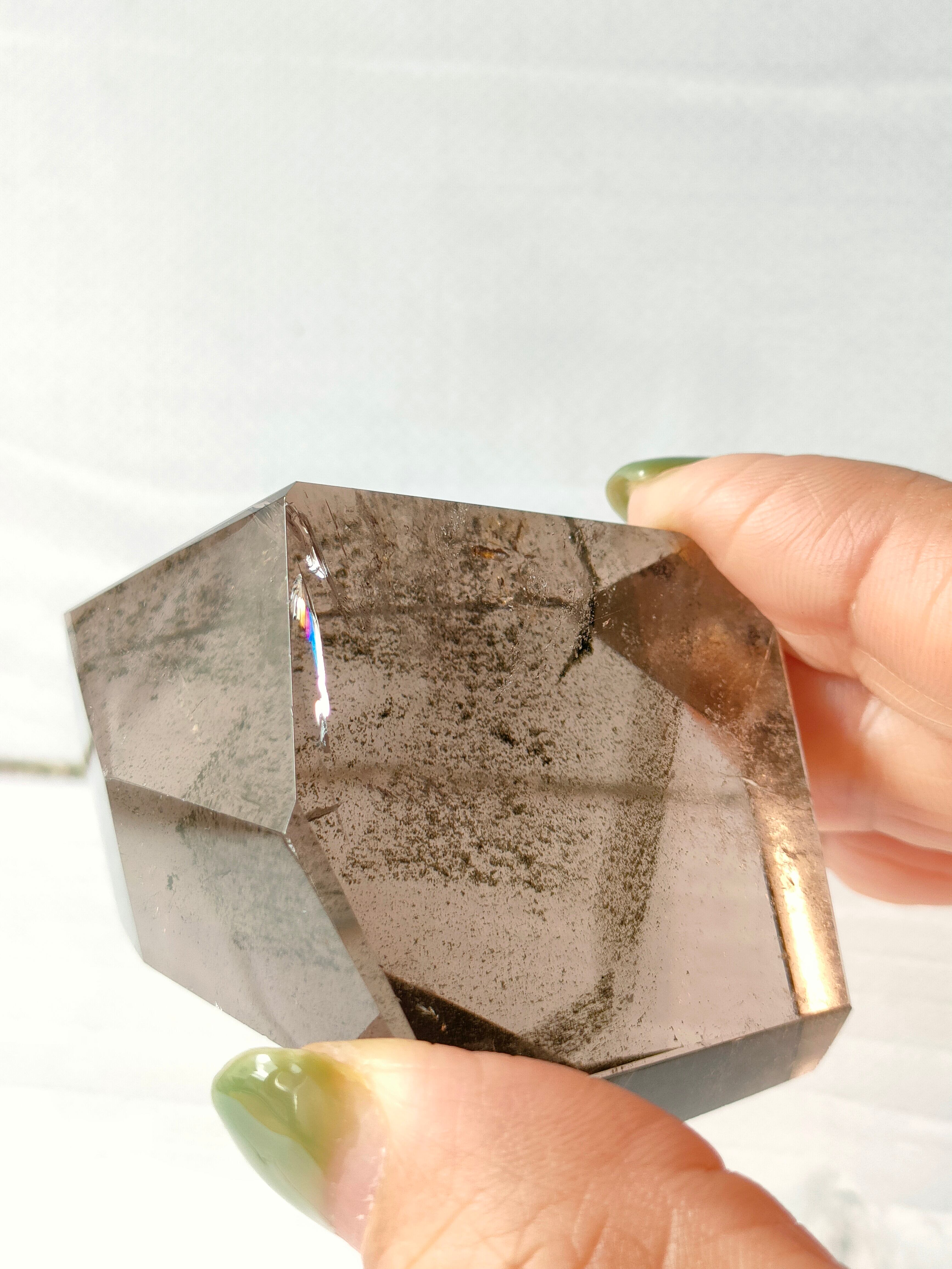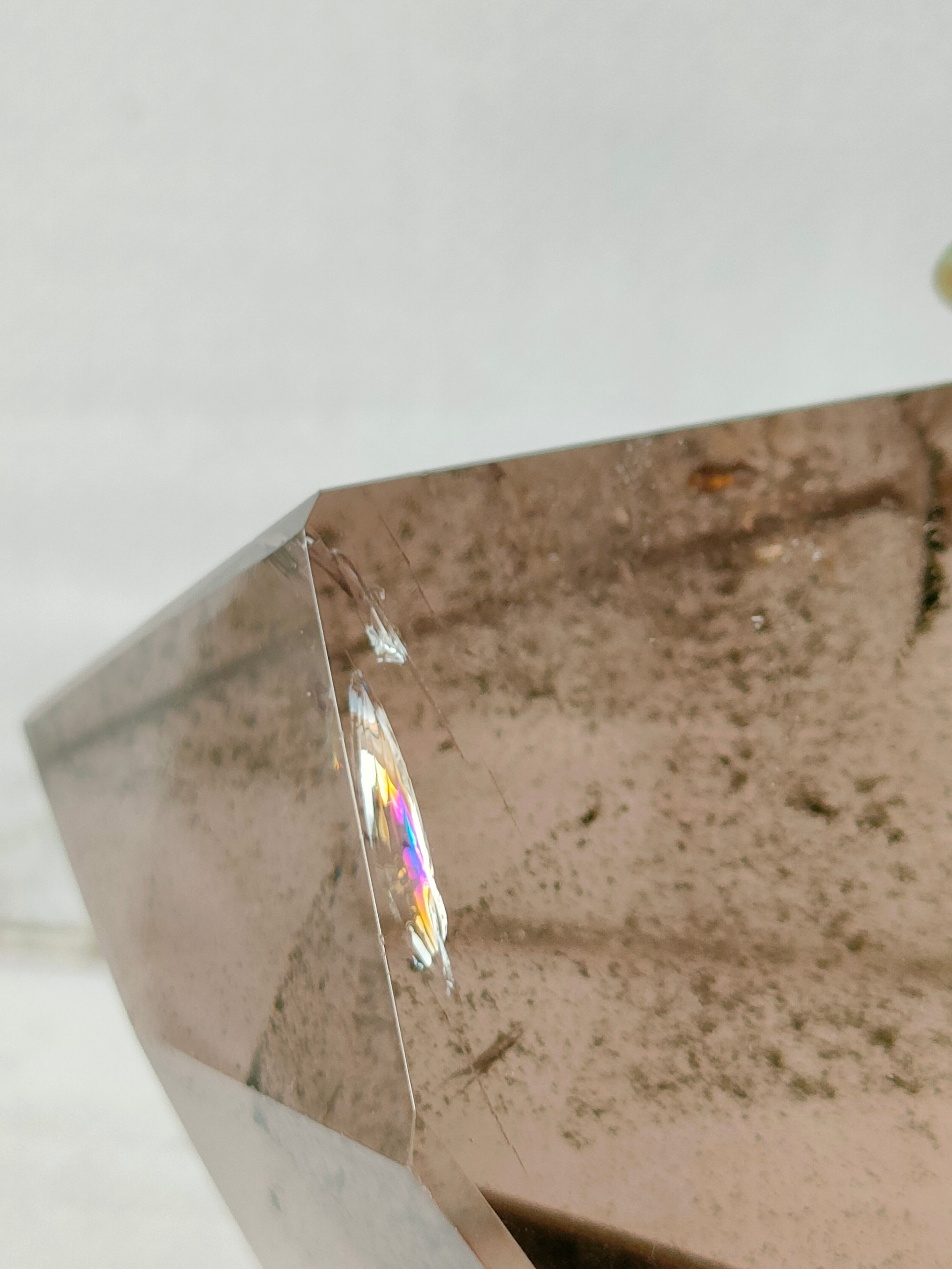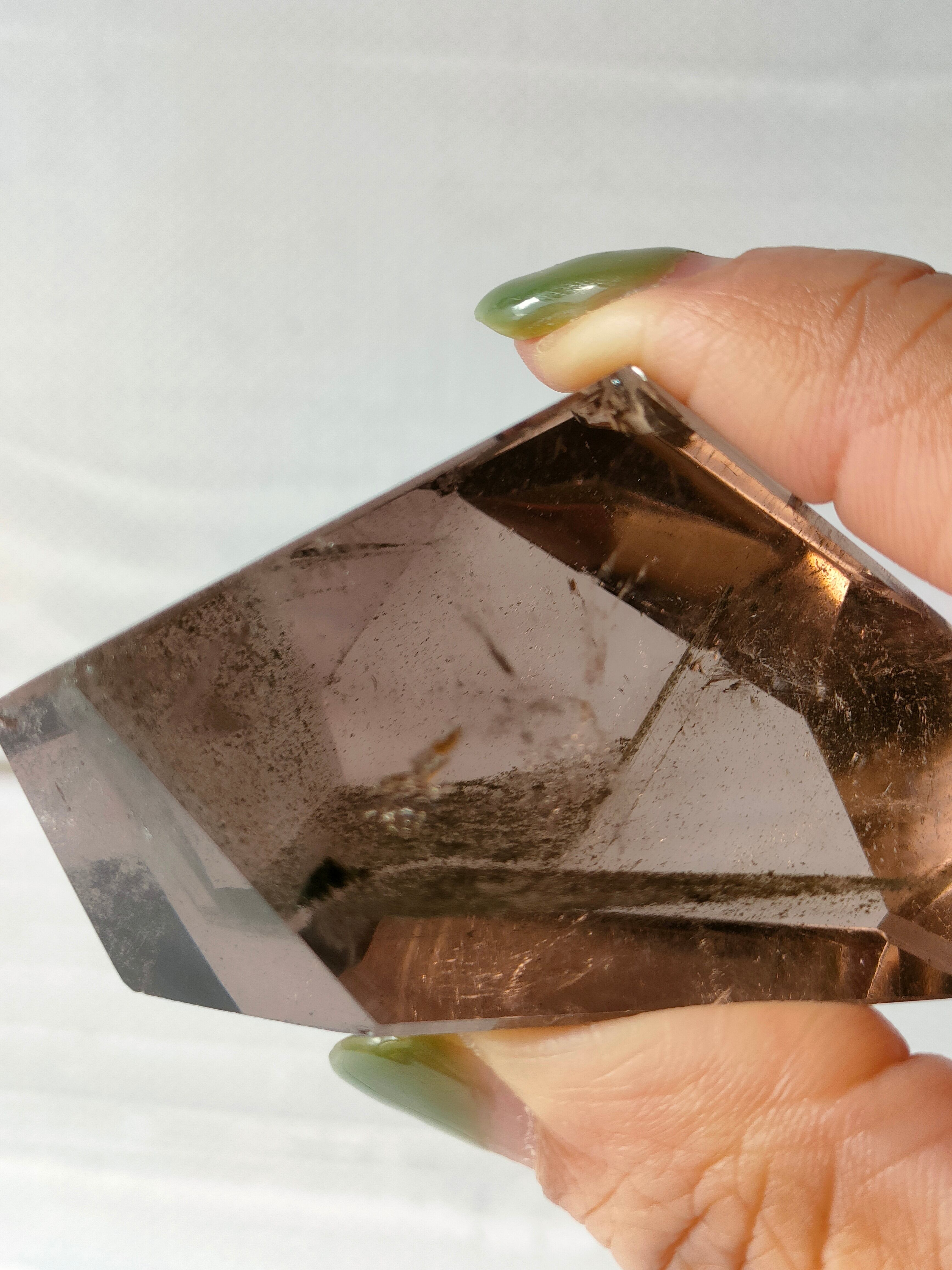 スモーキークォーツは水晶の中にアルミニウムイオンが入り込み、自然界の熱などの影響を受けて長い時間をかけて褐色を帯びていきます。