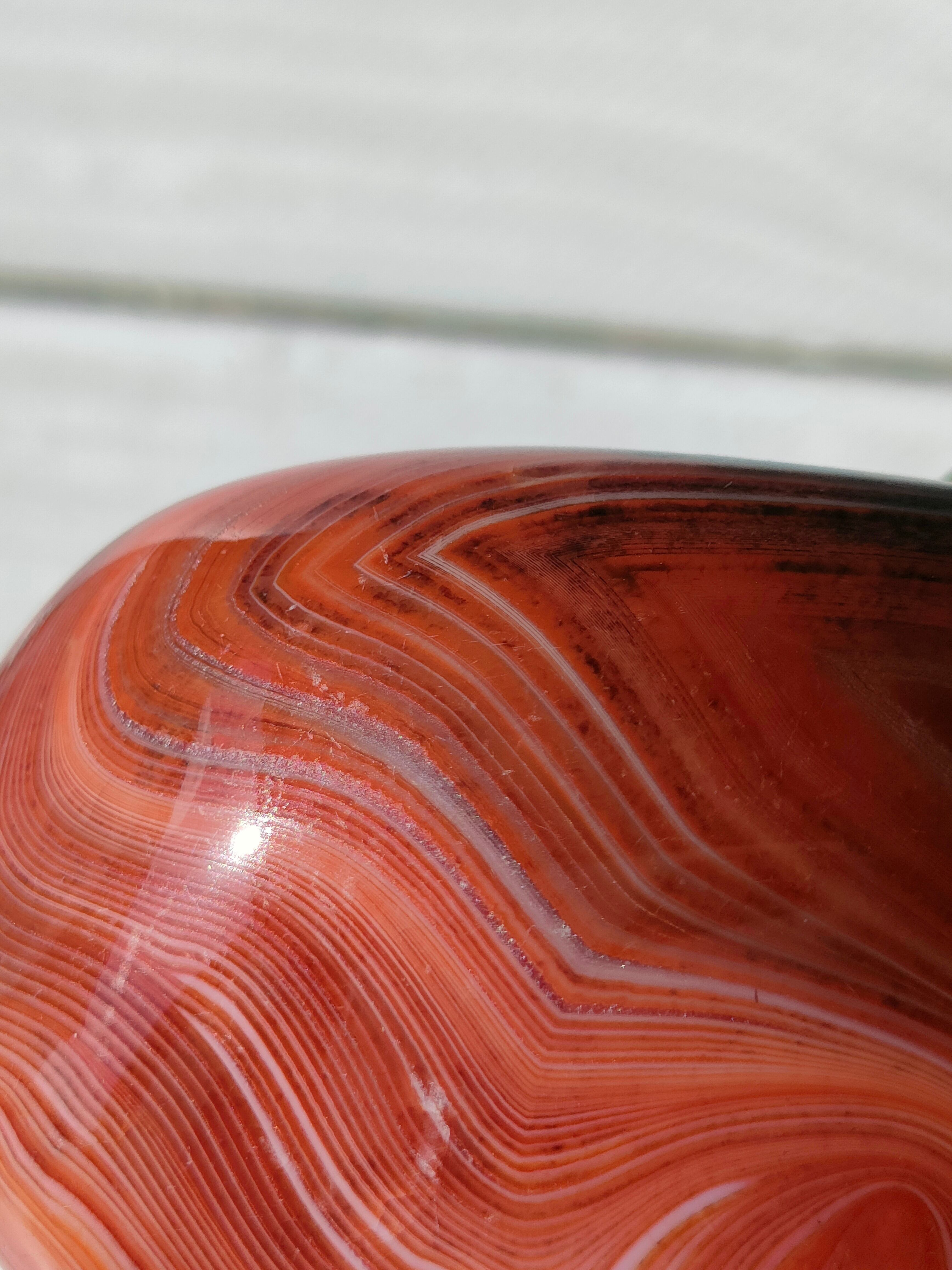 瑪瑙は小さな結晶の集まりでできています。縞模様の間から微細な水晶が見ることができます。(写真8枚目)