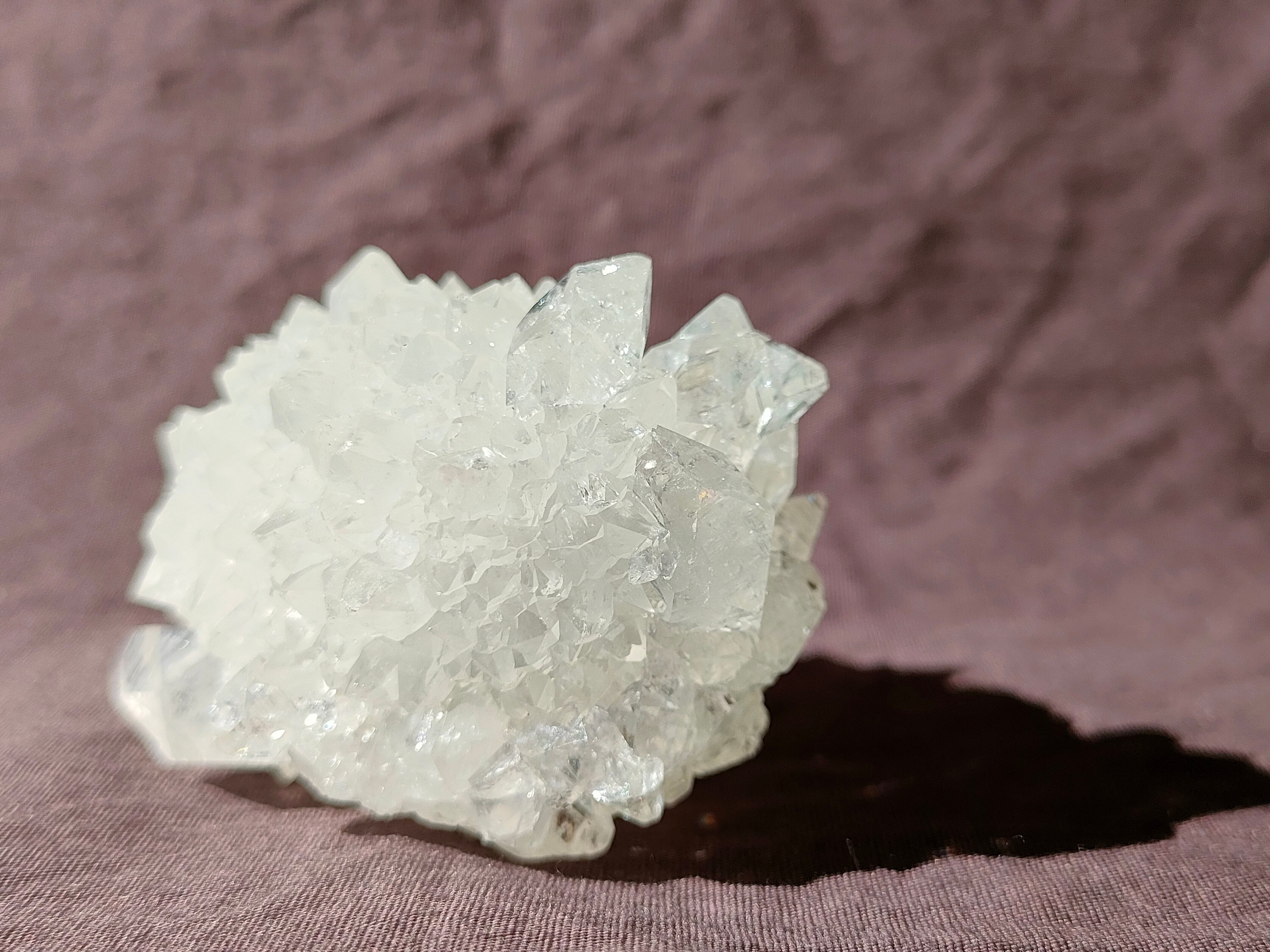 艶のあるキラキラな結晶とムクムクした結晶の半分に分かれた可愛らしいかたちのアポフィライトです。