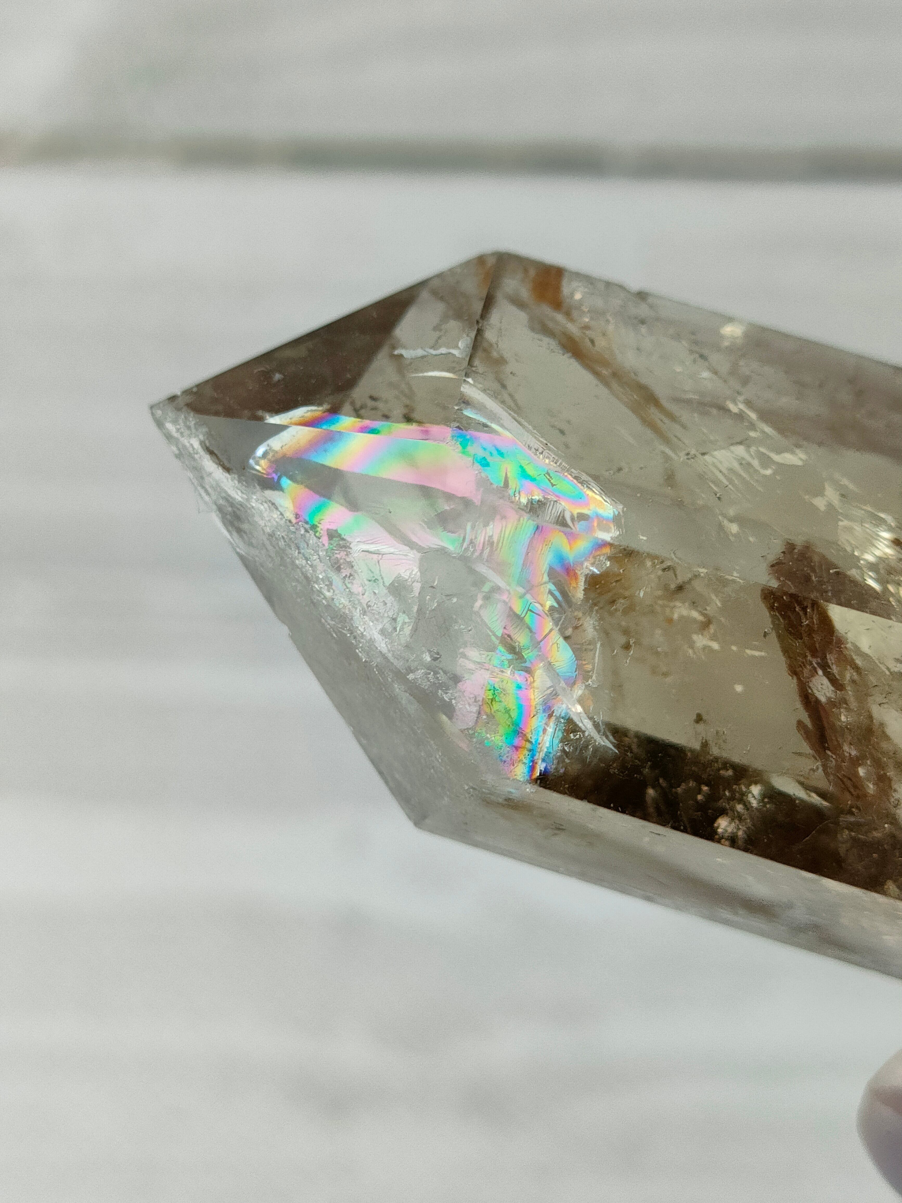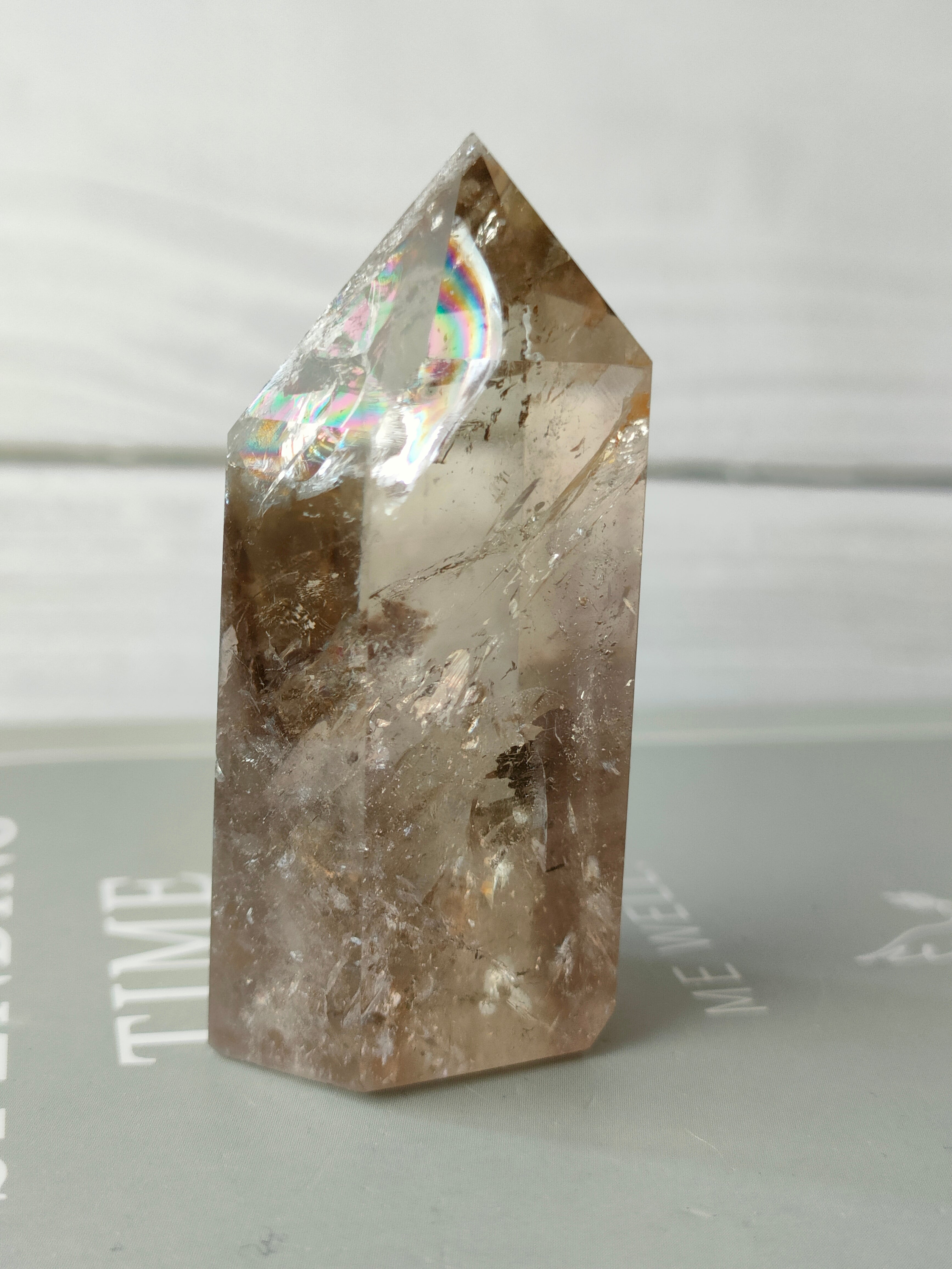 小さめですが、透明度、虹の美しさやクラックの輝きが素晴らしいです。