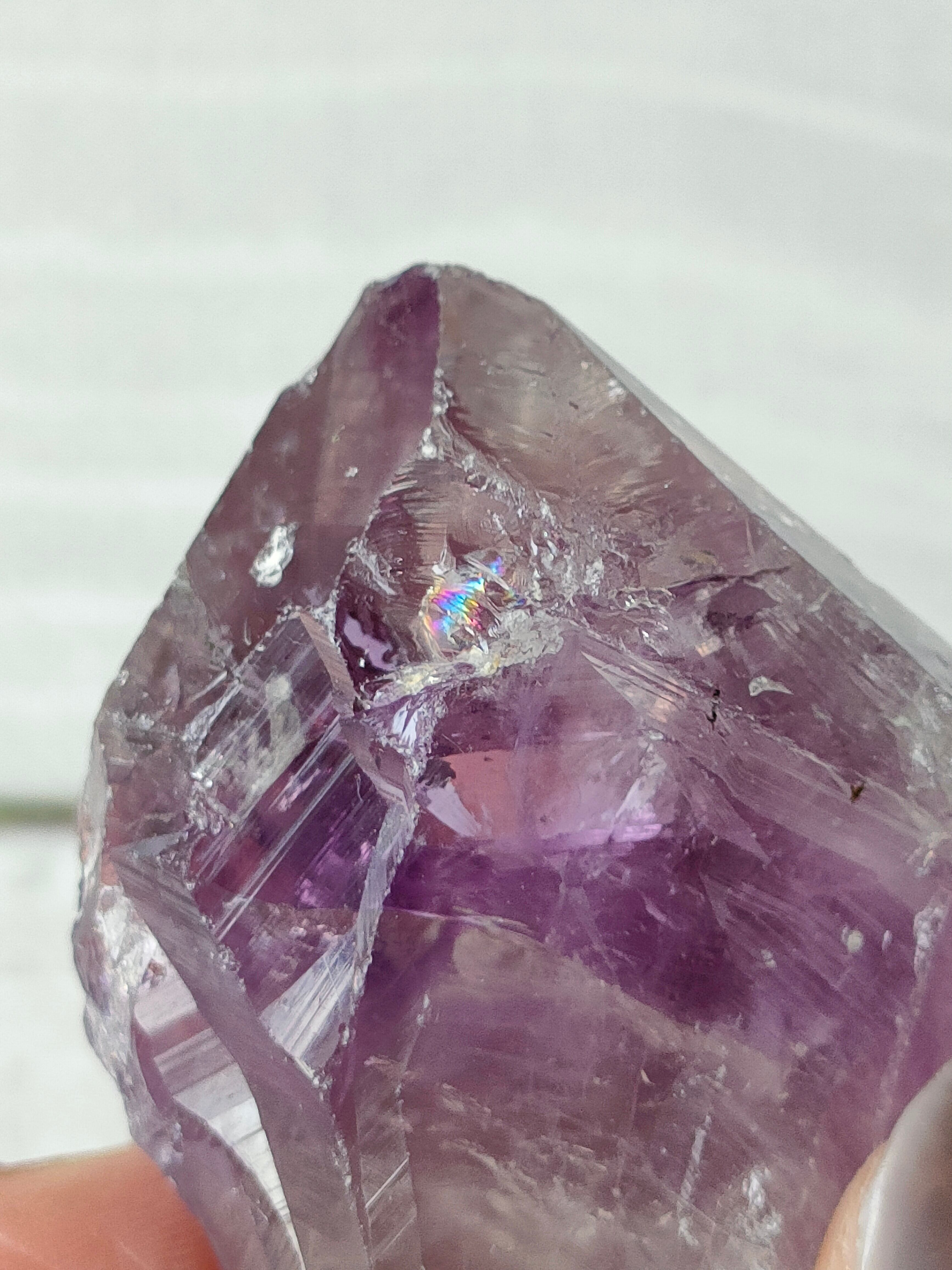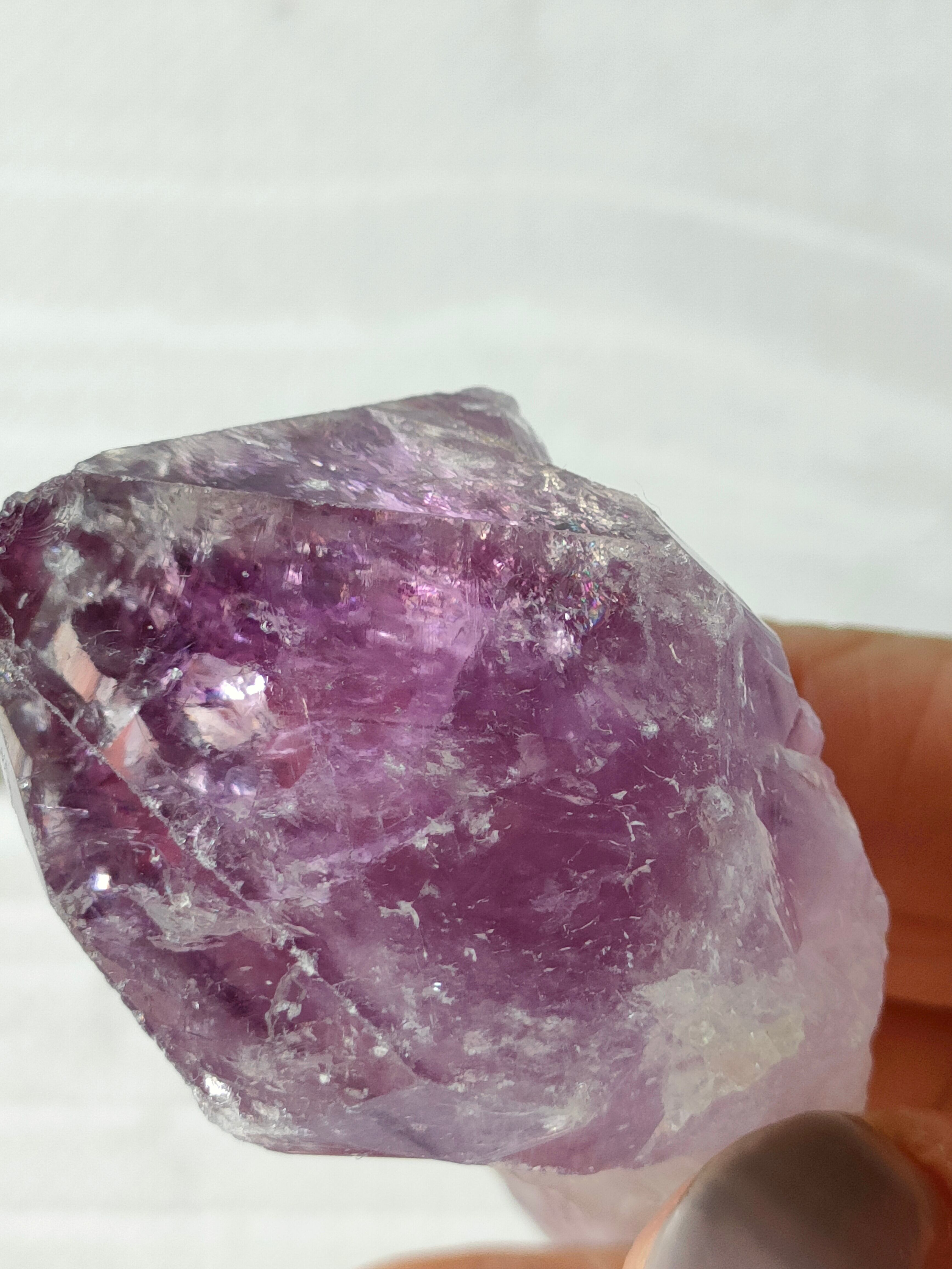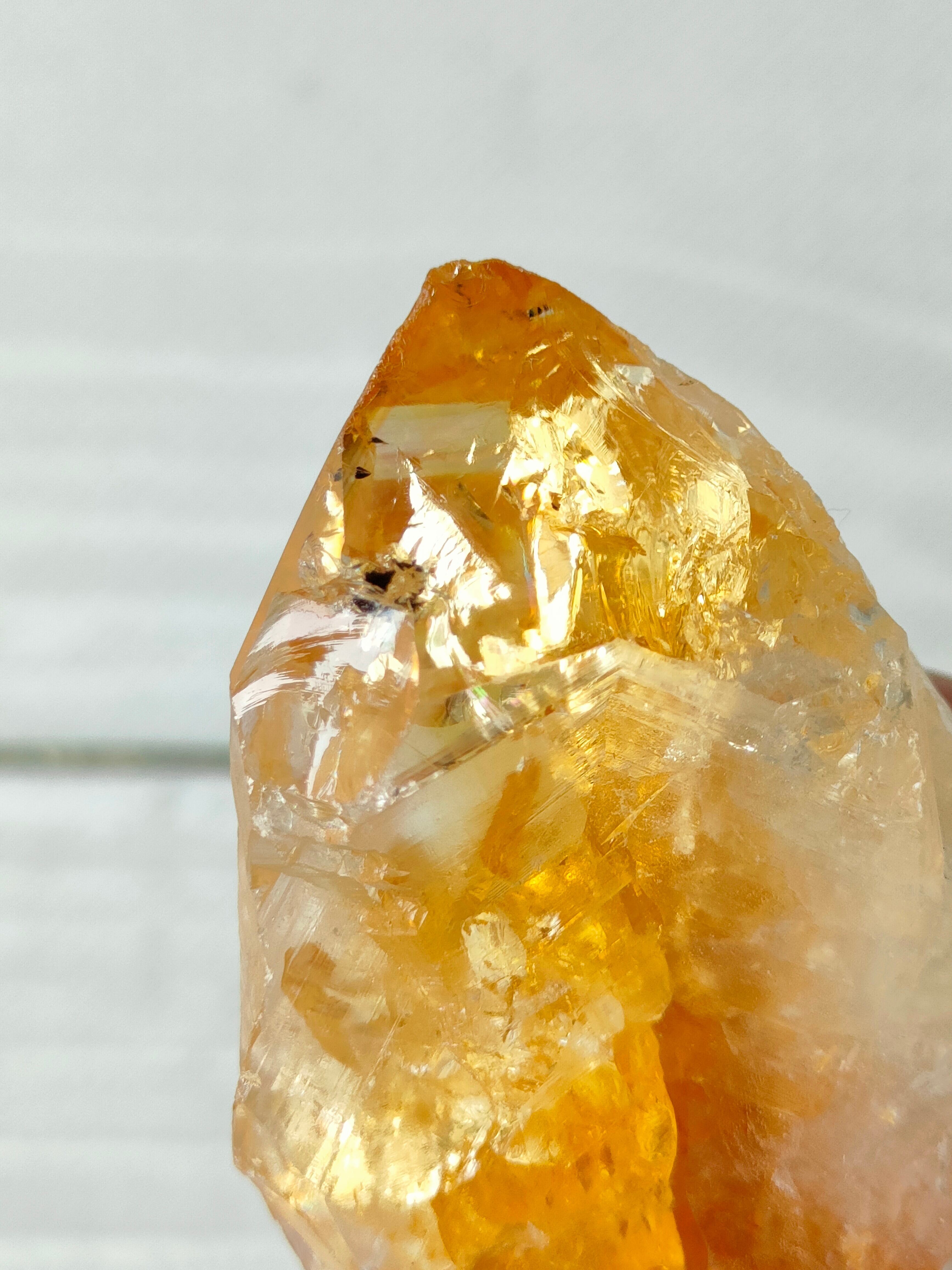 だからこその、なんとも言えない黄みがかった色合いが美しい。透明度がありクラックからの輝きと虹もみられます。