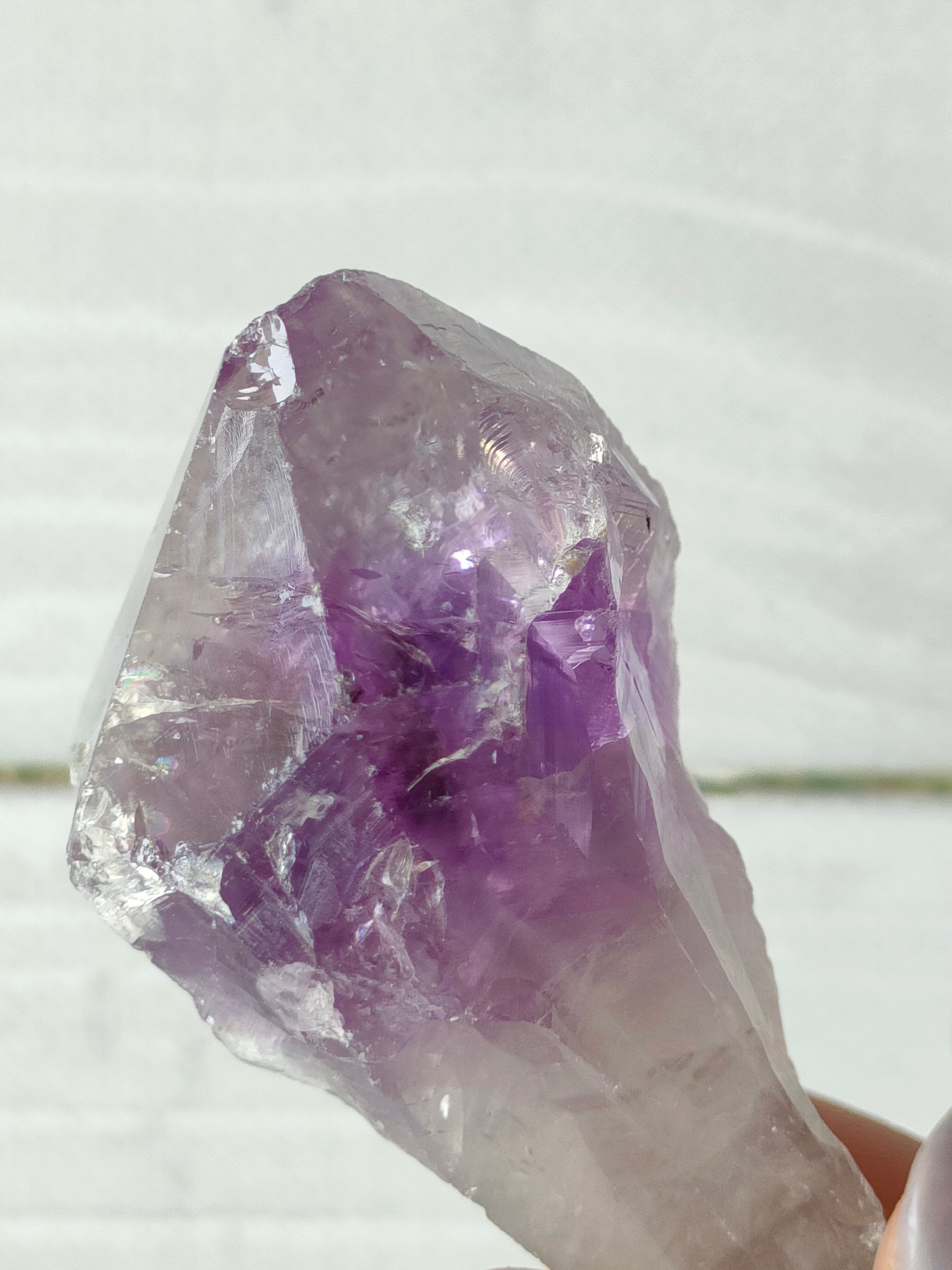 こちらはトップが水晶で中央部分がアメジストになっています。そのグラデーションも素敵です。
