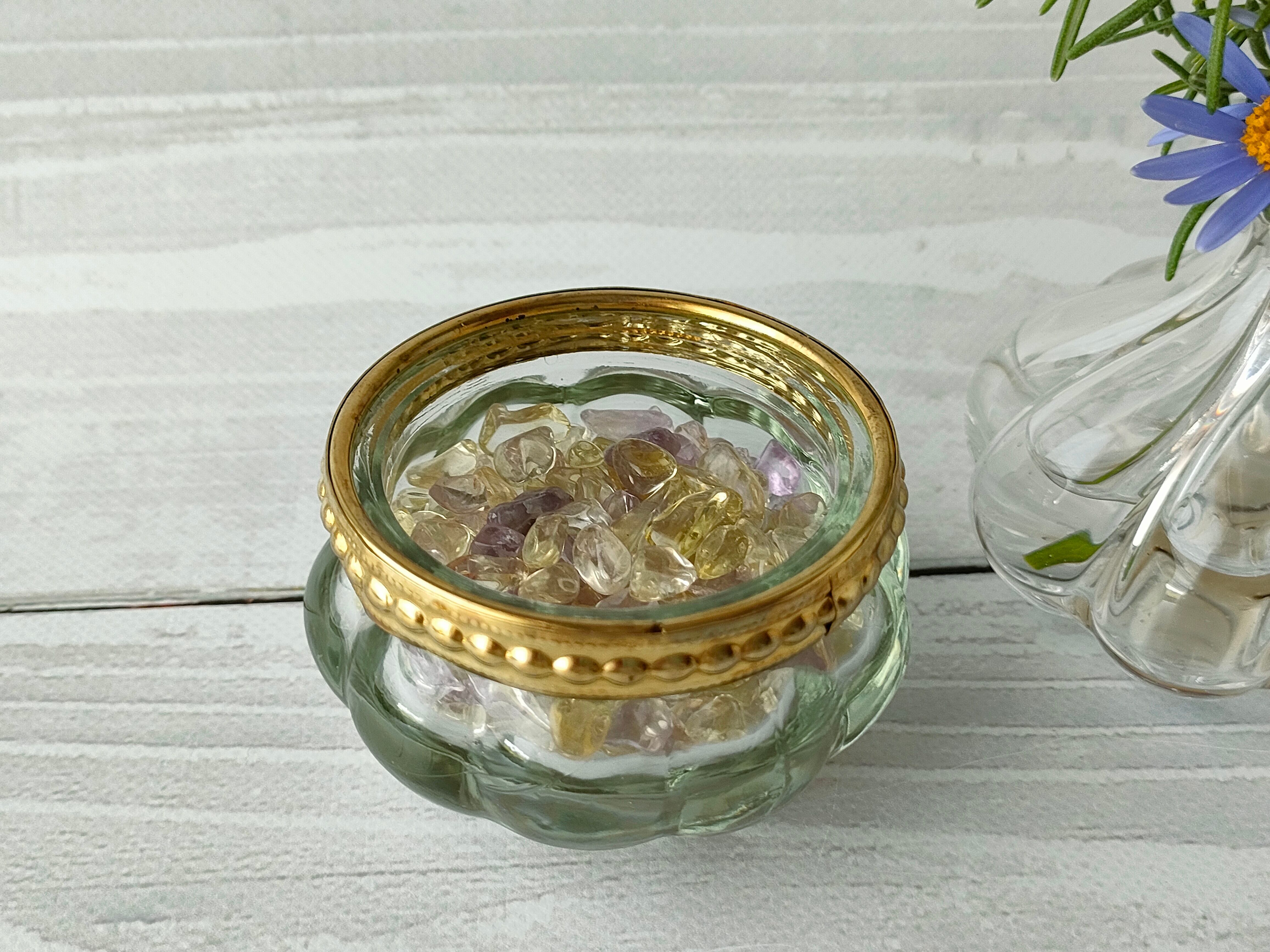 アメシストの深い癒しの力と、シトリンの富と繁栄をもたらす気の流れを巡らせる力両方を発揮します。