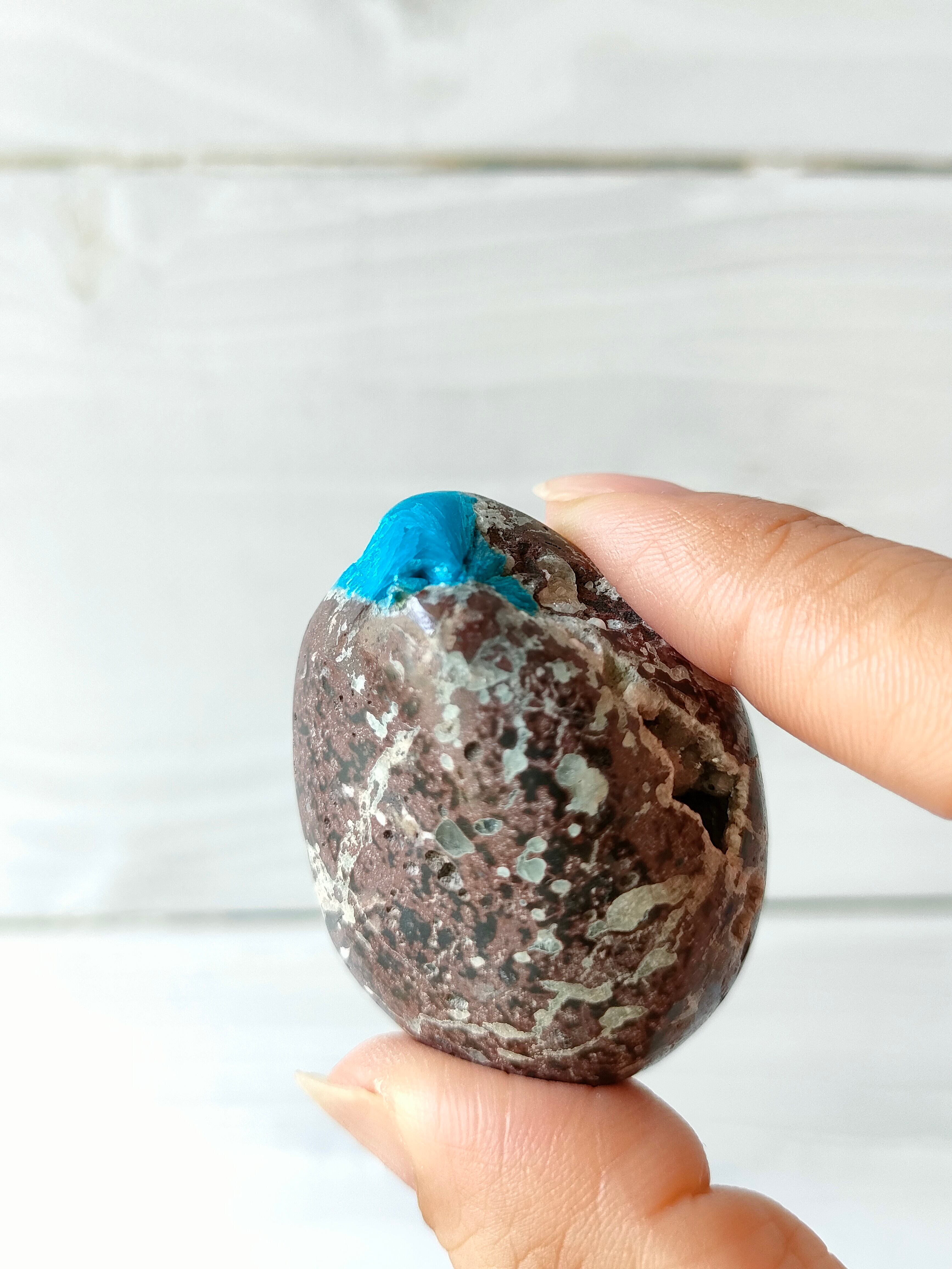 柱状結晶のカバンサイトのブルーは主成分の「バナジウム」によるものです。