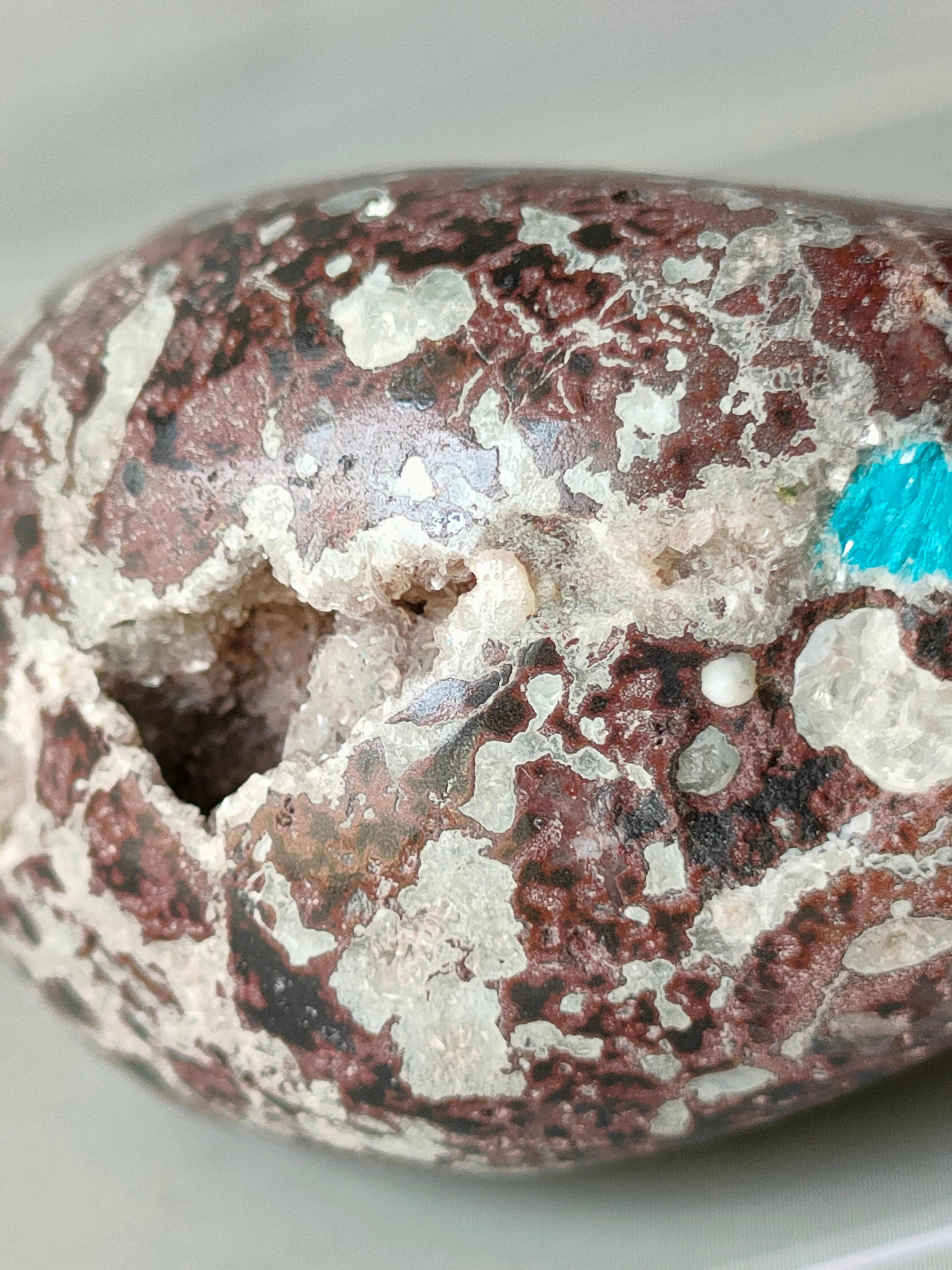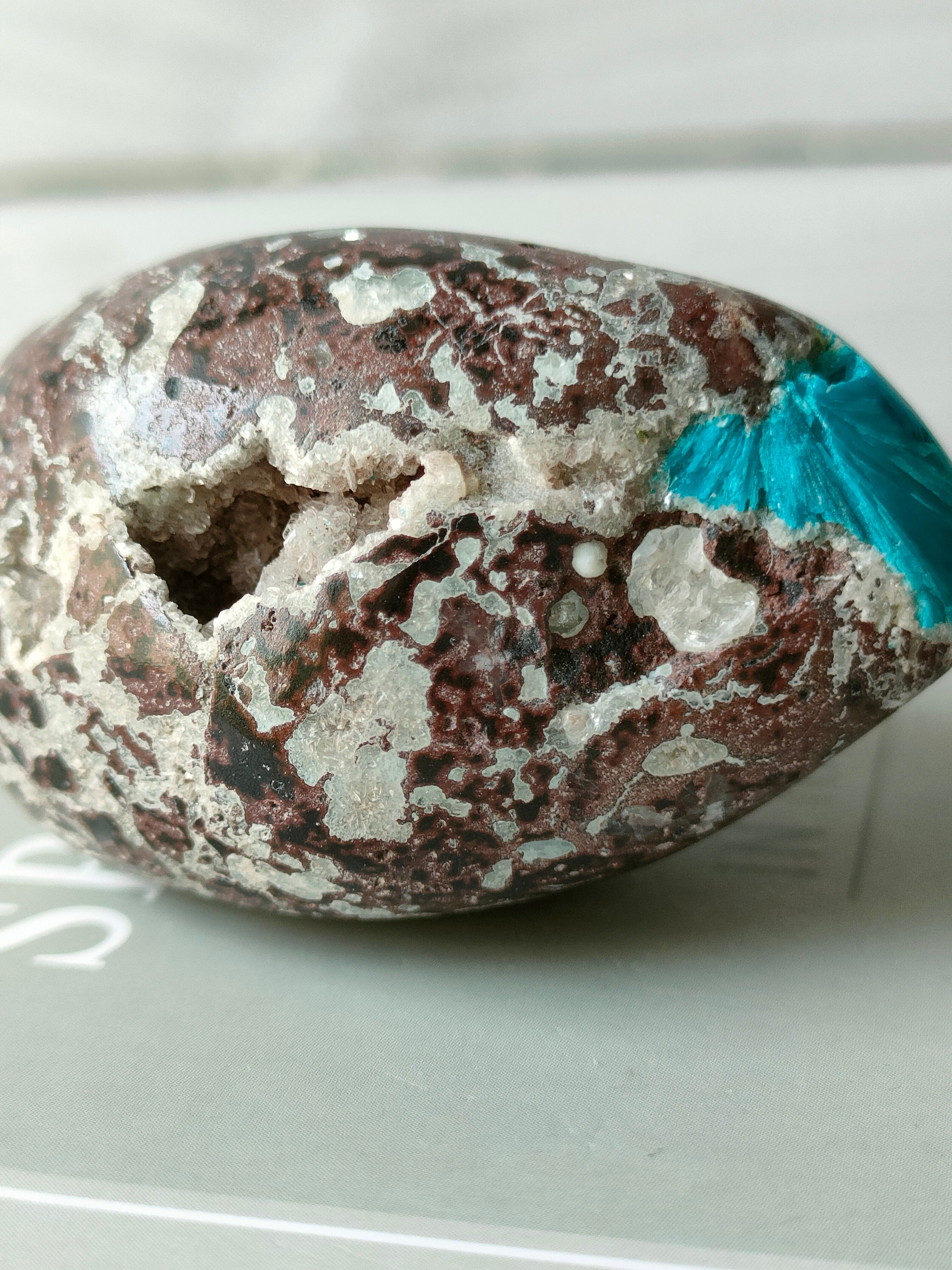 石の割れ目からは内部の結晶がキラキラ輝きます。