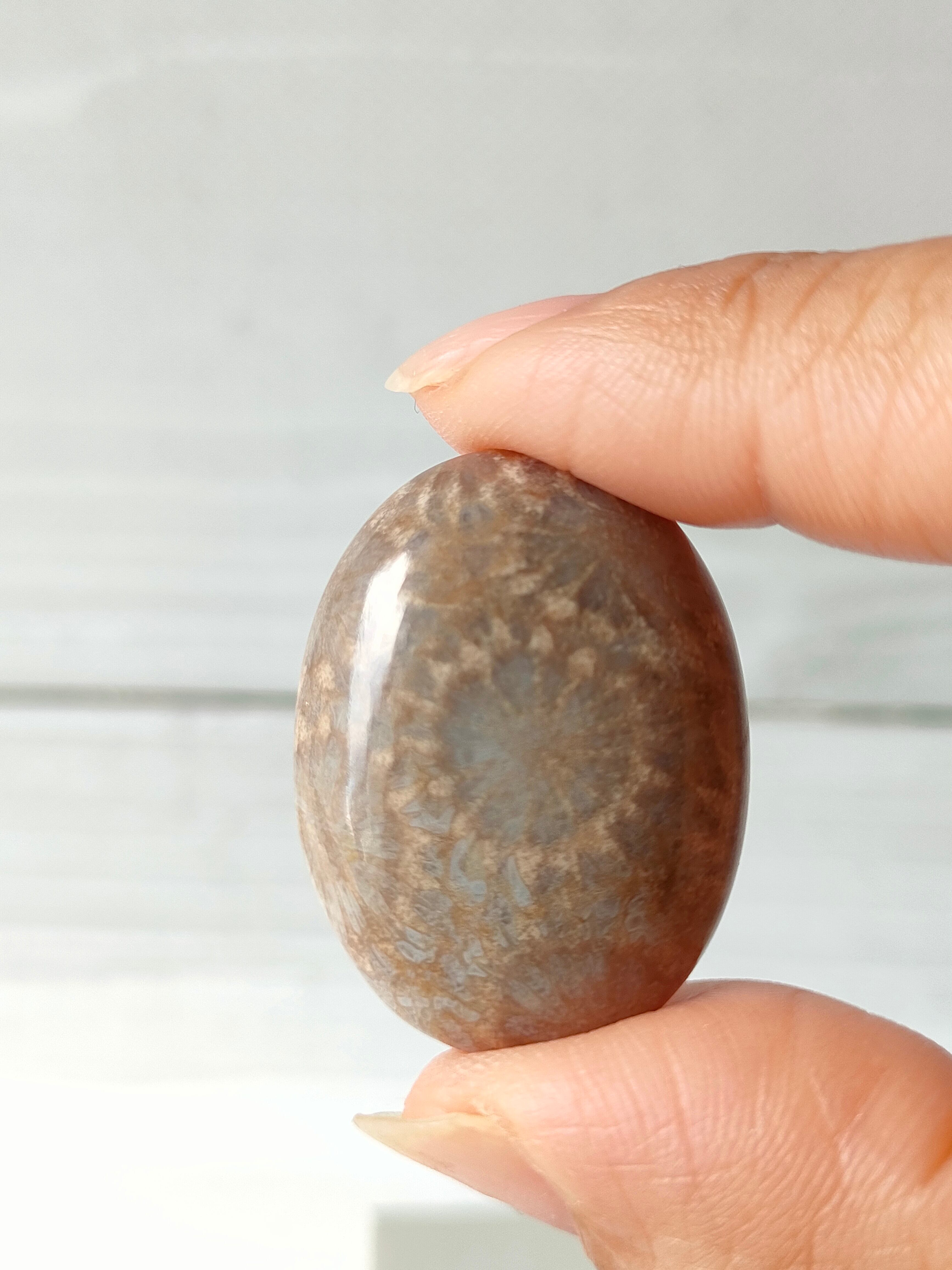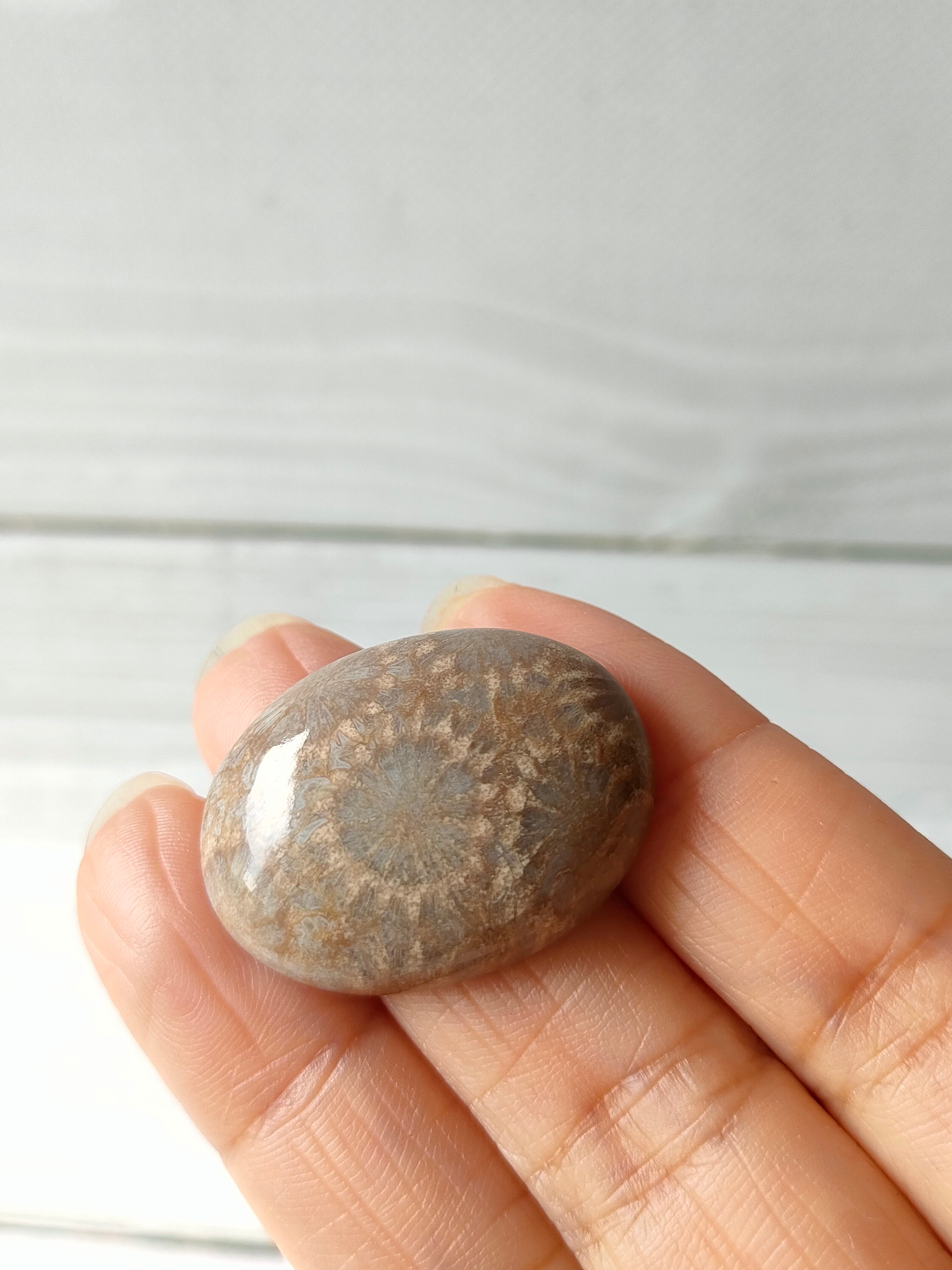フォッシルコーラルは太古の海の珊瑚の化石に長い年月をかけて石英化したものです。お花のような模様も天然で、独特の美しさがあります。