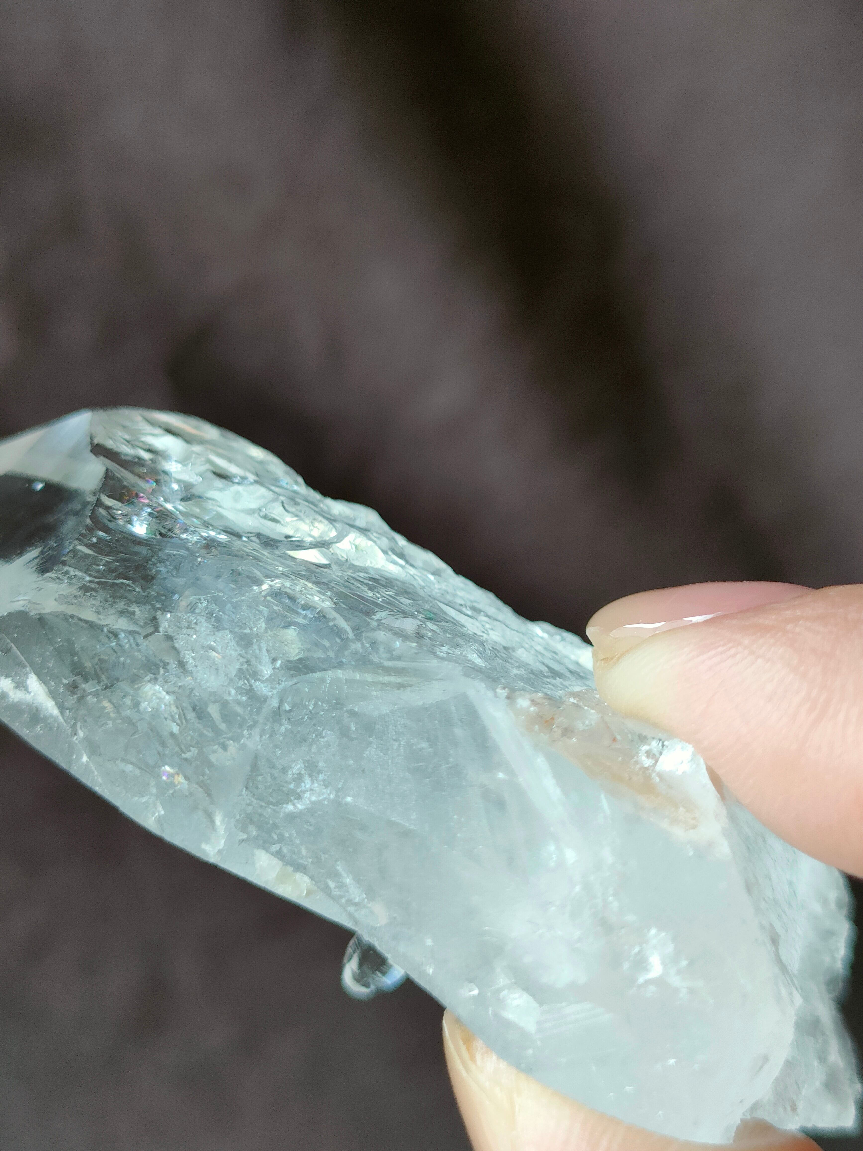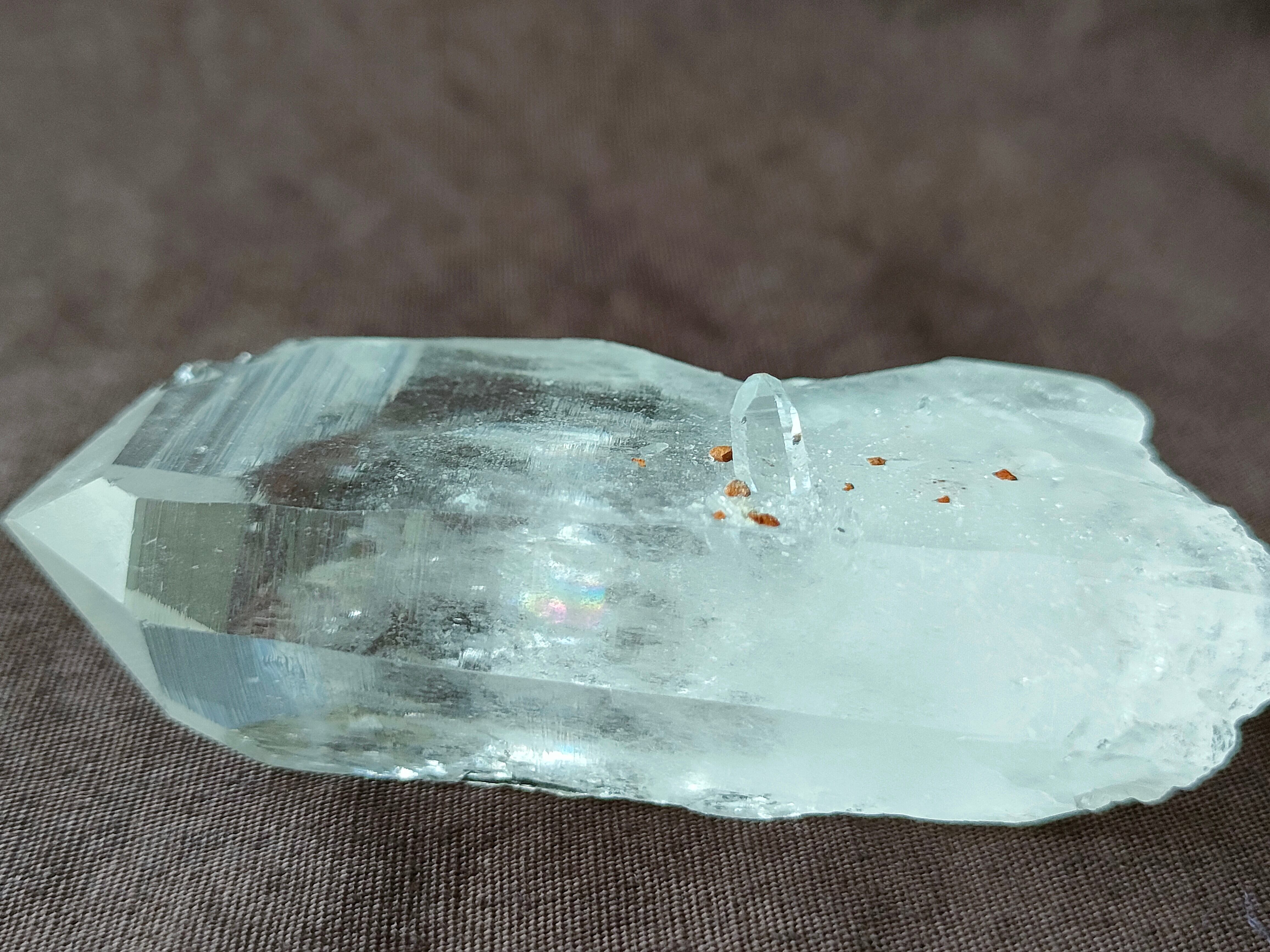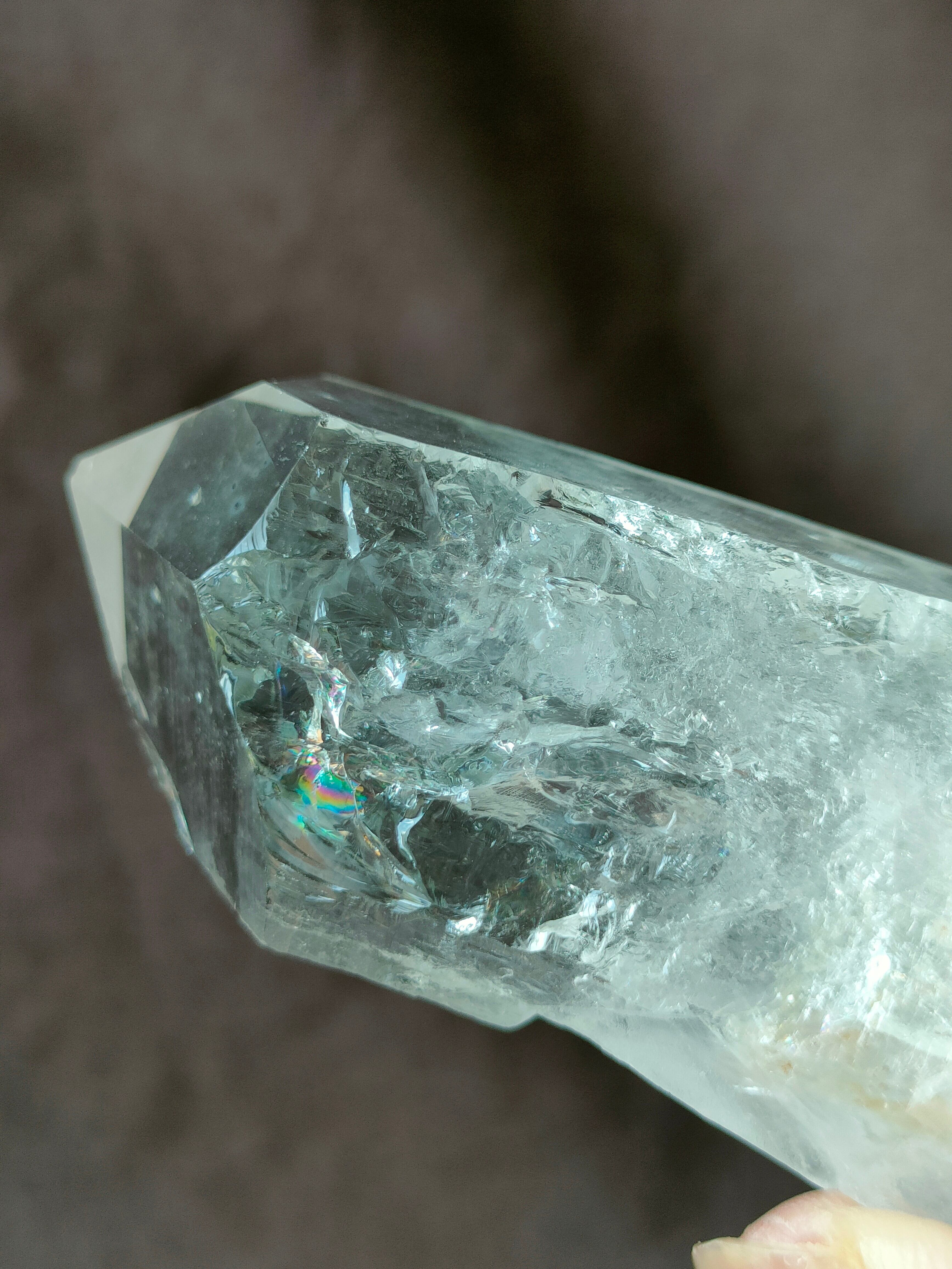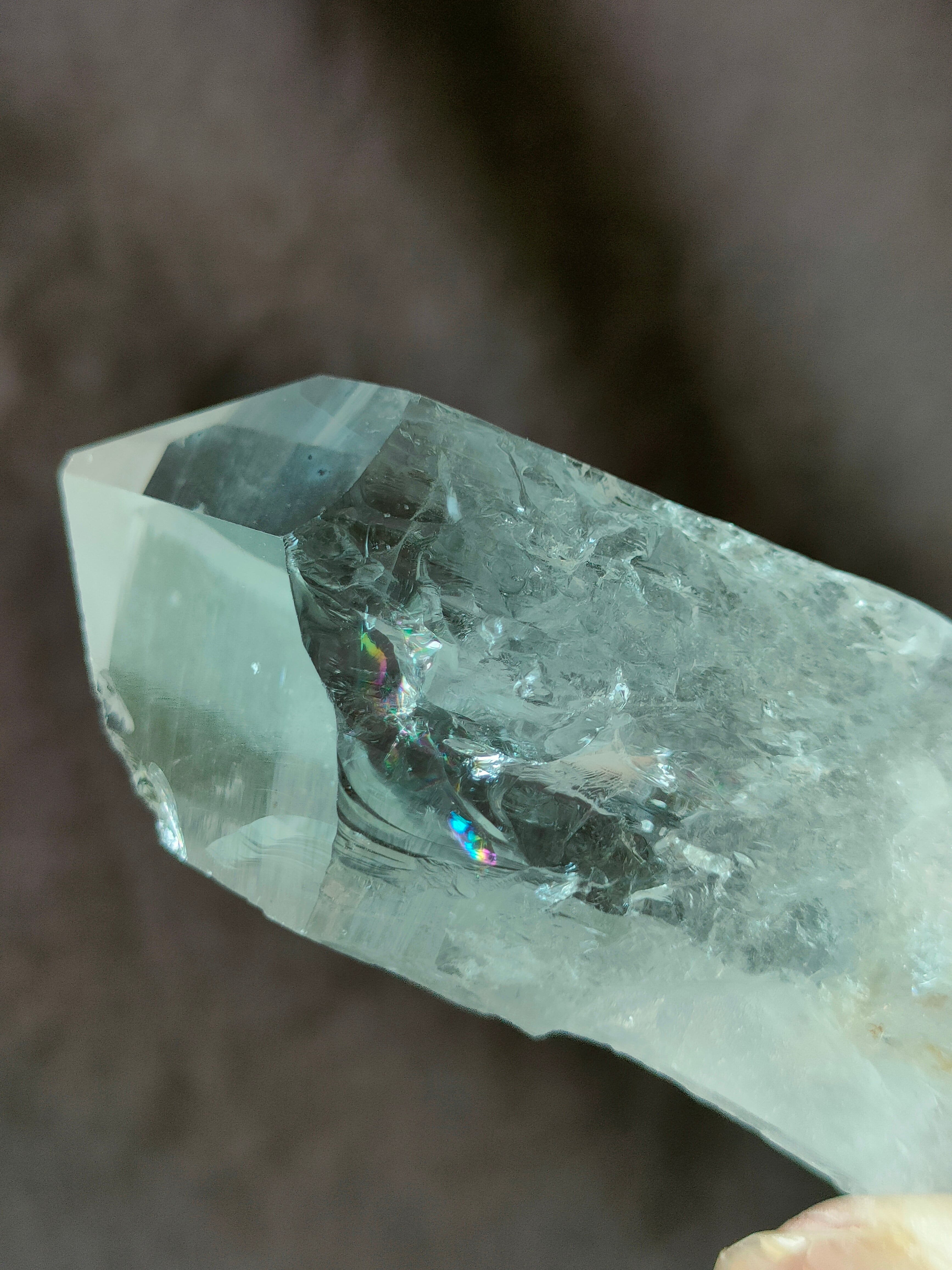 こちらの水晶には虹がみられ、薄くですがトライゴーニック△があるファセット面もありました!
