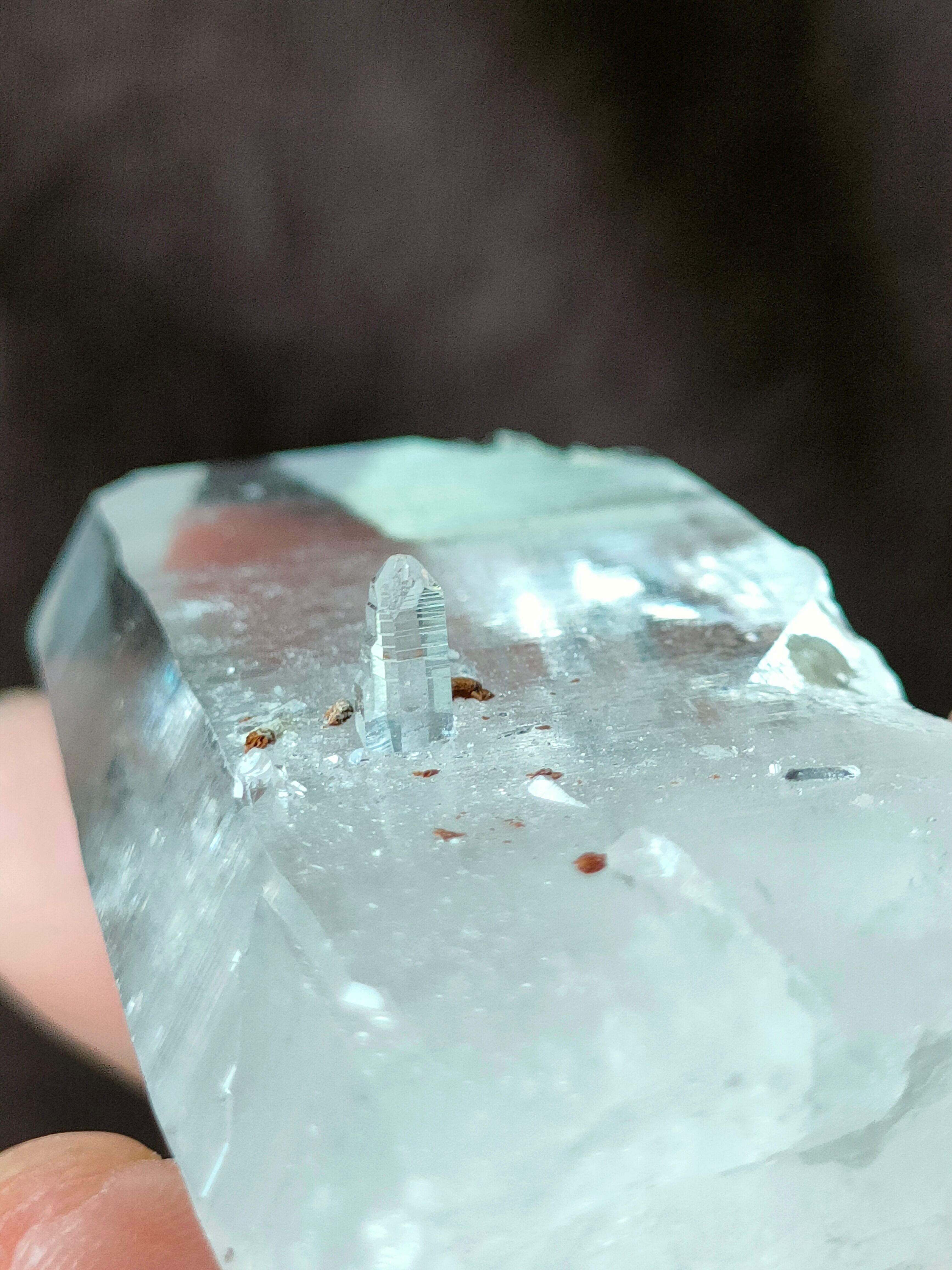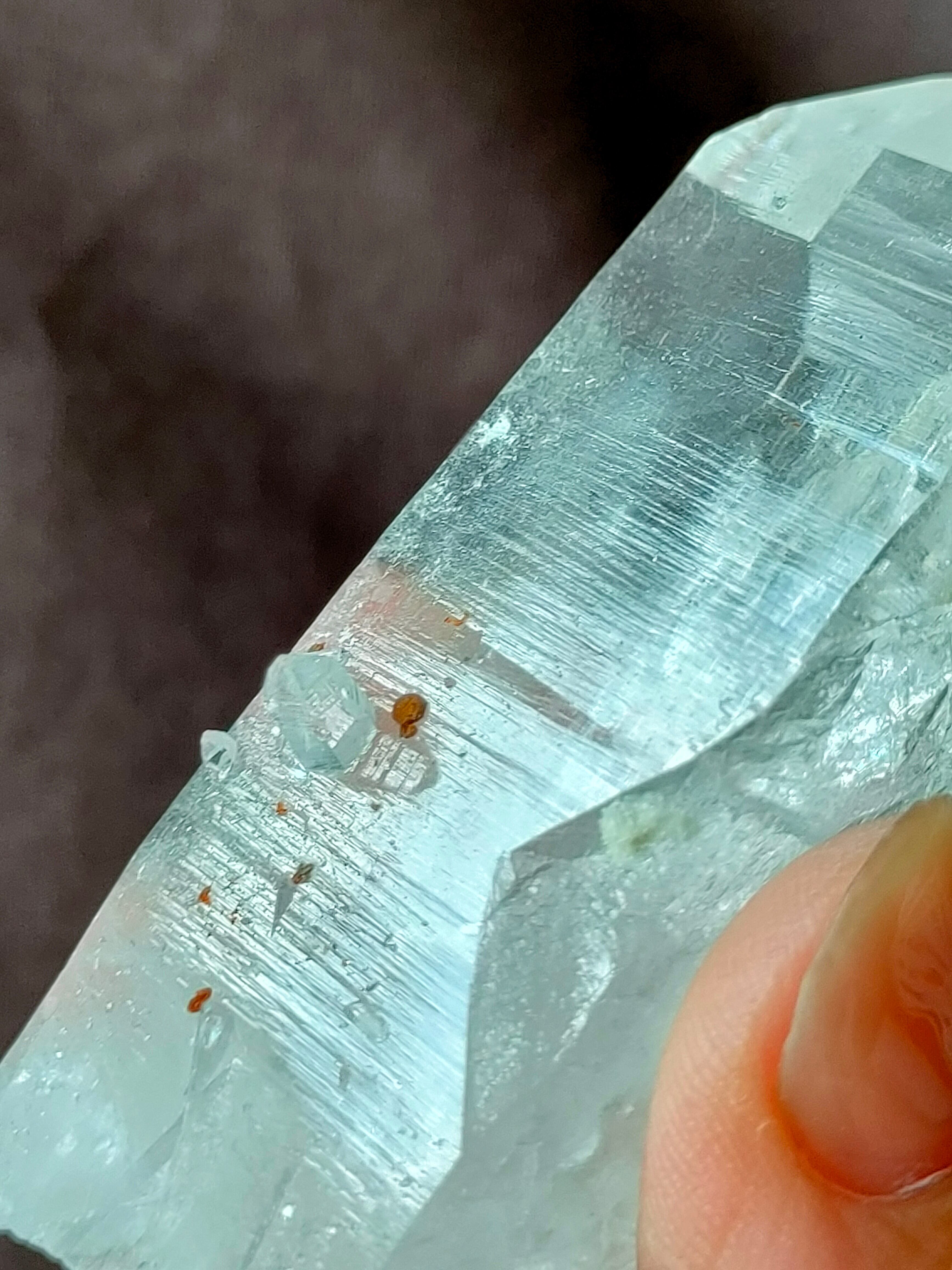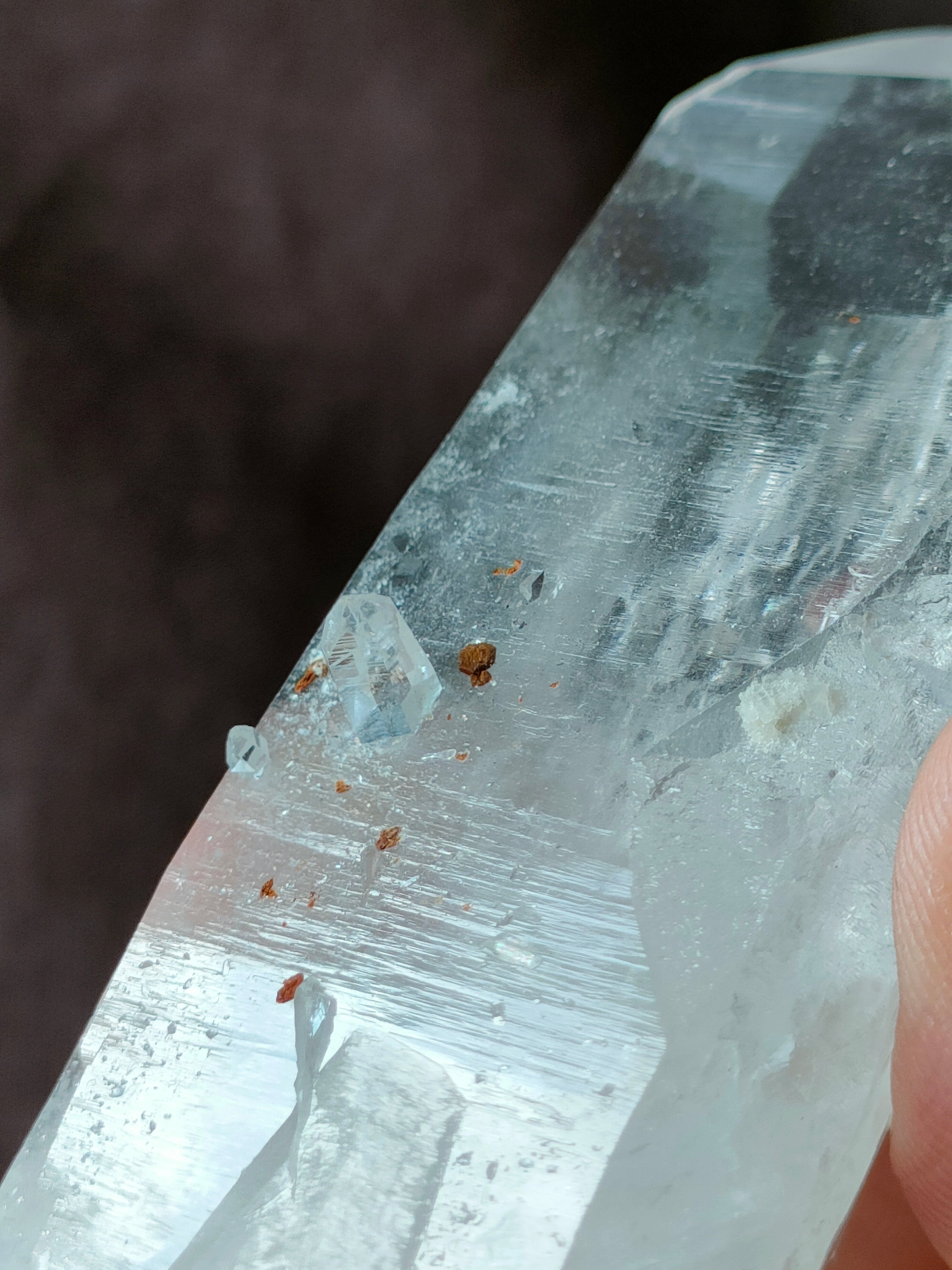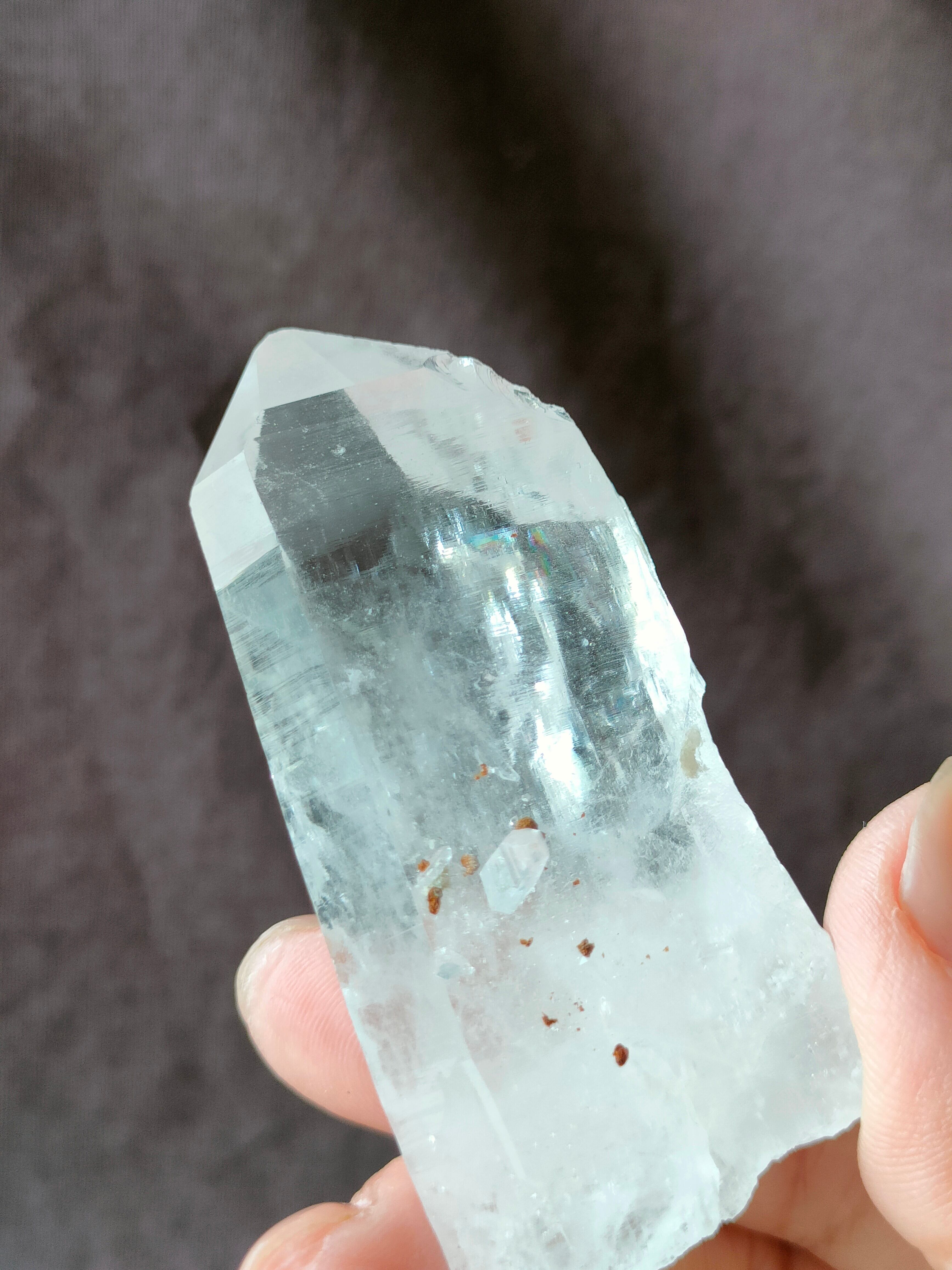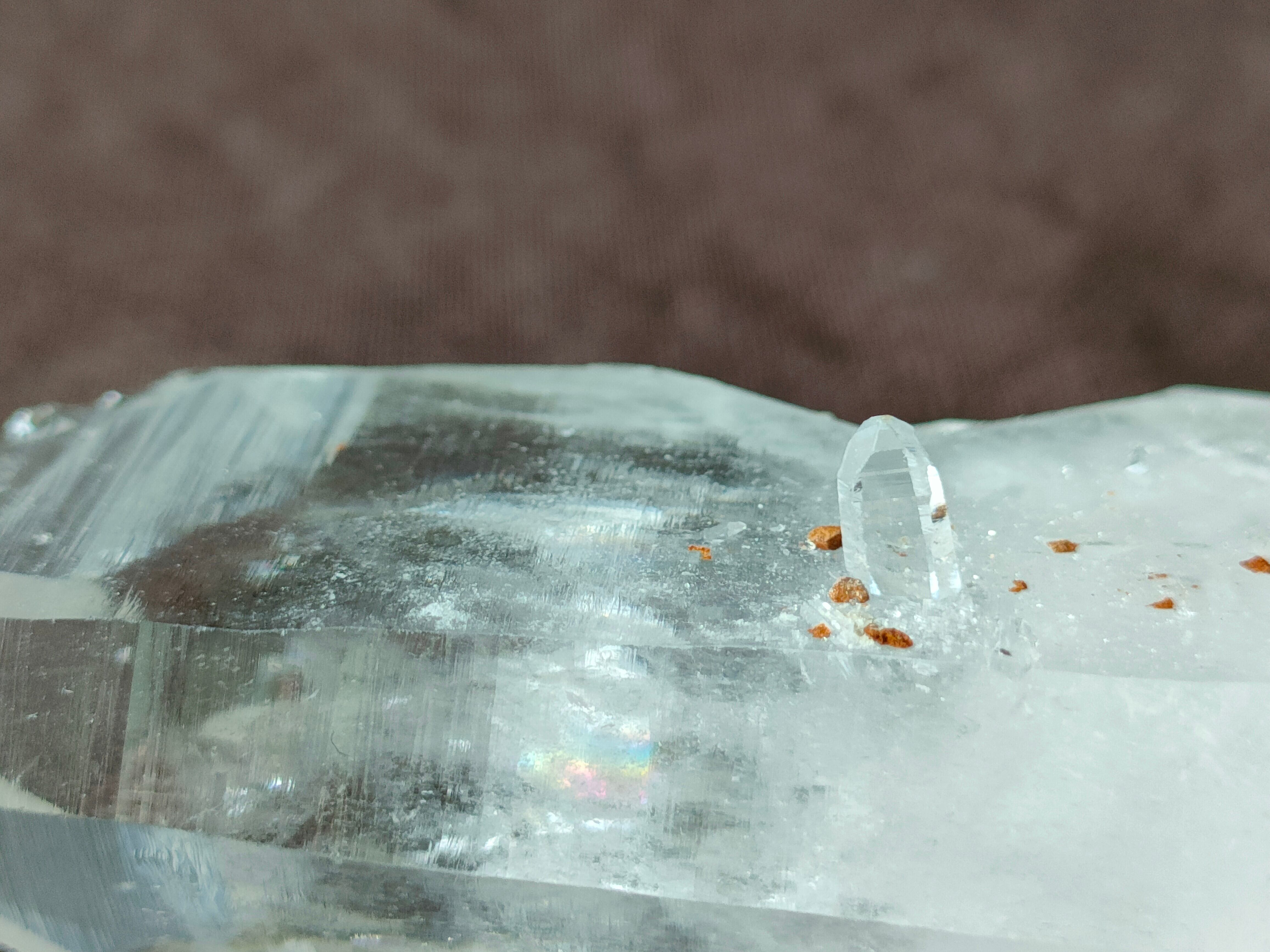 こちらの水晶には虹がみられ、薄くですがトライゴーニック△があるファセット面もありました!