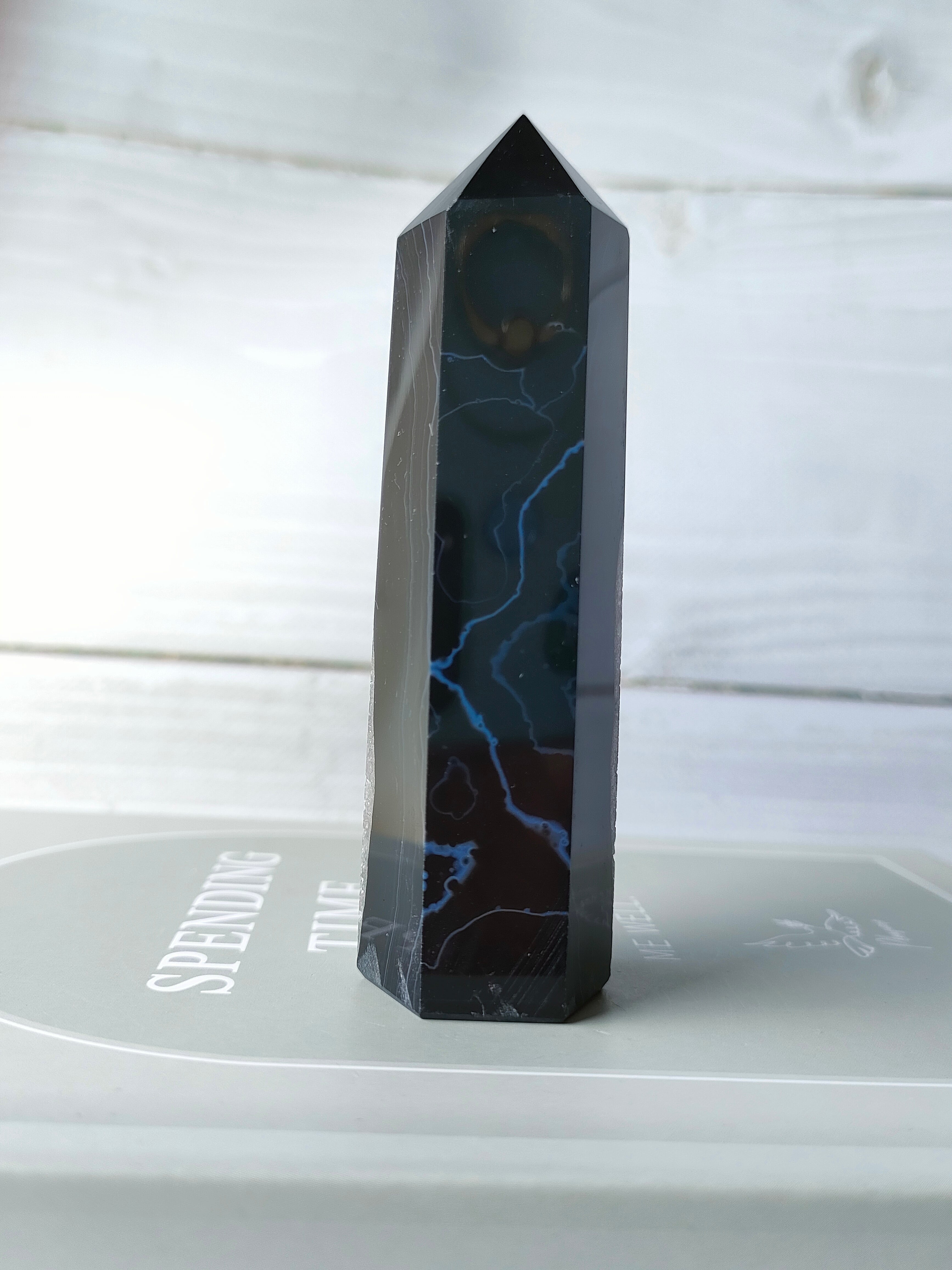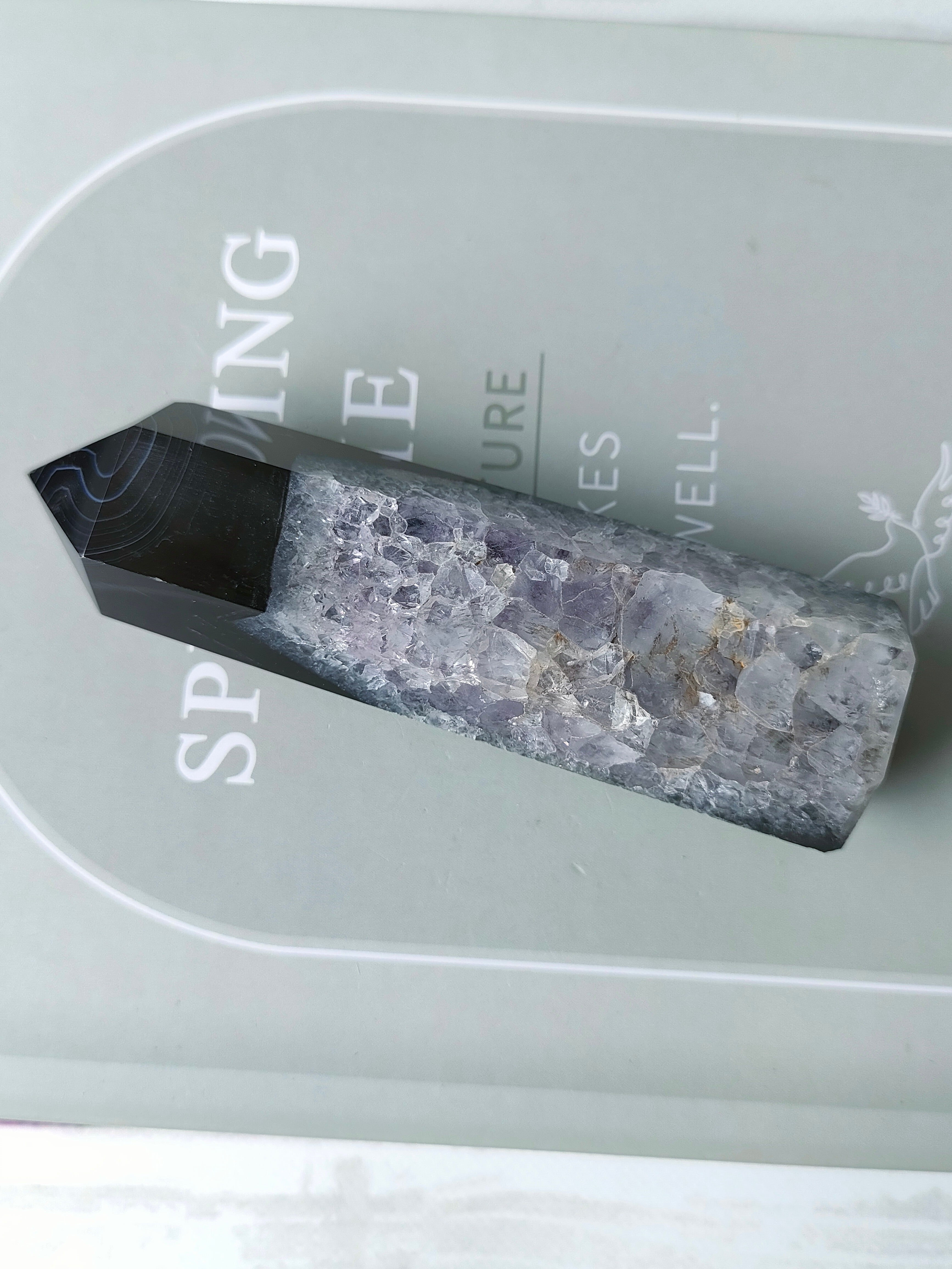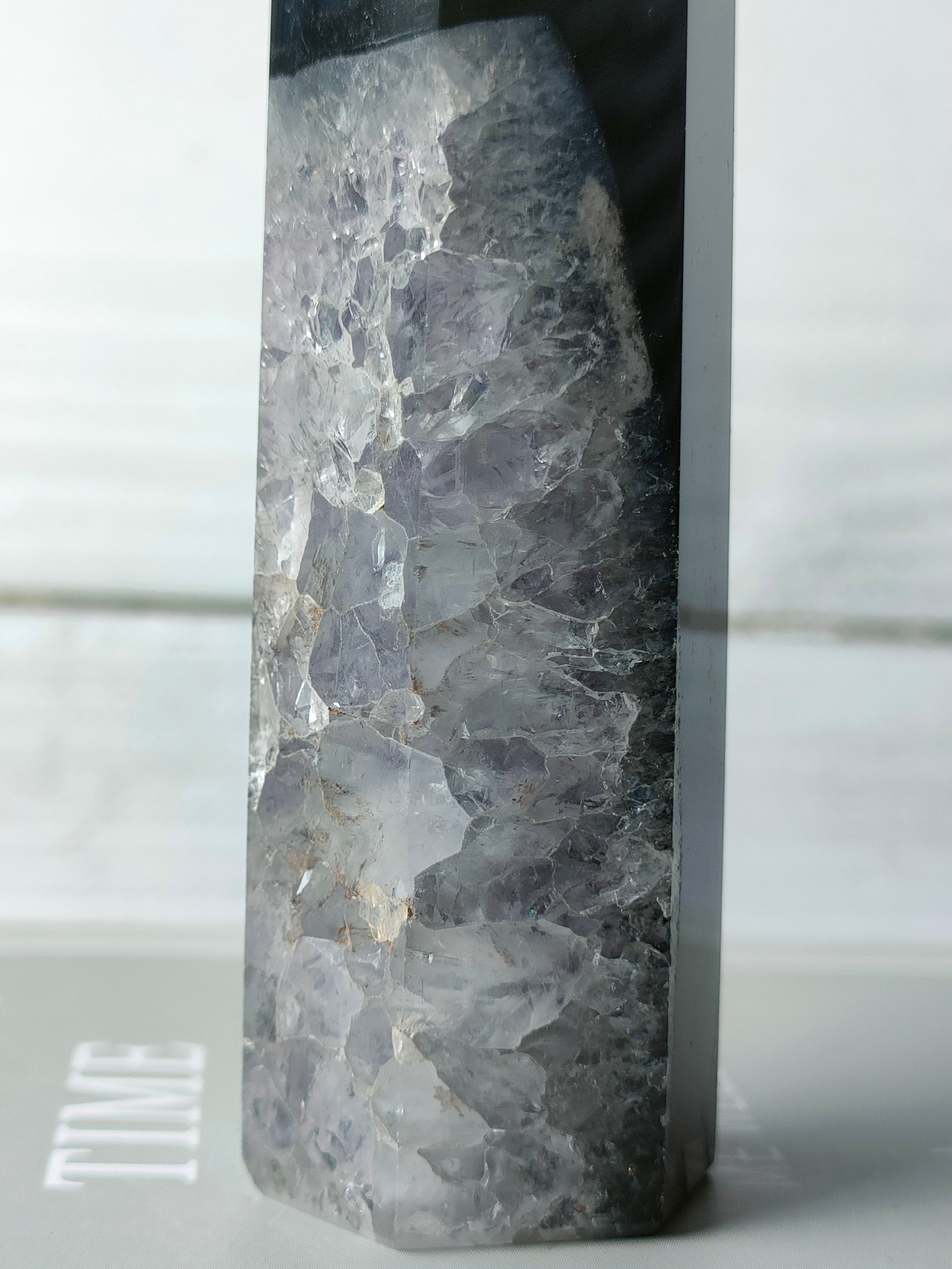 こちらは不思議な縞模様があり、まさに芸術品!しかも水晶が柱面にあるので、なを素敵さを増しています。