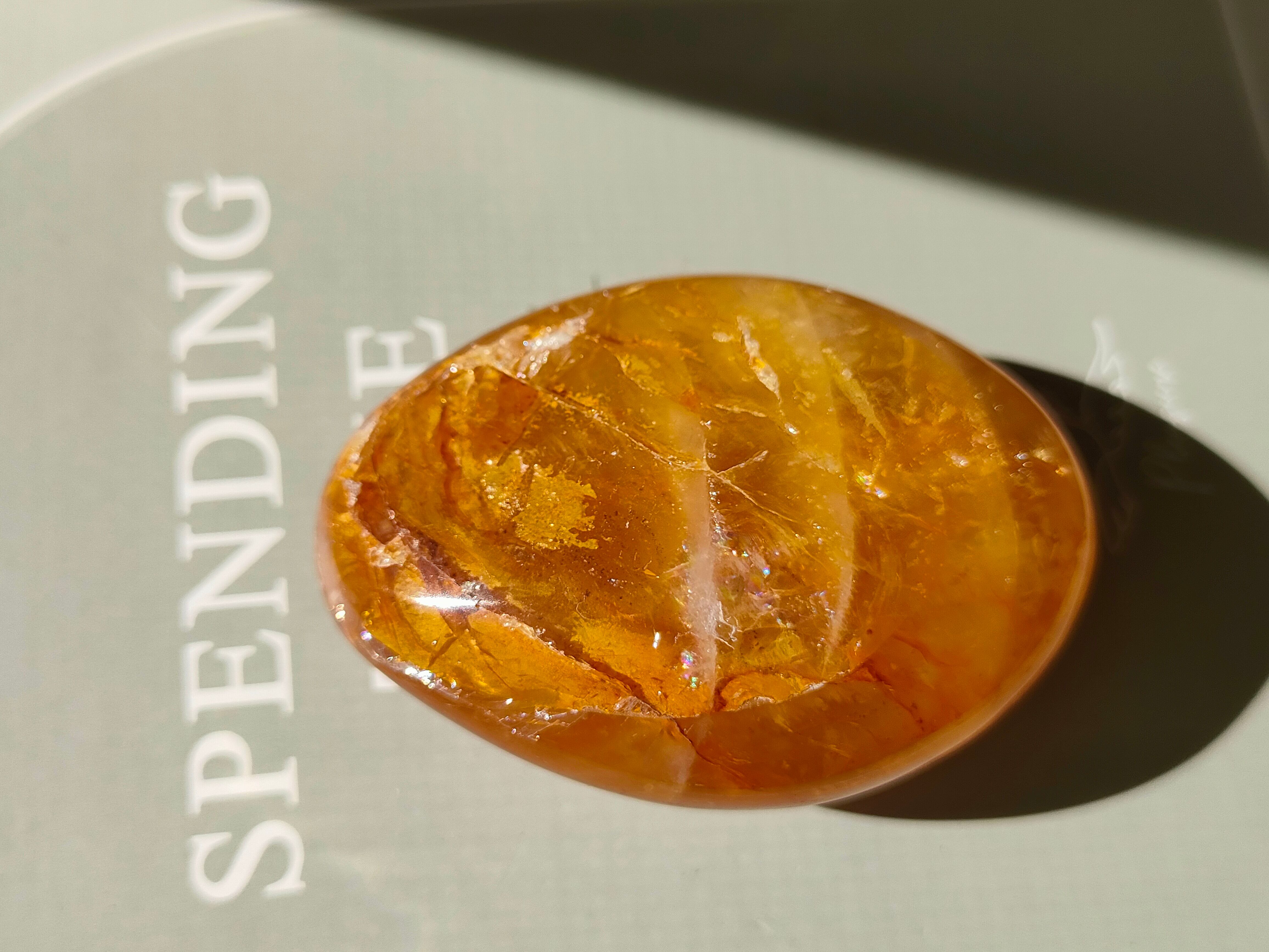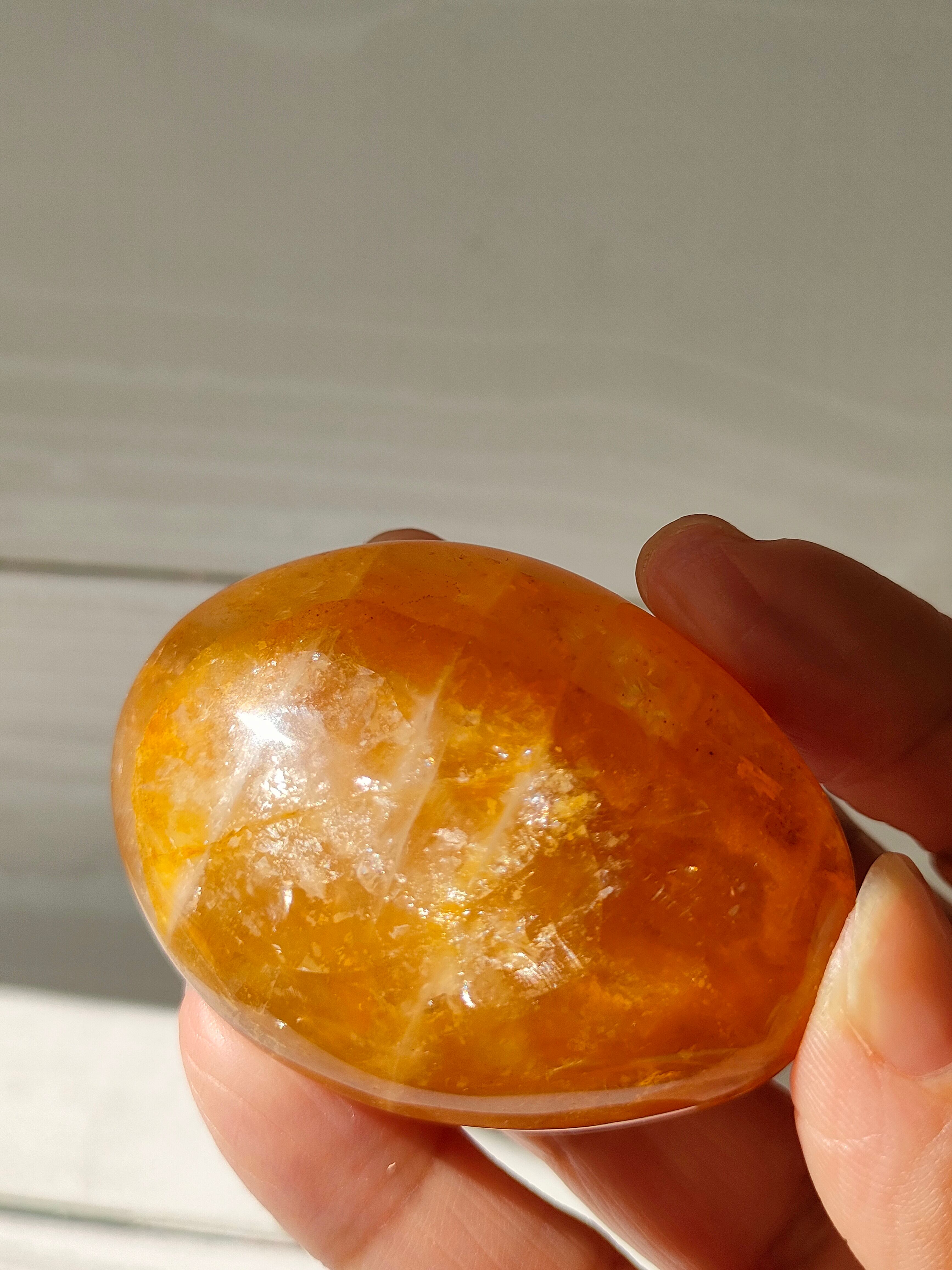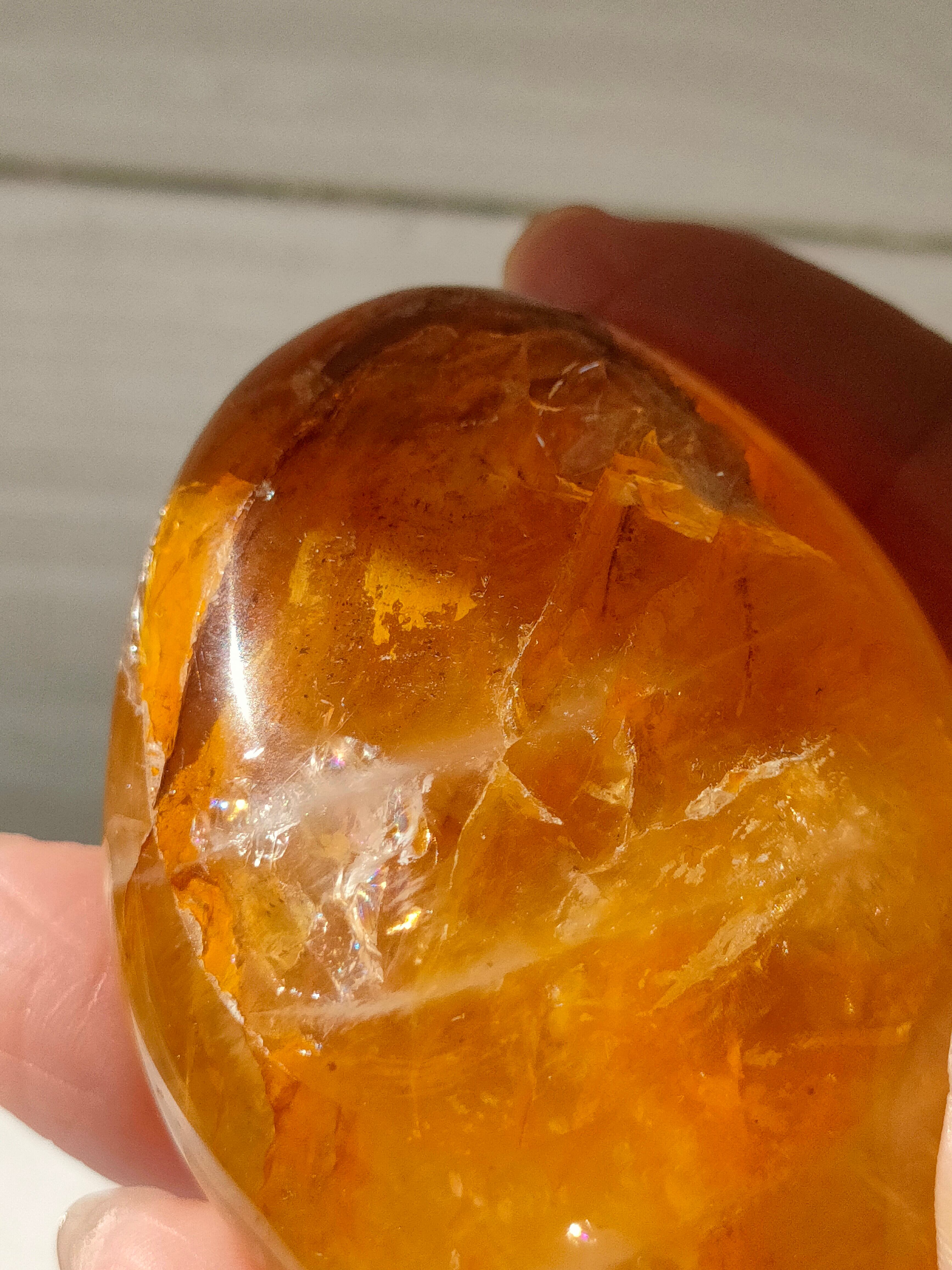 輝きがまばゆく、小さな虹がチラチラとみられます。手のひらにおさまりよいかたちです。